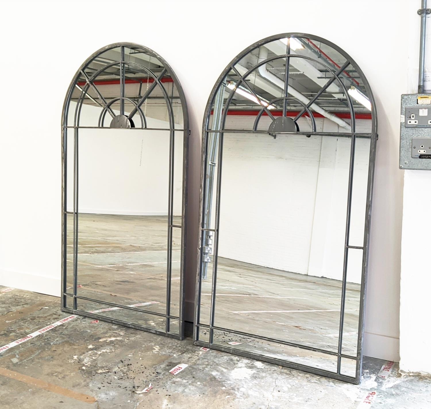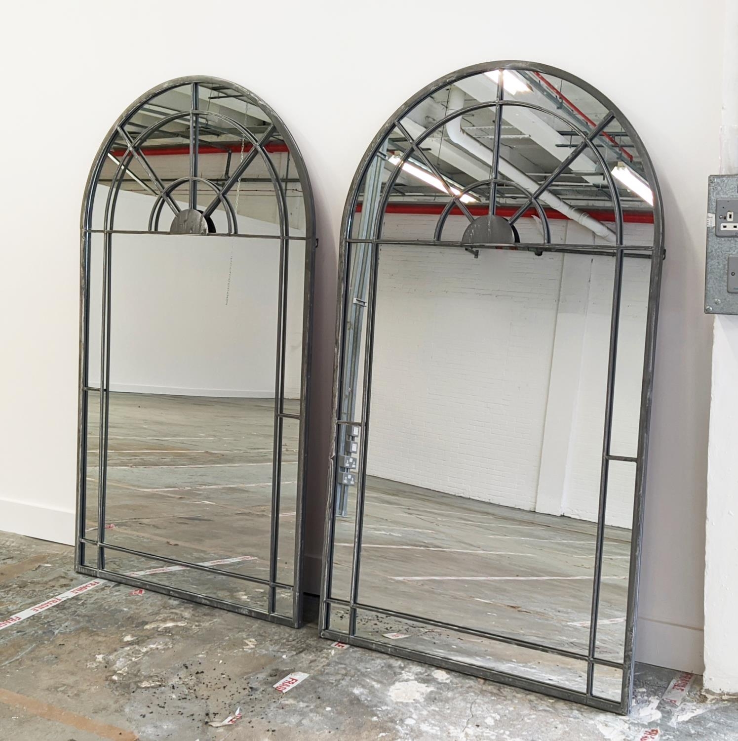ARCHITECTURAL WALL MIRRORS, a pair, with arch tops, 155cm H x 90cm. (2)