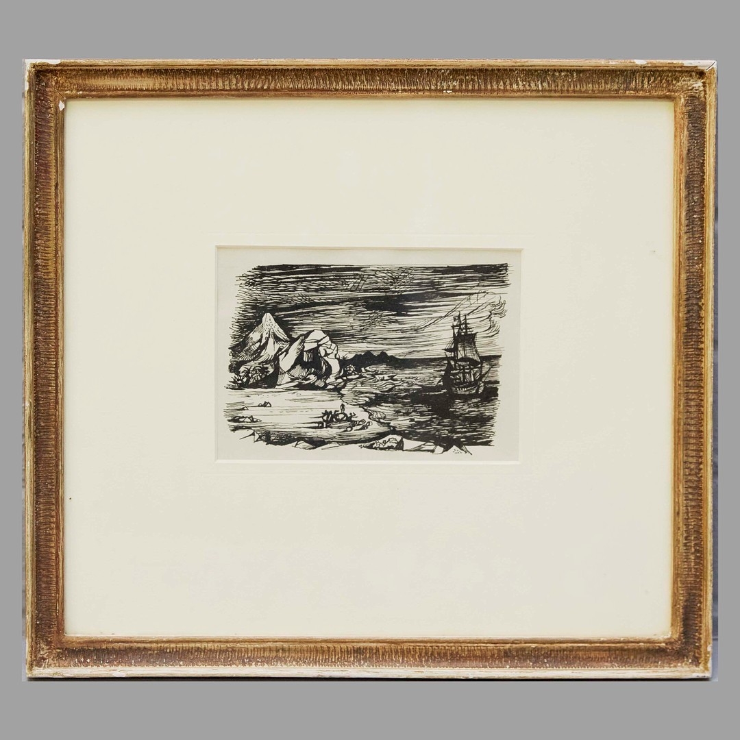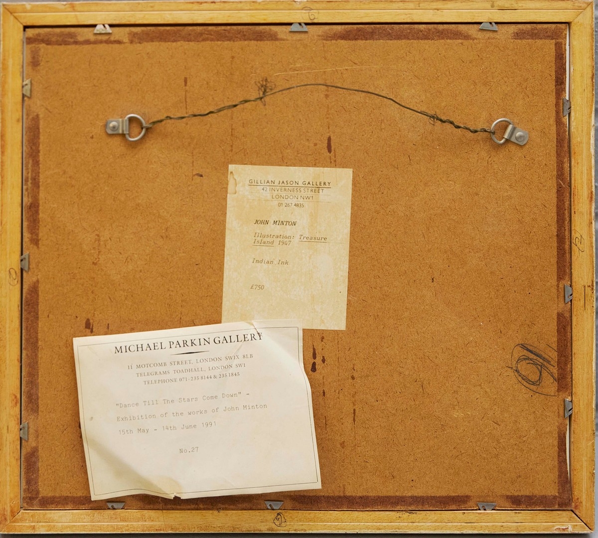 JOHN MINTON (1917-1957). ILLUSTRATION: TREASURE ISLAND, 1947. (d) Indian Ink, Gillian Jason Gallery and Michael Parkin Gallery labels verso, 35cm x 39cm, framed. (Subject to ARR see Buyers Conditions).