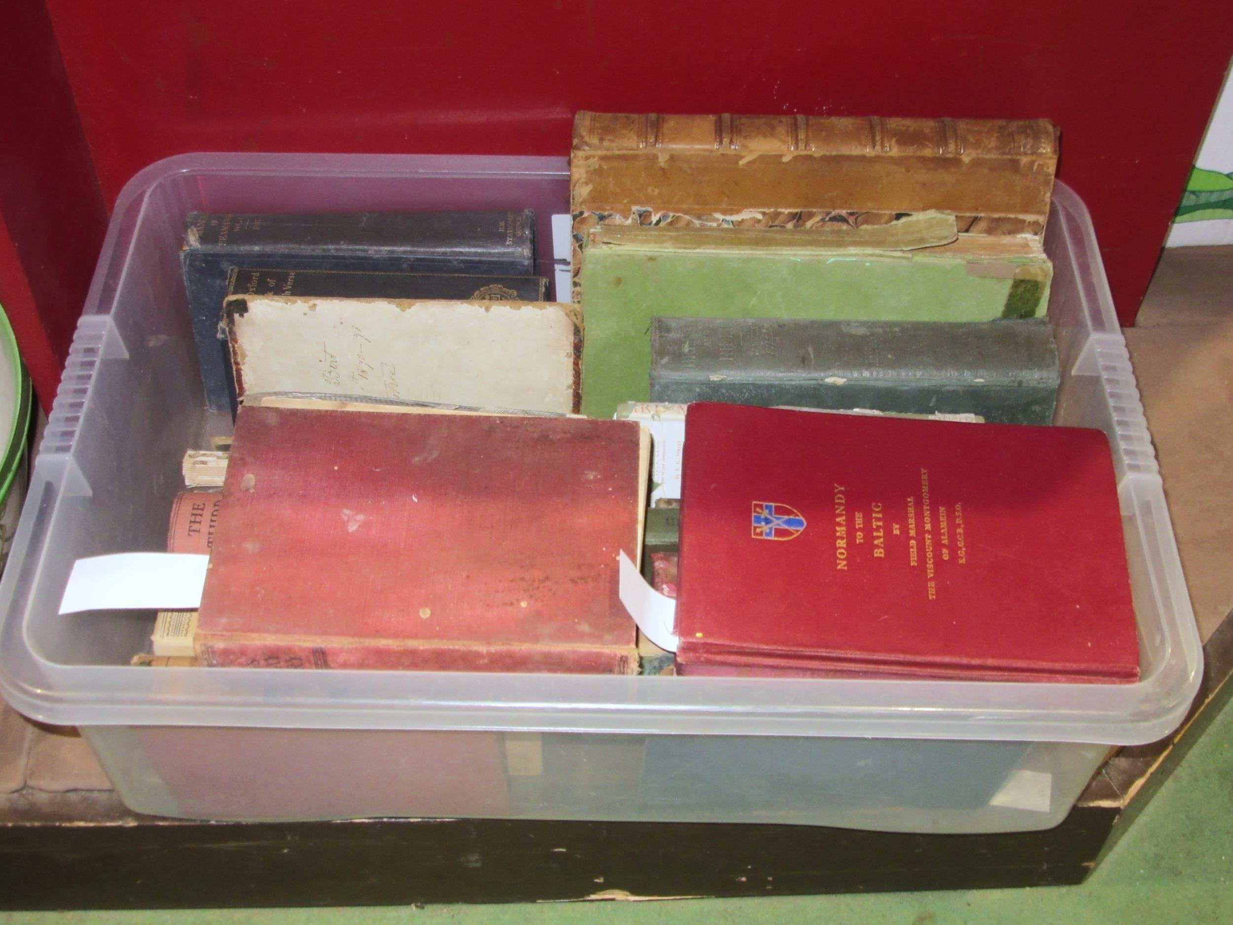 A box of bygone books including "Punch" published 1845, "Normandy to the Baltic" by Field Marshal Montgomery, "Mrs Beeton's Everyday Cookery" etc.