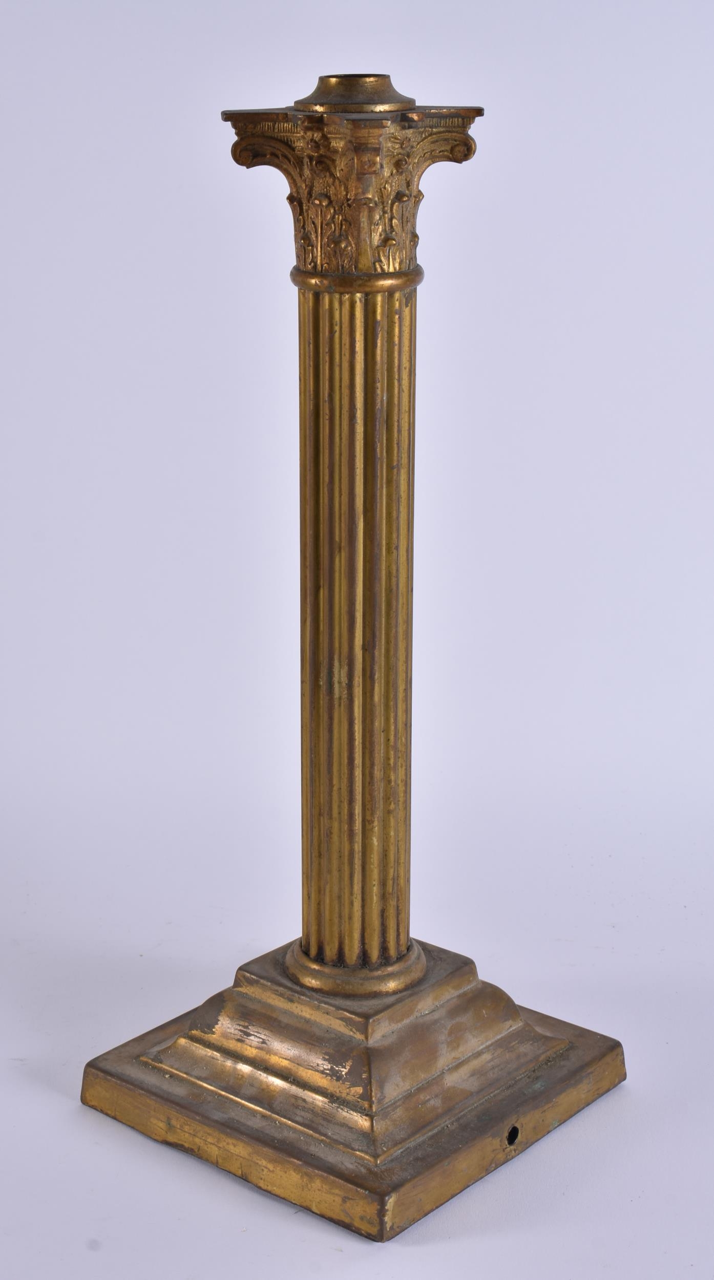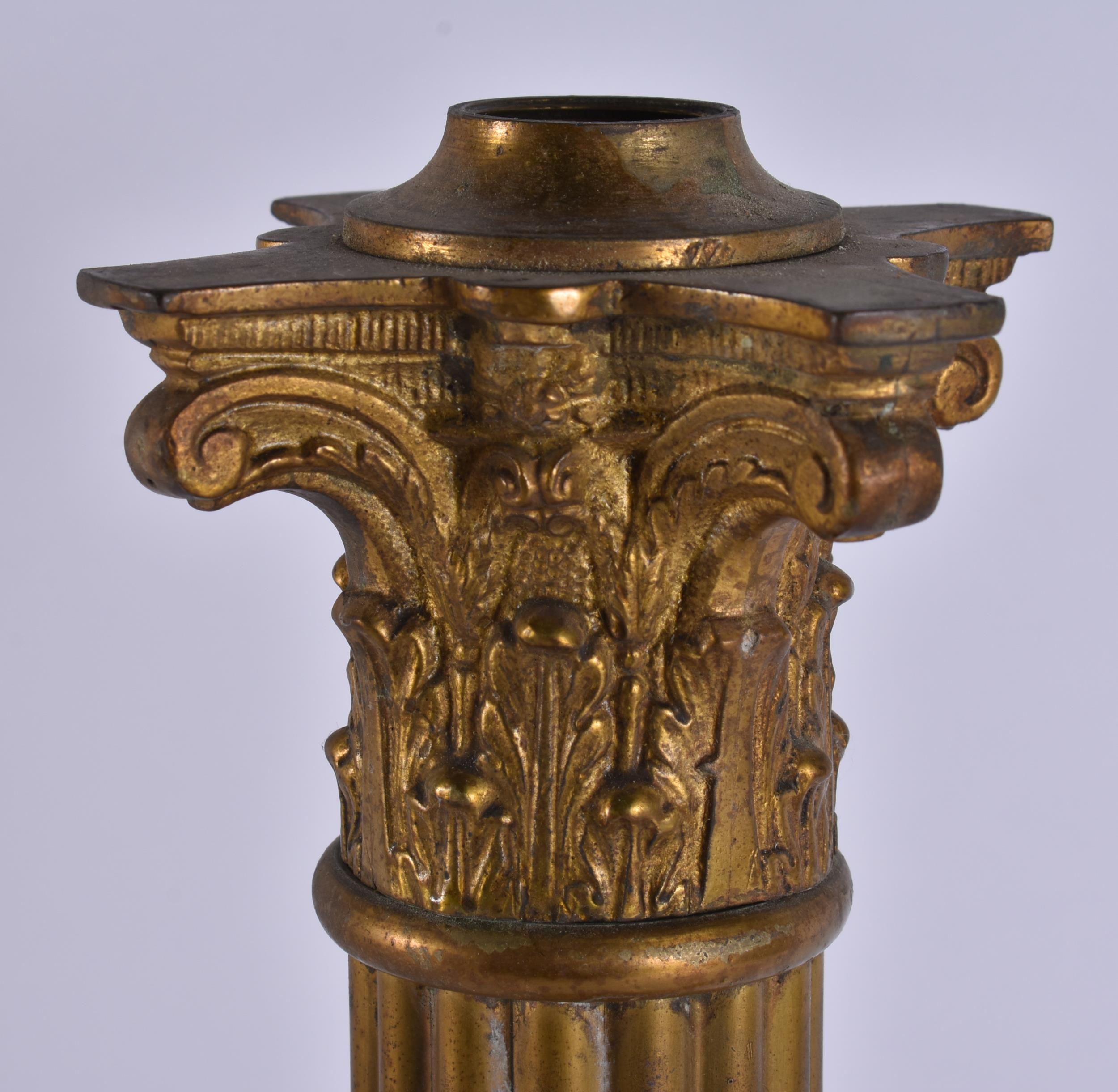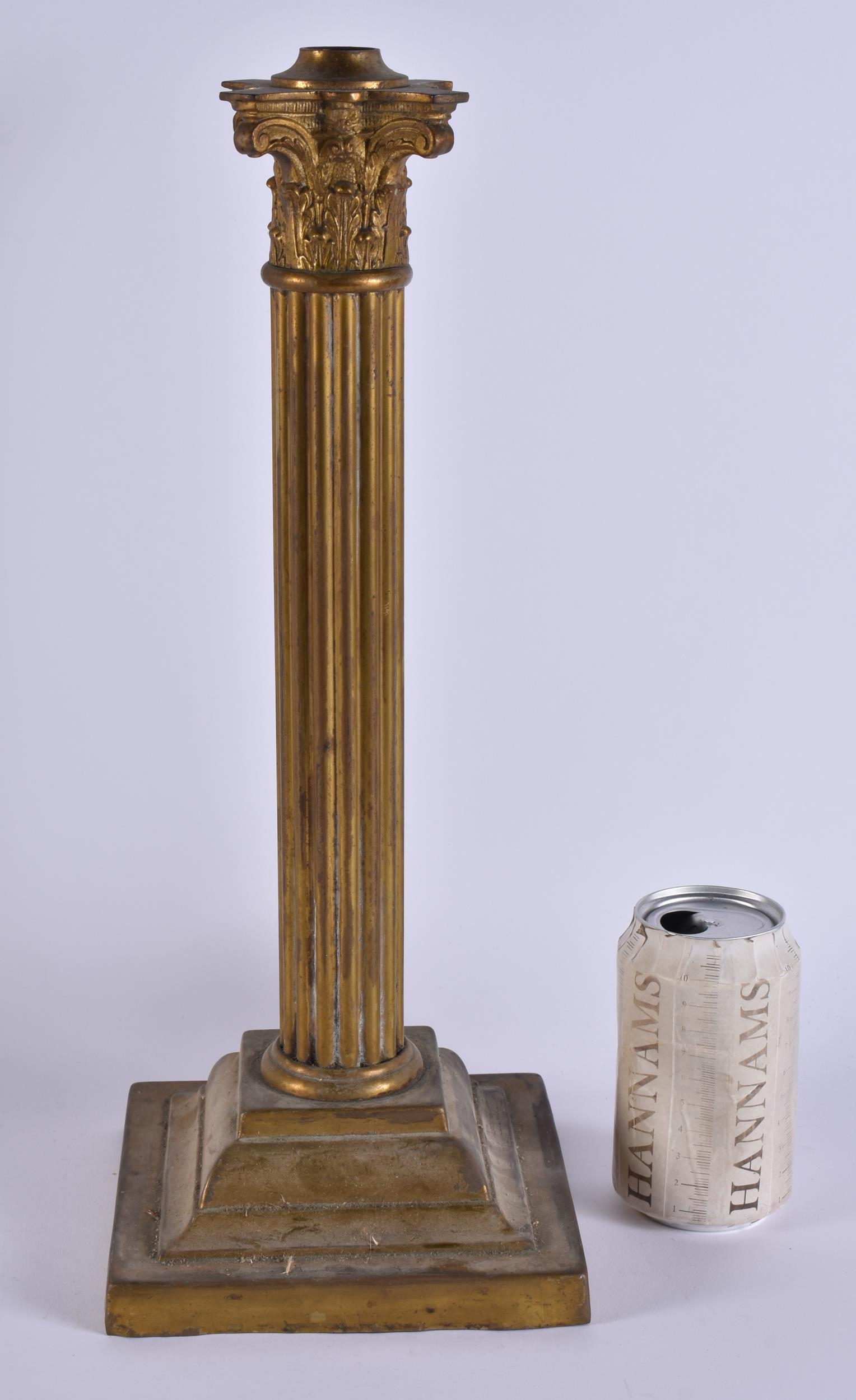 AN ANTIQUE COUNTRY HOUSE CORINTHIAN COLUMN LAMP BASE. 40 cm high.