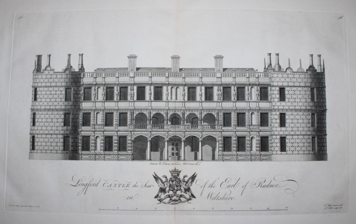 Vitruvius Britannicus 1771 - Pl 96 Longford Castle, Wiltshire. This original copperplate engraving of Longford Castle, the seat of the Earl of Radnor, seat of the Earl of Shrewsbury, is from Vitruvius Britannicus Vol 5 published in 1771.