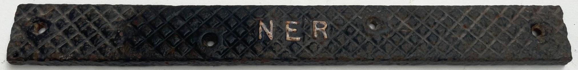 Step plate, NER, cast iron, repainted front. good condition, this has a lip to the underside. 18 inches x 2 inches. Shipping band - B.