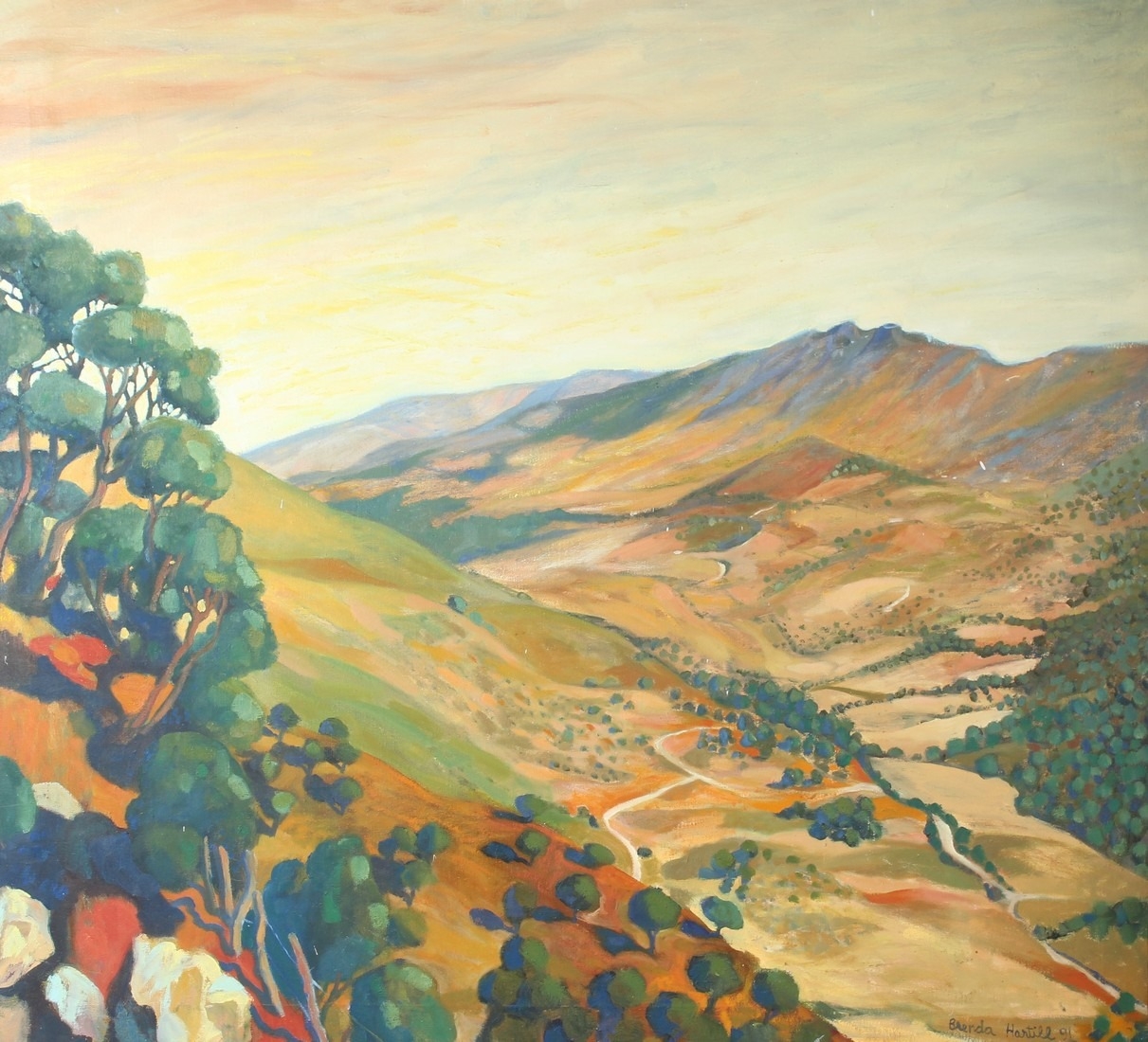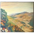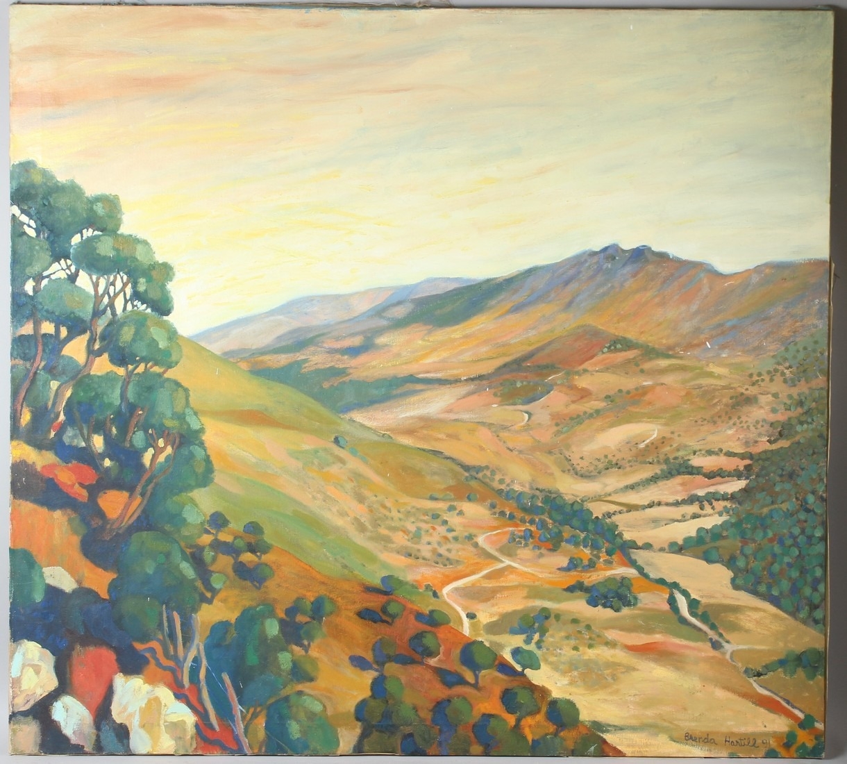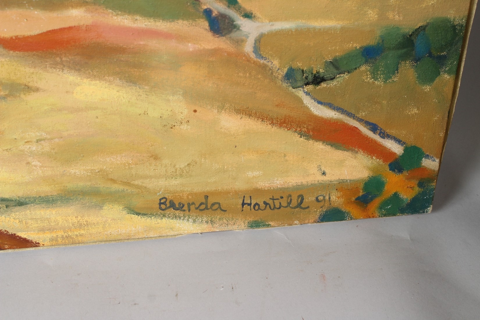 BRENDA HARTILL (1943) Large valley landscape oil on canvas signed and dated '91 unframed 106.5 x 117cm