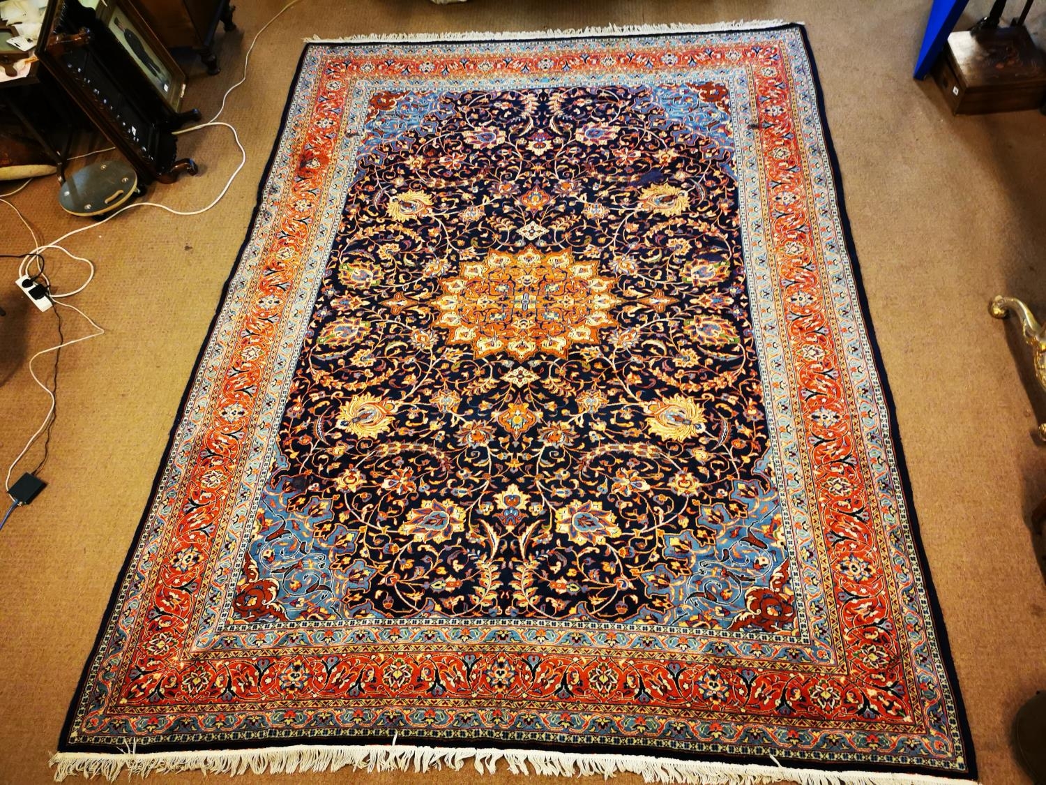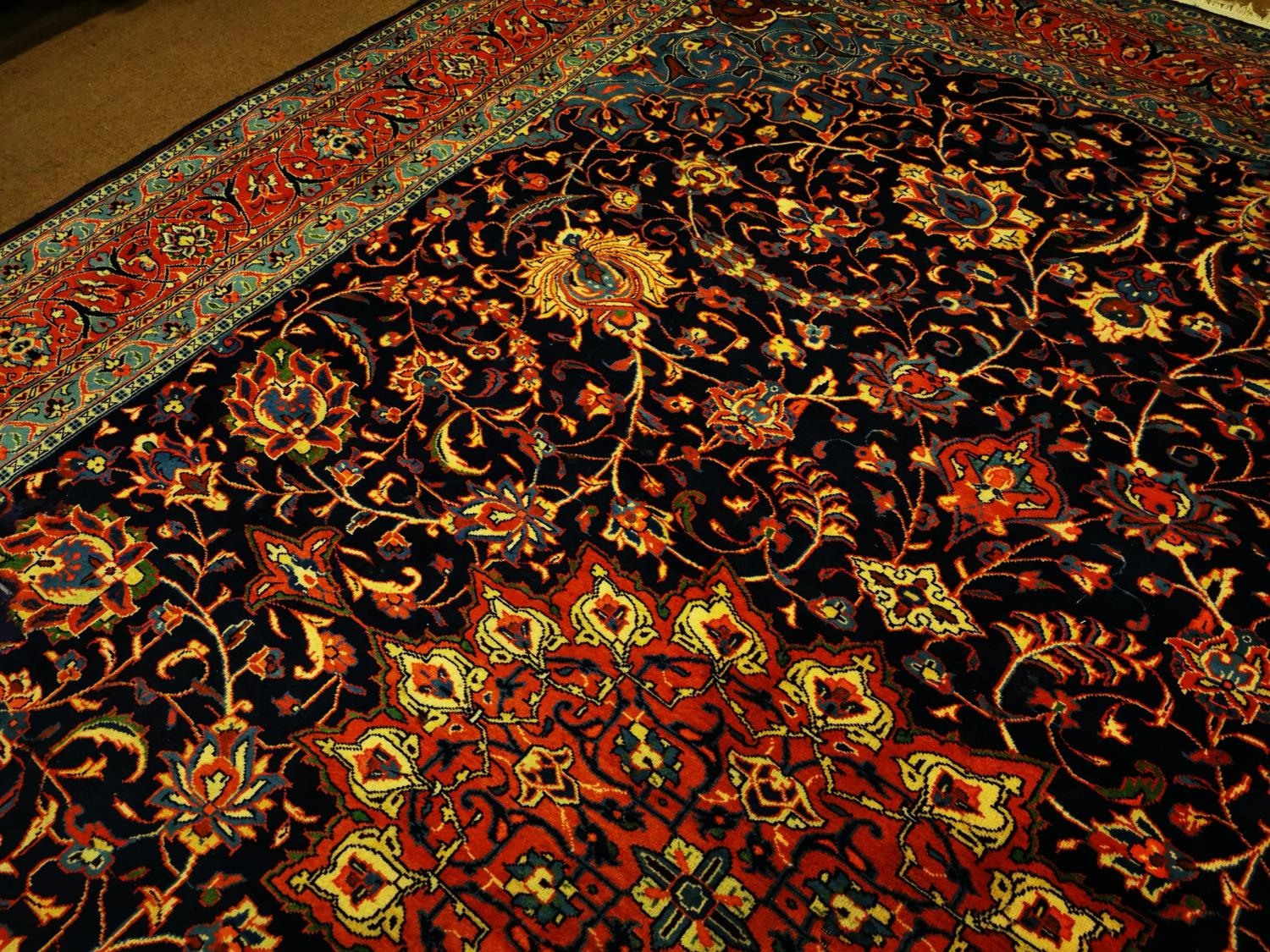 Hand knotted Persian carpet square {387 cm L x 280 cm W}
