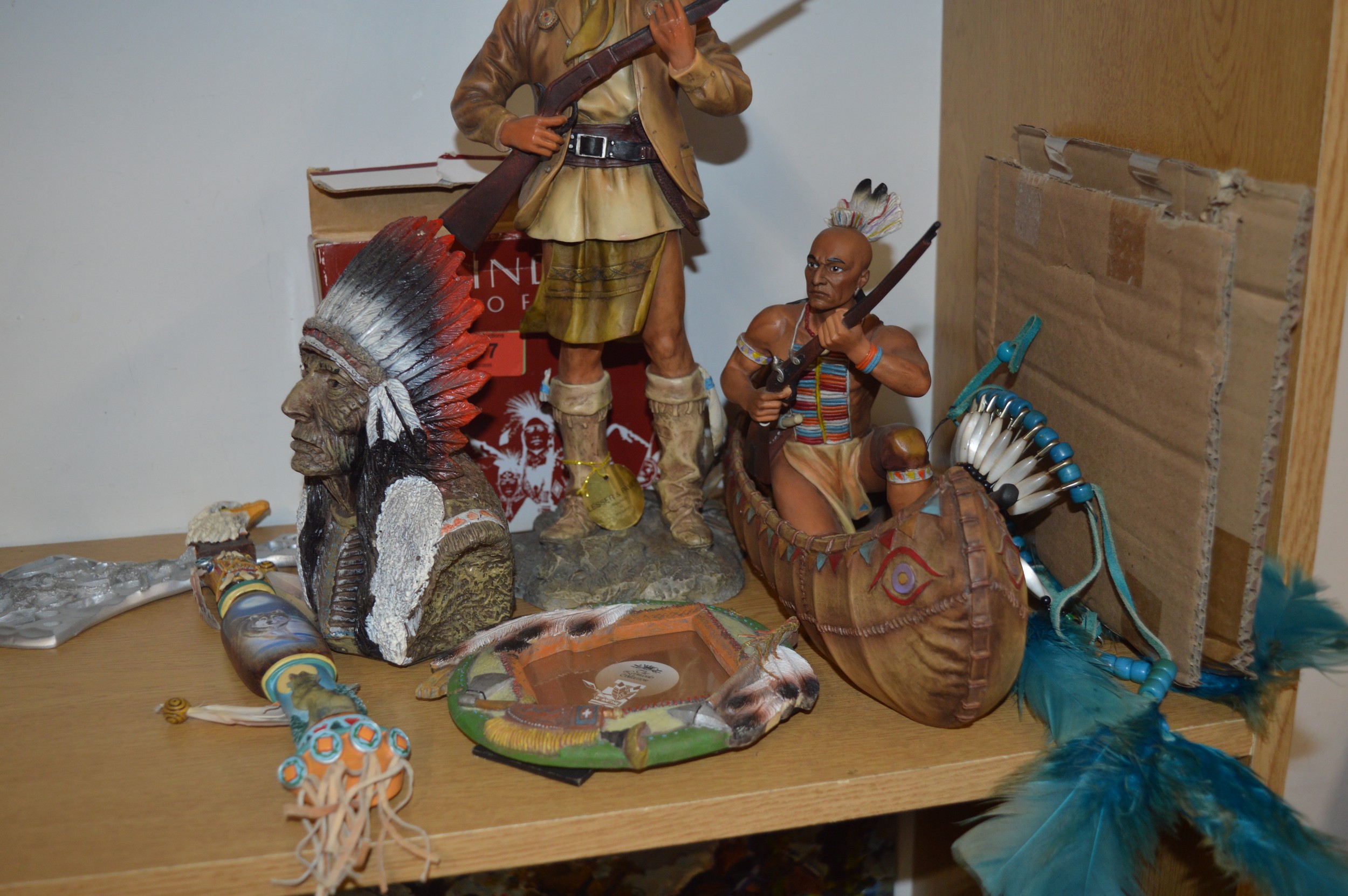 Two Resin Native American Figures by Leonardo, and a Tomahawk, etcNot for postage