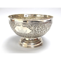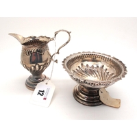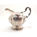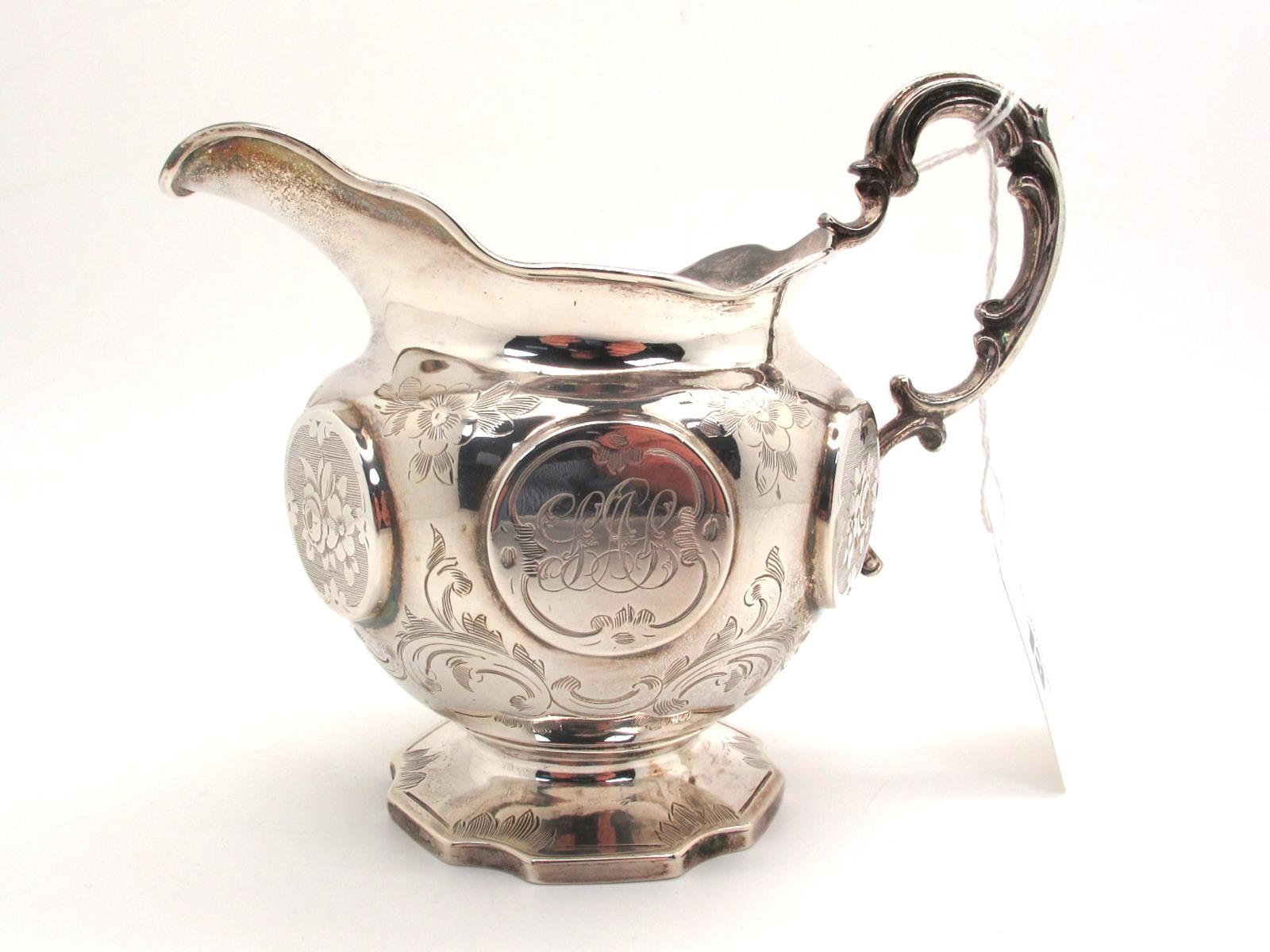 A Decorative Hallmarked Silver Jug, RP, London 1853, with circular panel detail, floral engraved and initialled, gilt lined, raised on shaped spreading base (150grams).