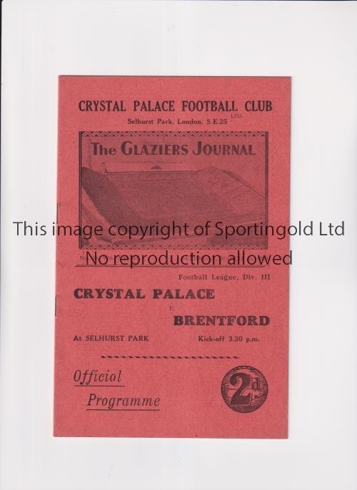 CRYSTAL PALACE V BRENTFORD 1933 Programme for the League match at Palace 11/3/1933. Good