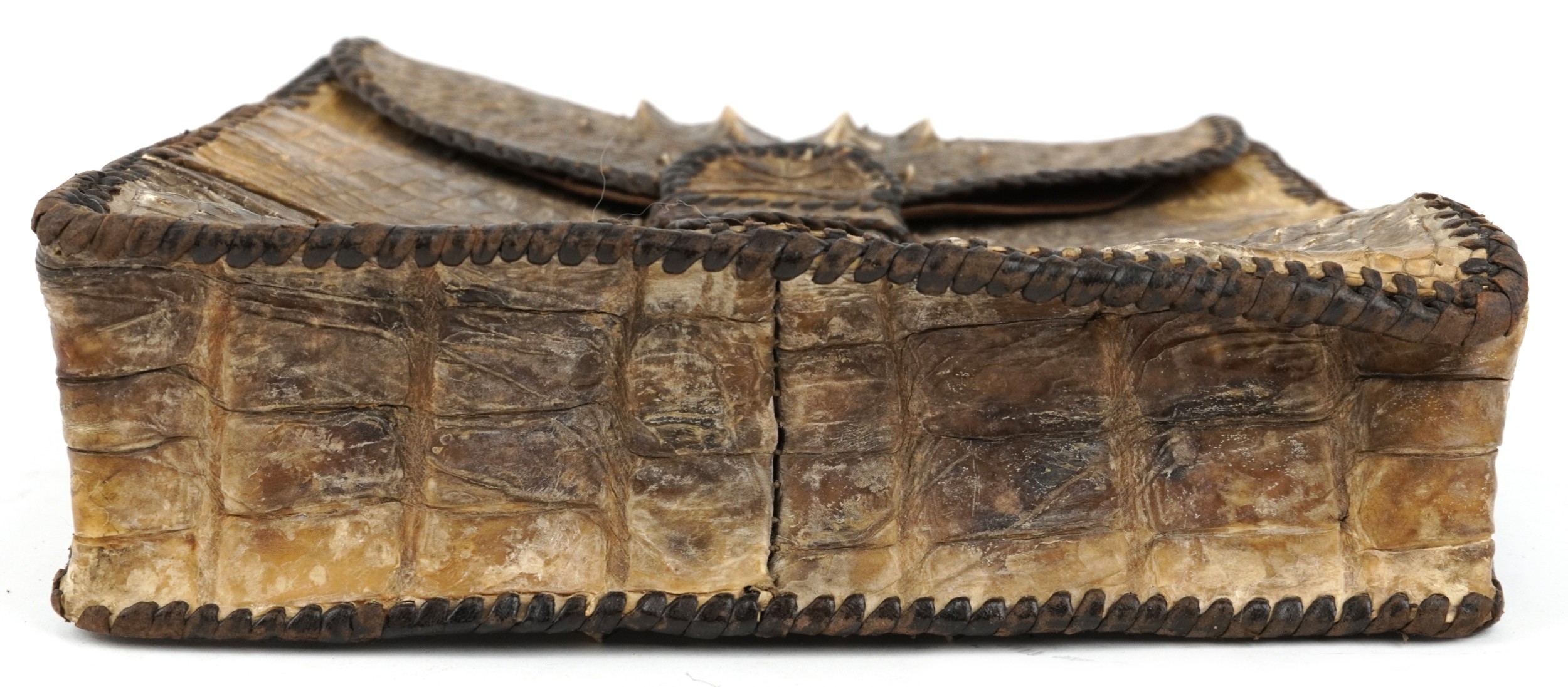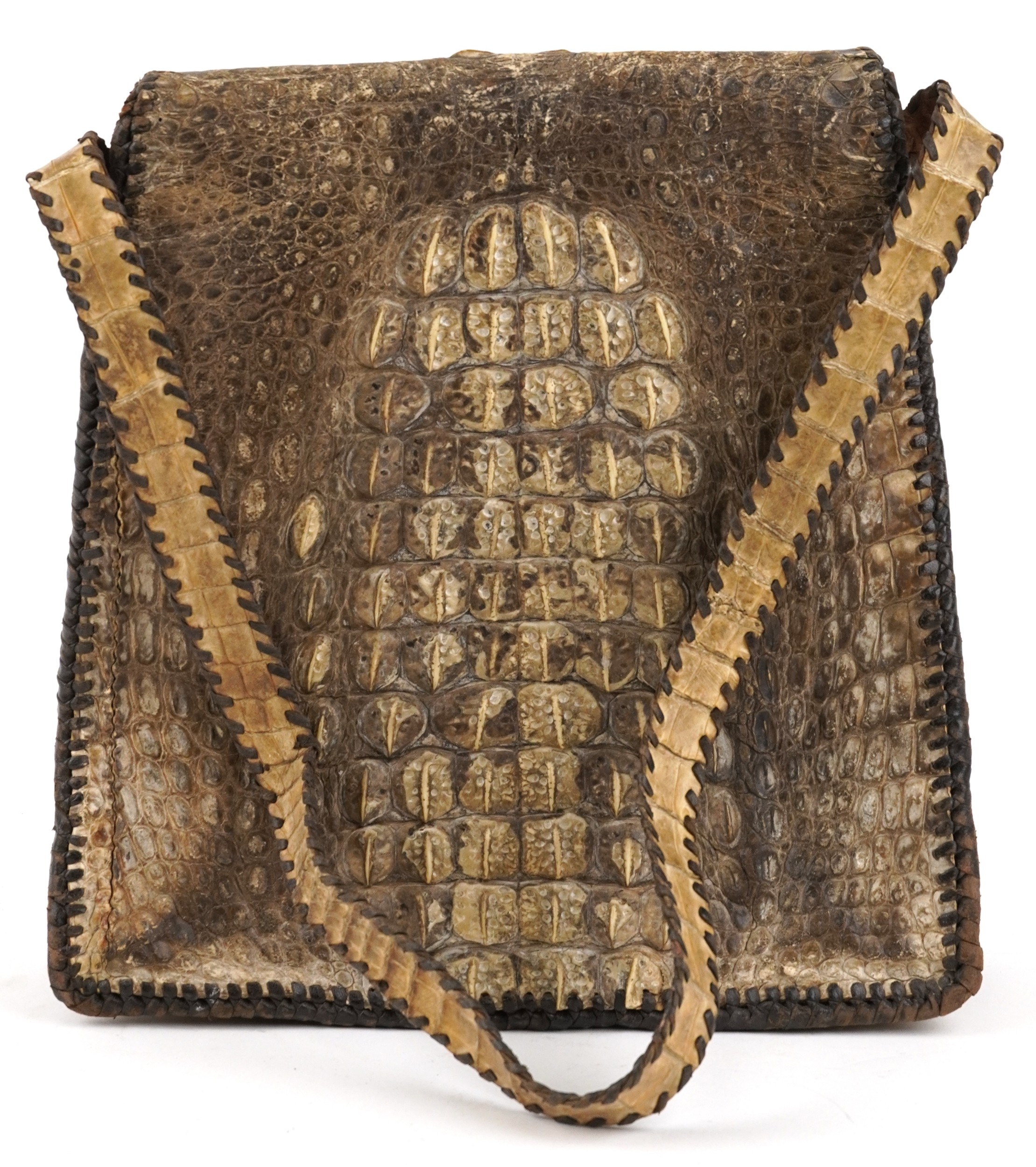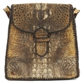 A taxidermy interest hornback crocodile leather bag with two compartments, 26cm high x 26cm wide.