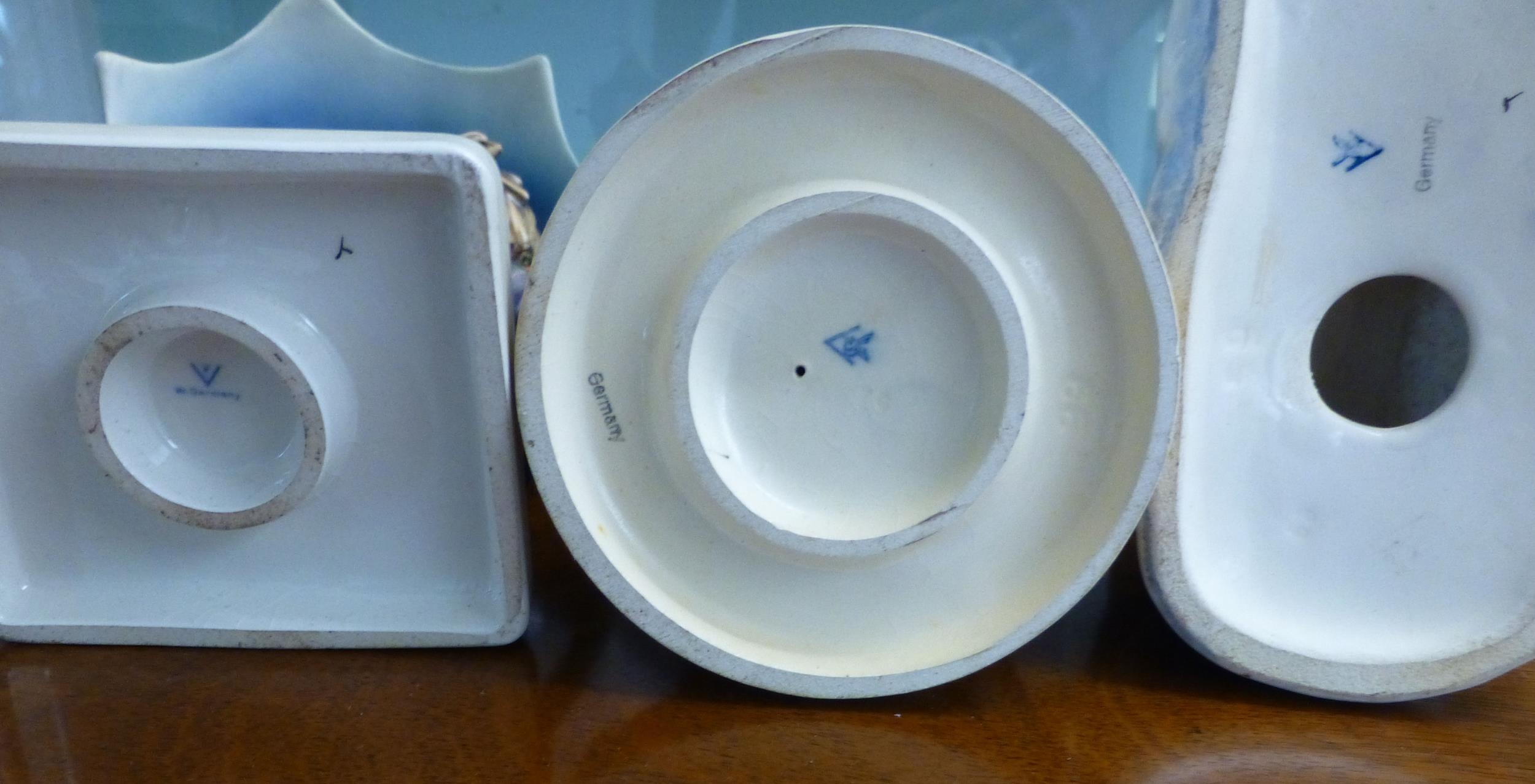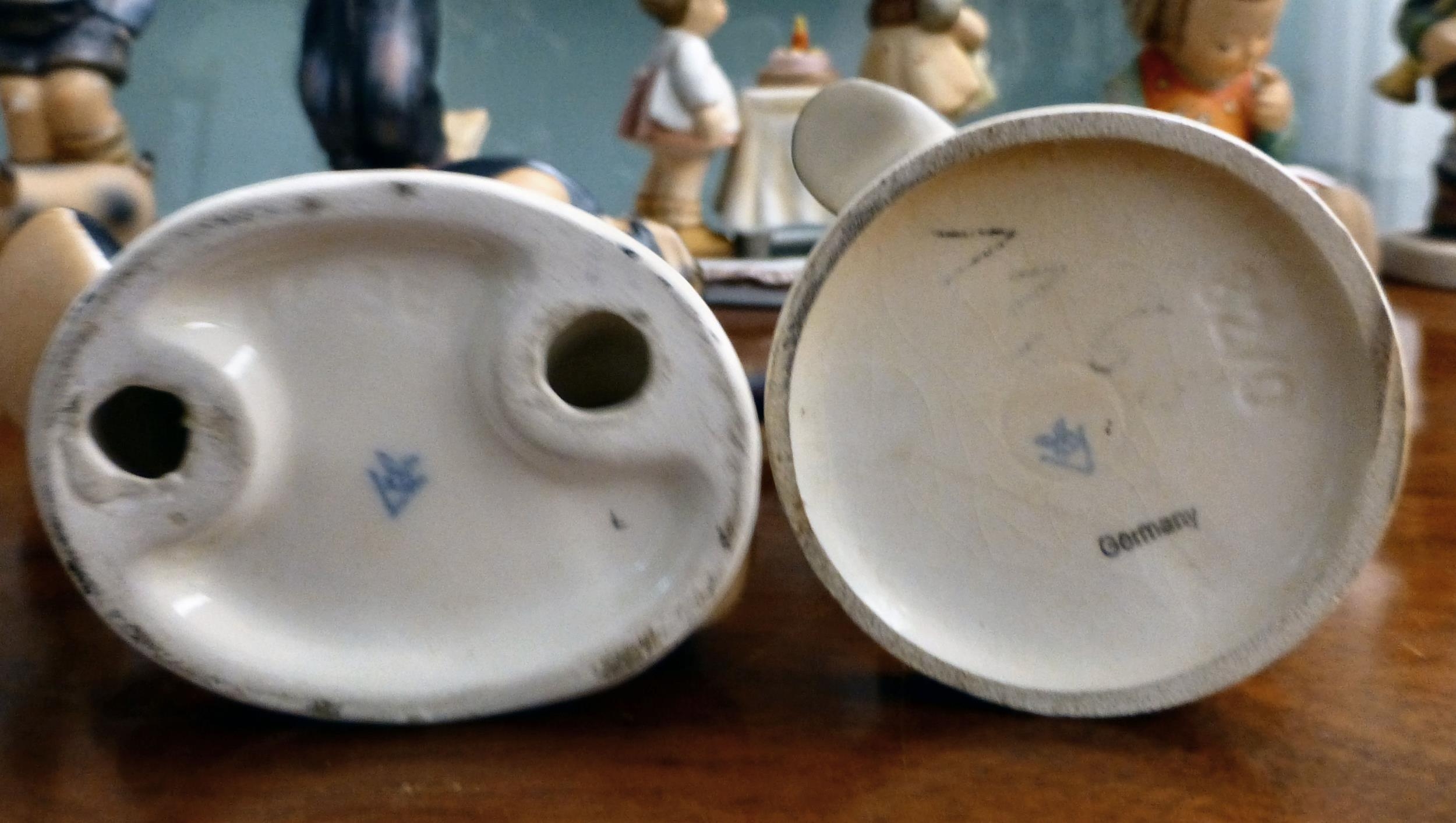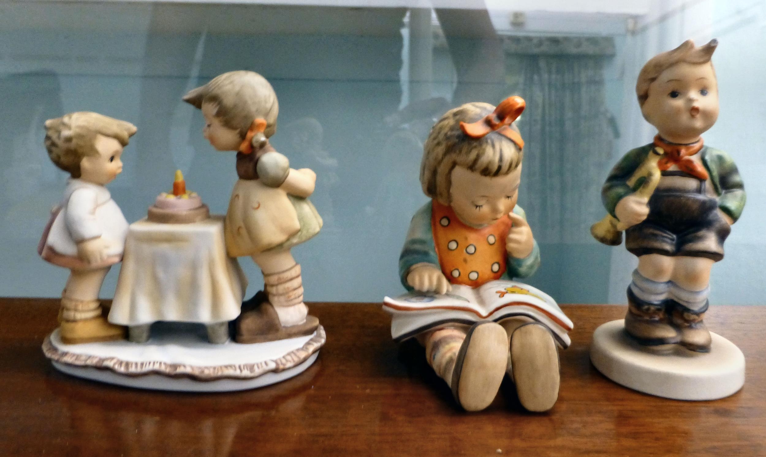 Eight Goebel china figures: to include a boy with an umbrella 7"h