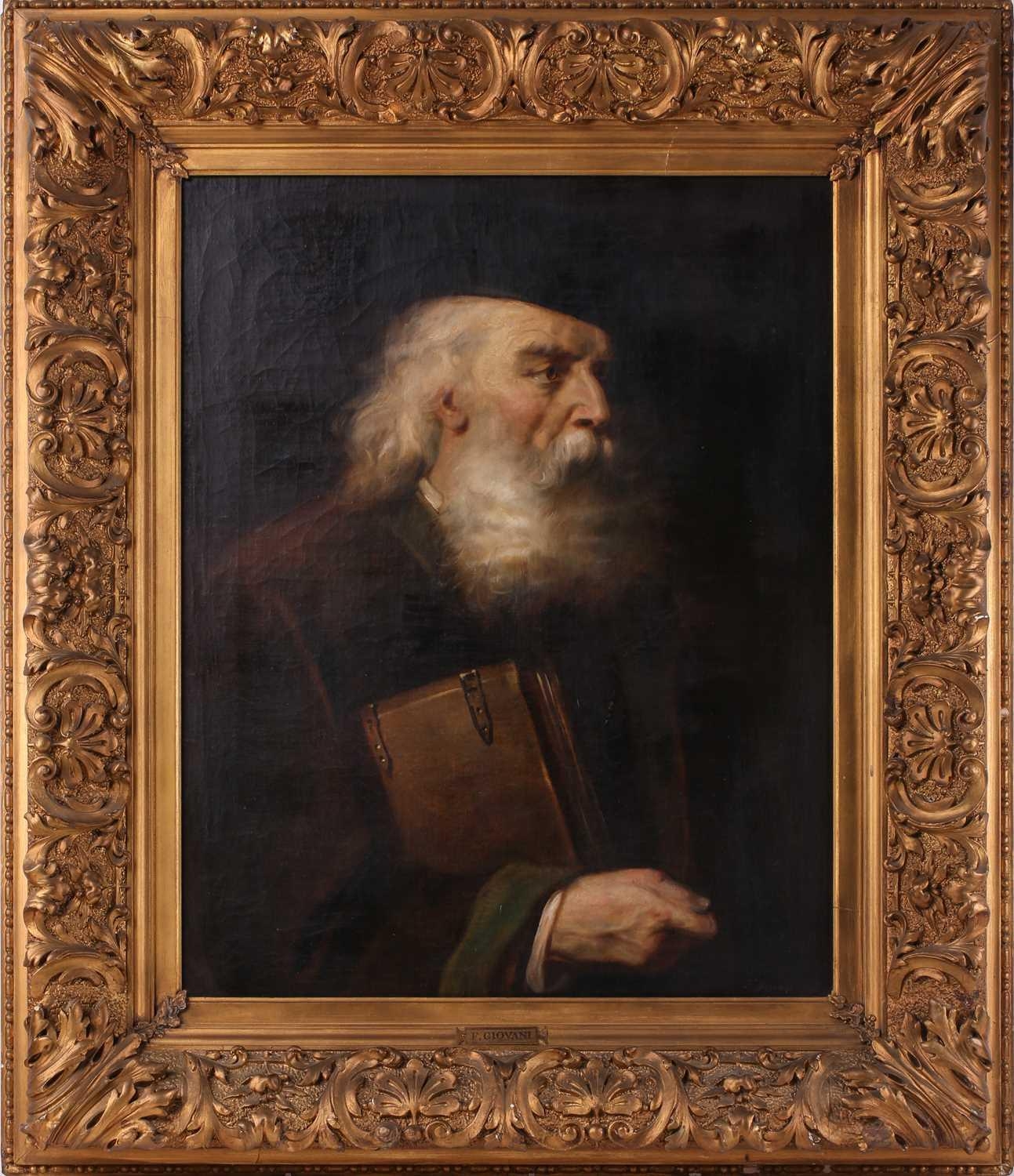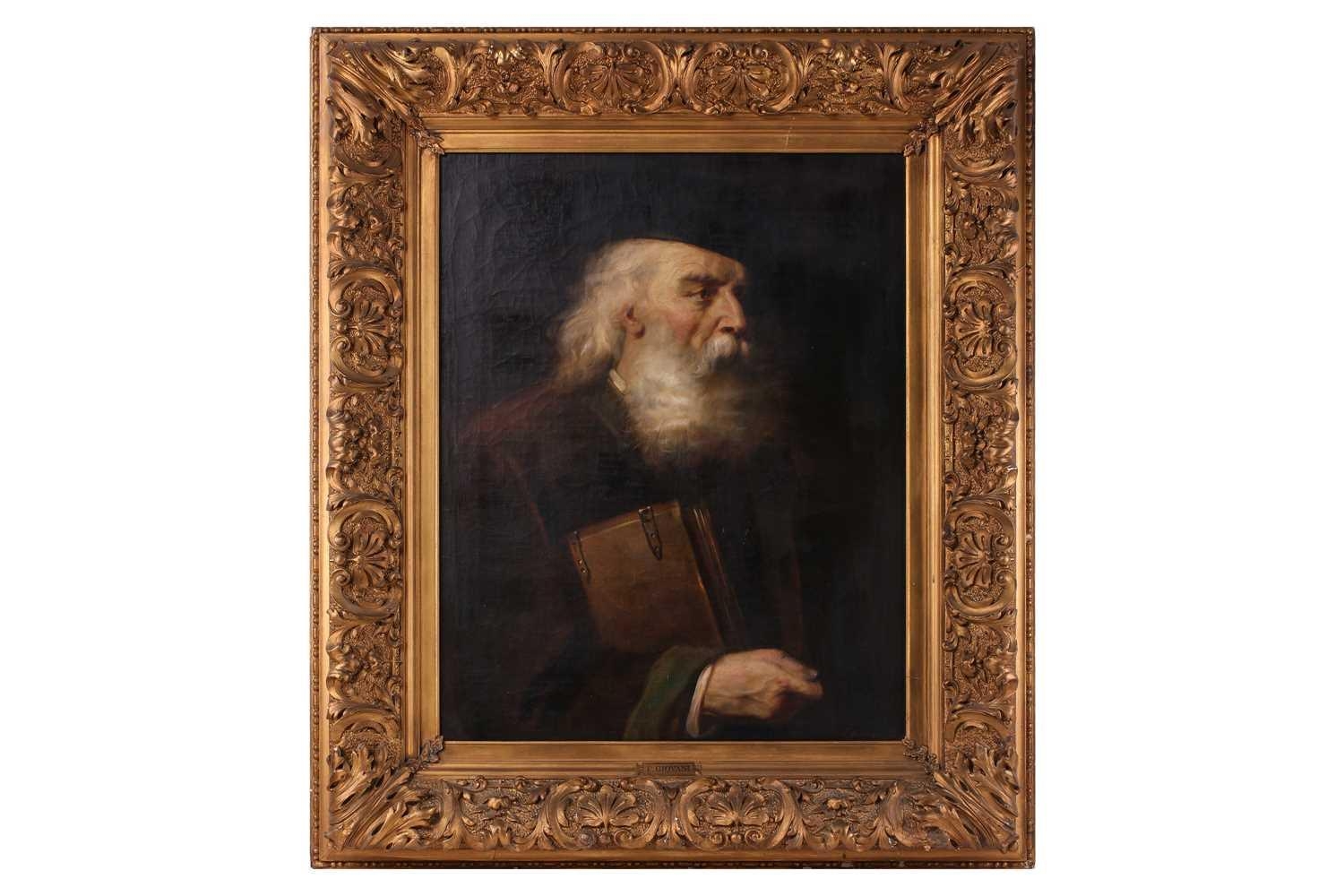 F. Giovani (19th-Century) Italian, Portrait of an elderly scholar holding a book, signed, oil on canvas, 79 x 63 cm, in an ornate giltwood frame 110 x 94 cm