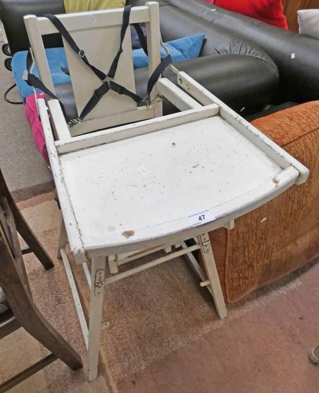 CHILD'S PAINTED WOODEN METAMORPHIC HIGH CHAIR