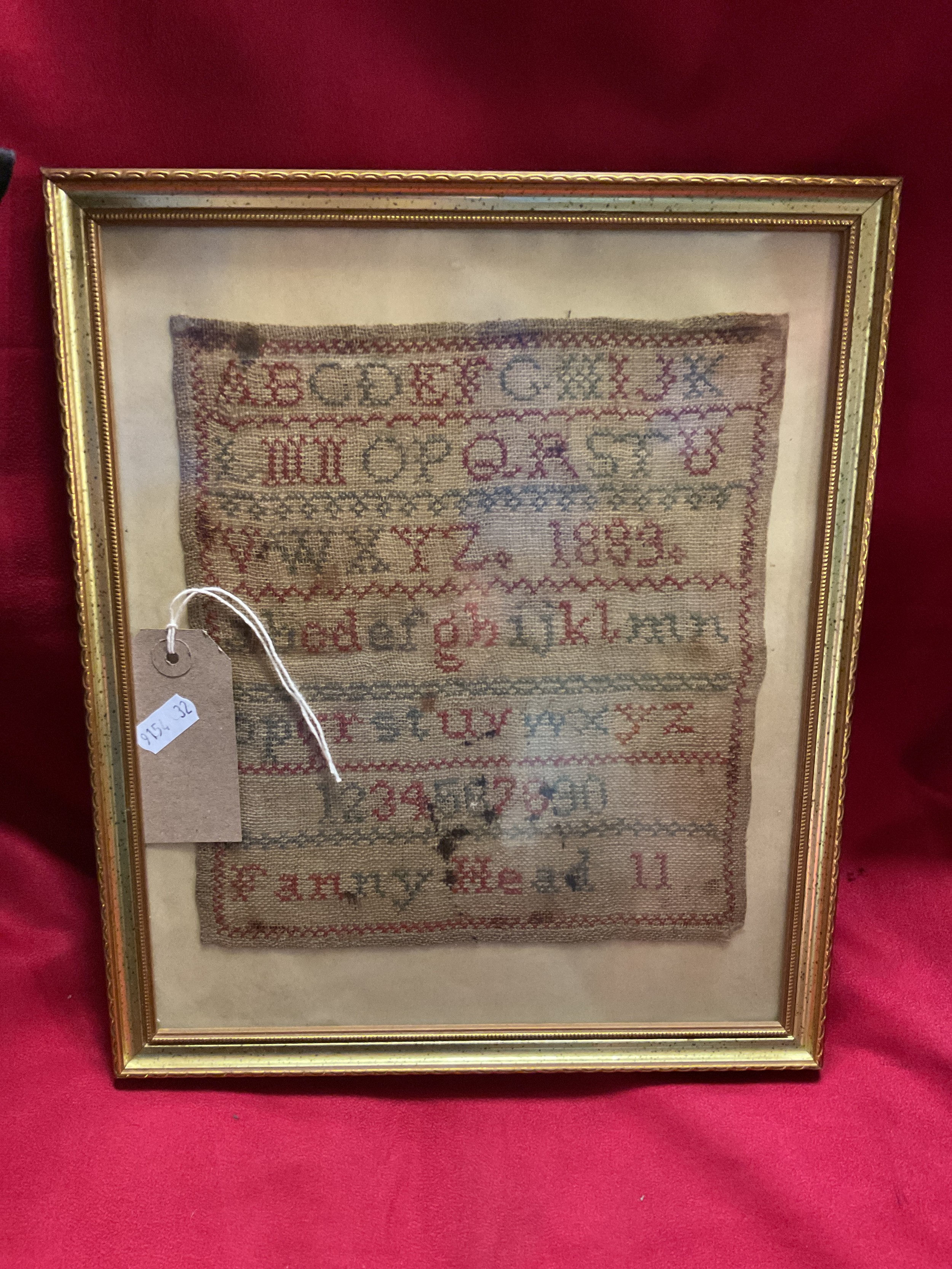 A vintage Victorian alphabet sampler by Fanny Mead aged 11