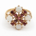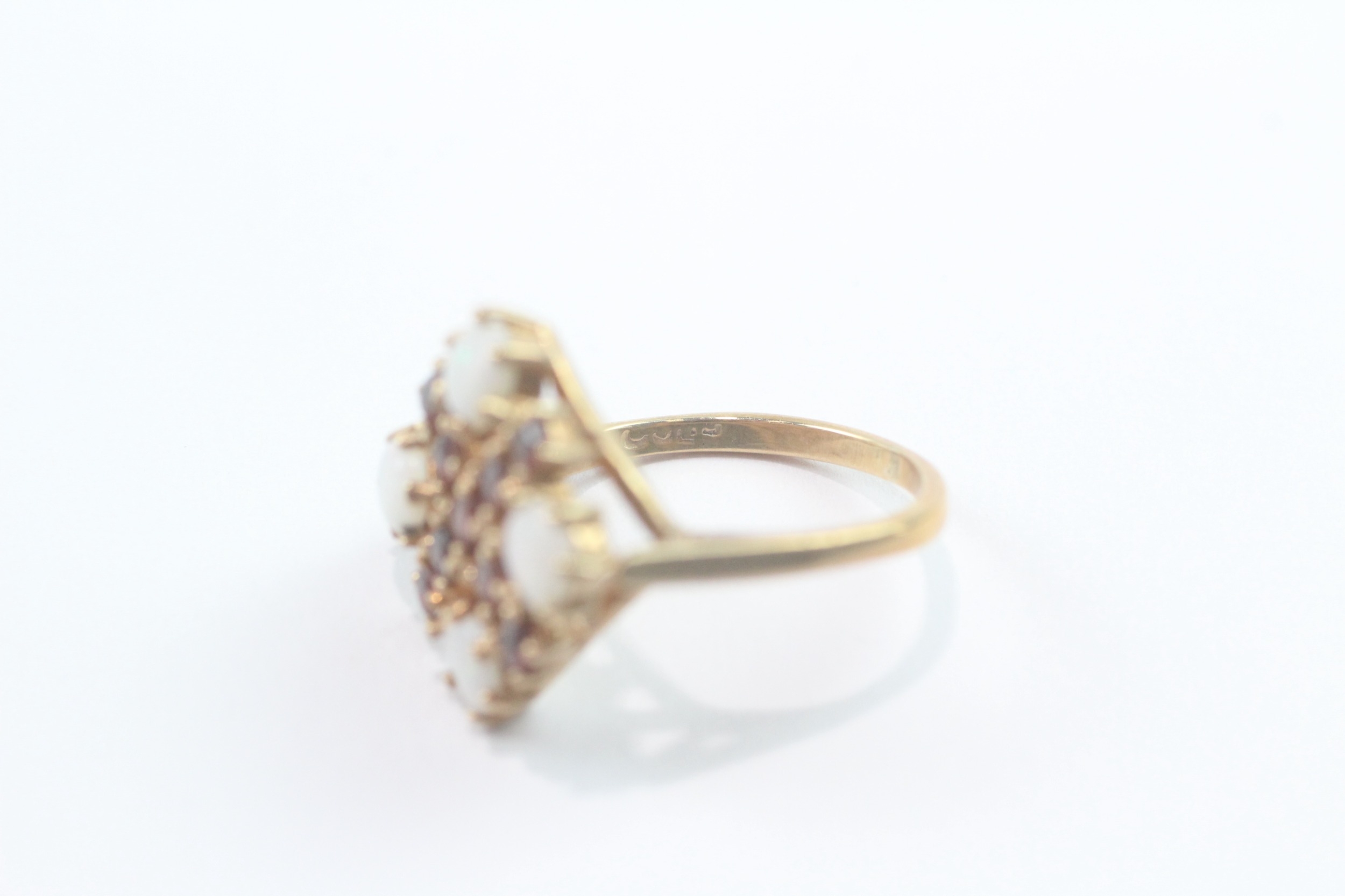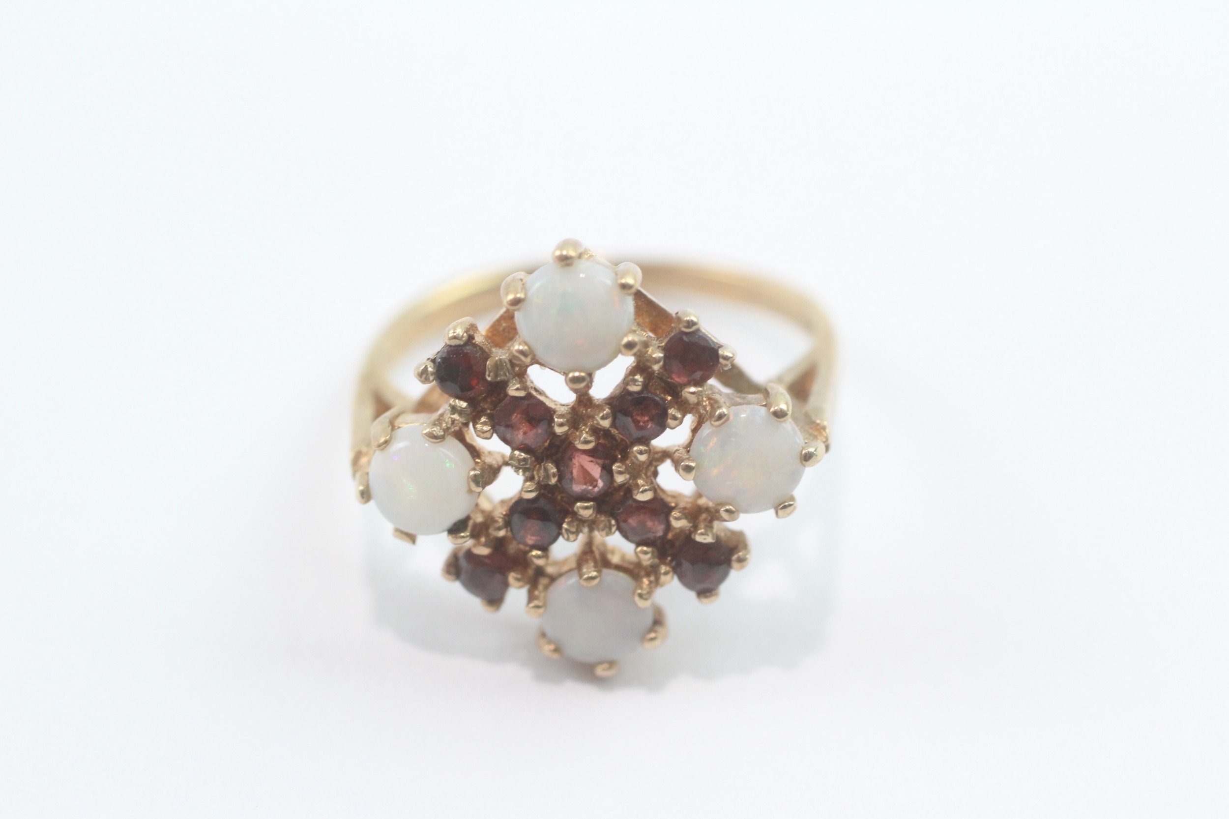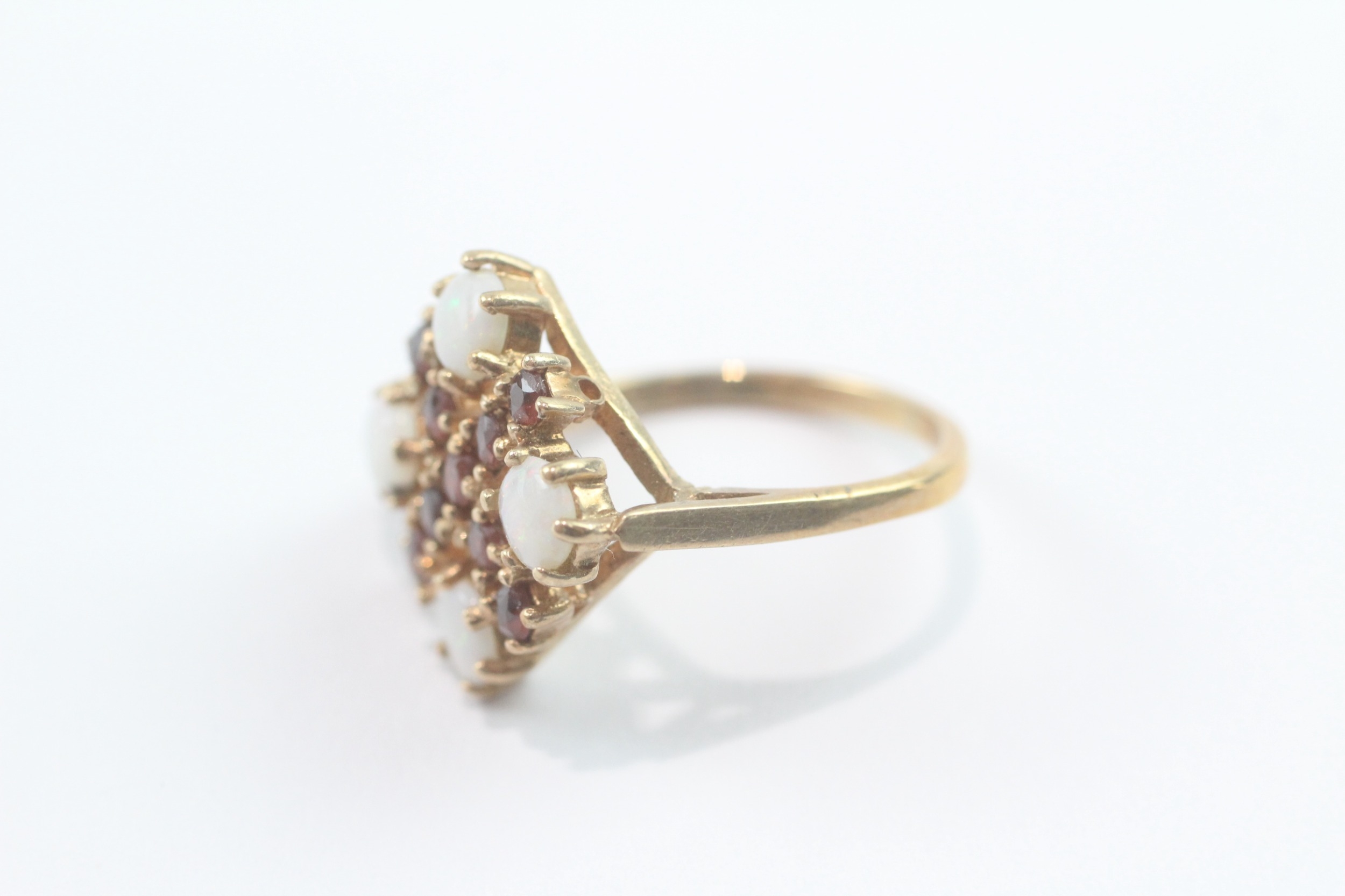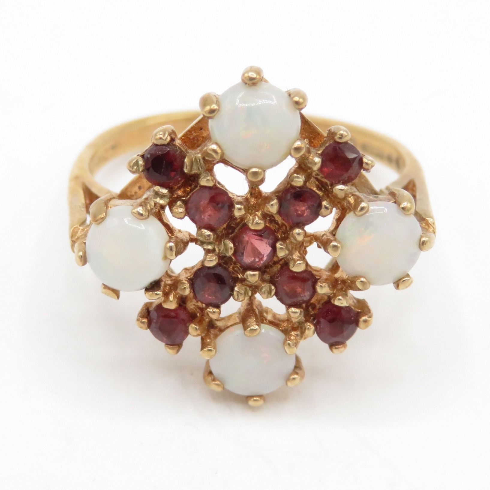 9ct gold opal garnet cocktail ring (3.4g) Size L