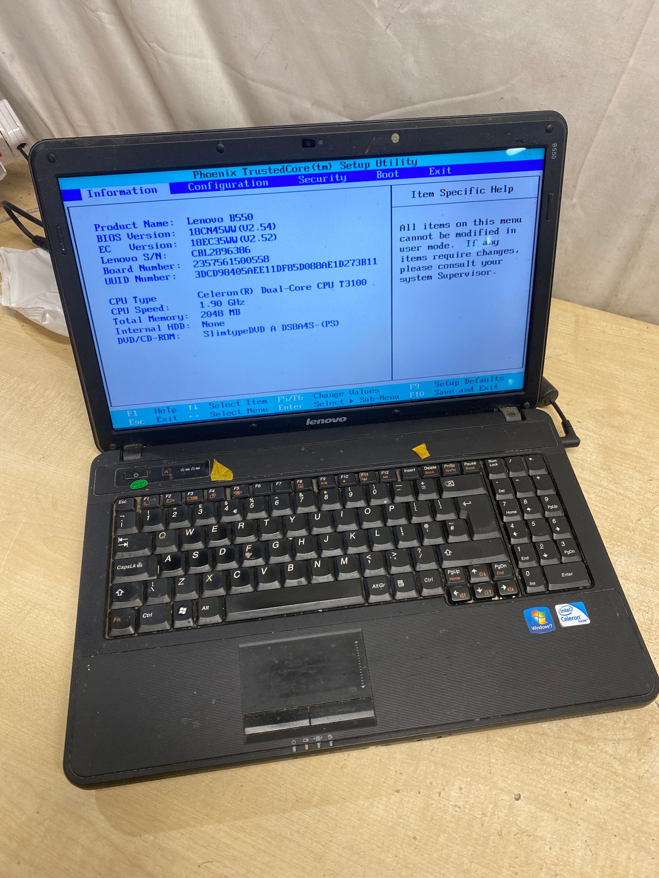 Lenovo B550, Celeron CPU, 2GB RAM, NO HDD