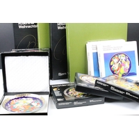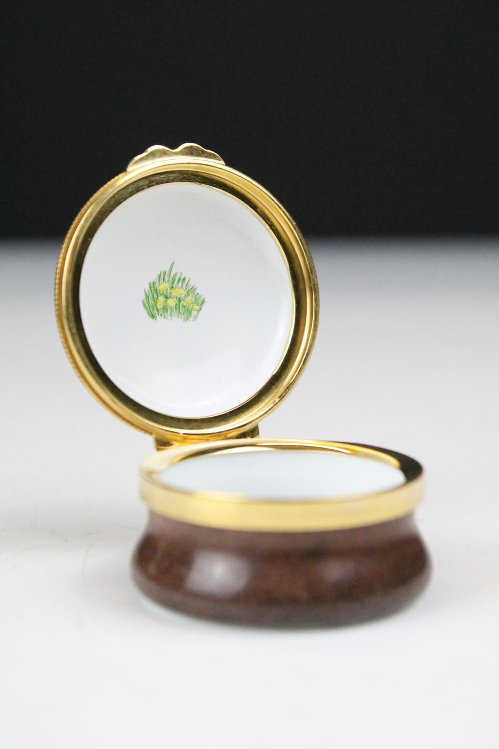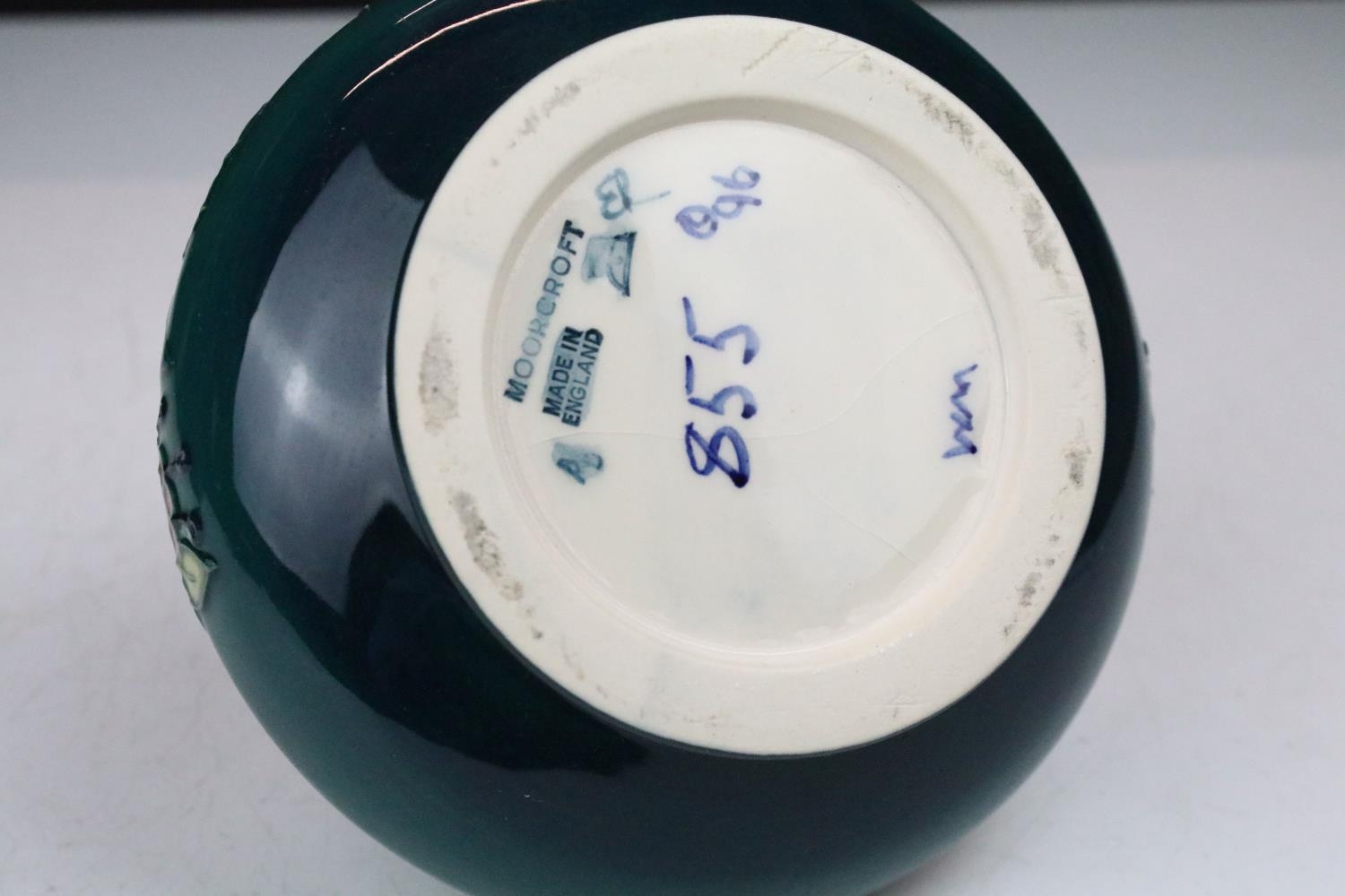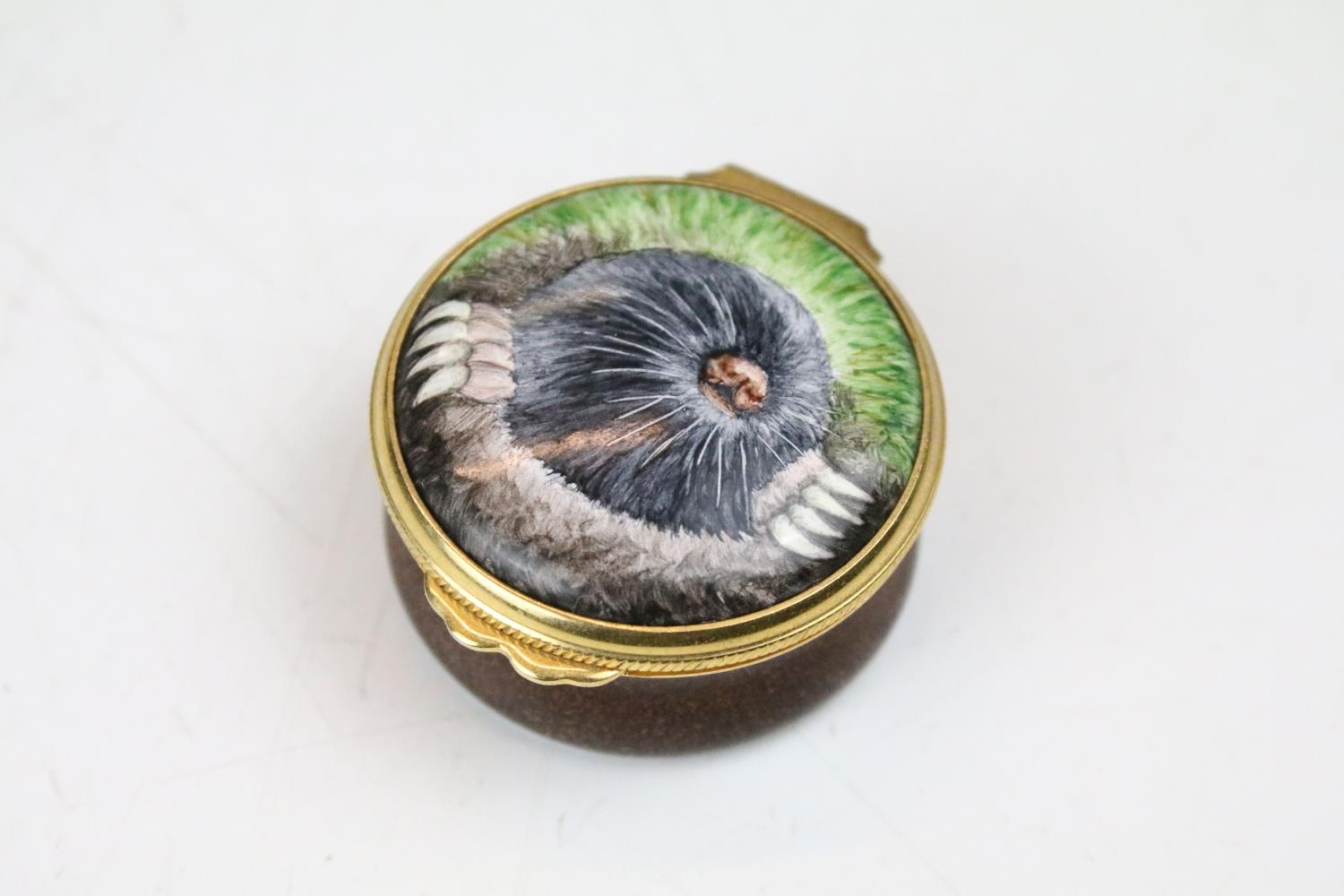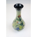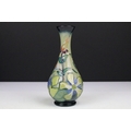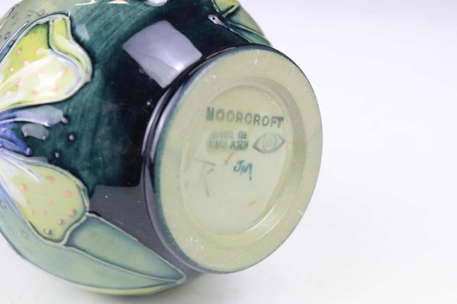 Two boxed Moorcroft pottery vases to include a Carousel squat vase (11cm tall), and a Hypericum baluster vase, plus a boxed Moorcroft enamel pill box with mole decoration