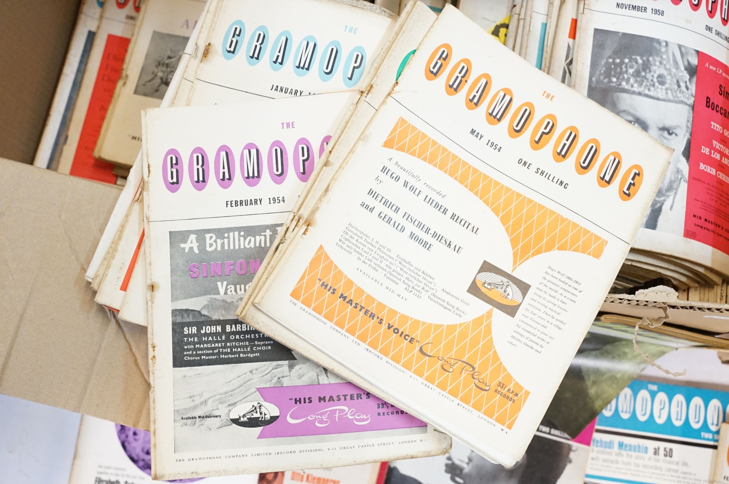 Large collection of Gramophone magazines, dating back from the 1950s - 1970s, comprising over 100 volumes (four boxes)