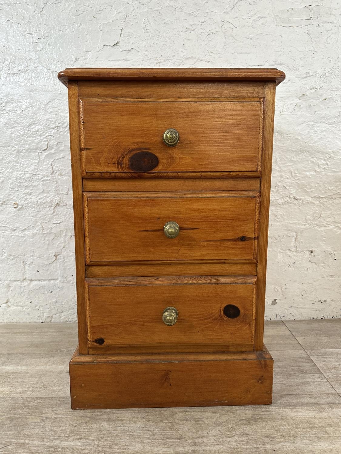 A pine bedside chest of drawers - approx. 71cm high x 44cm wide x 43cm deep