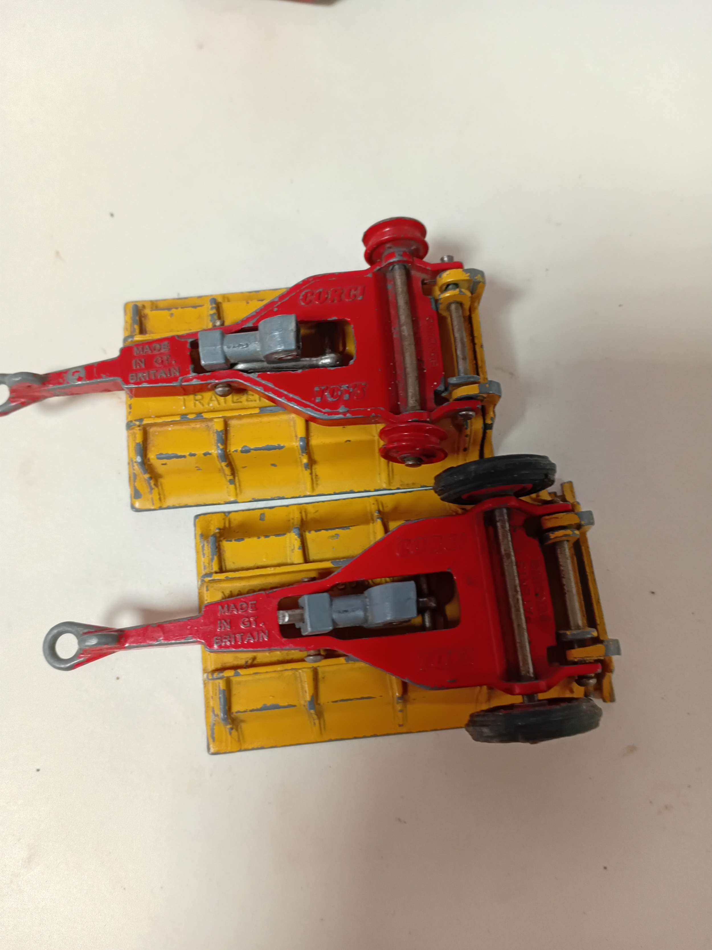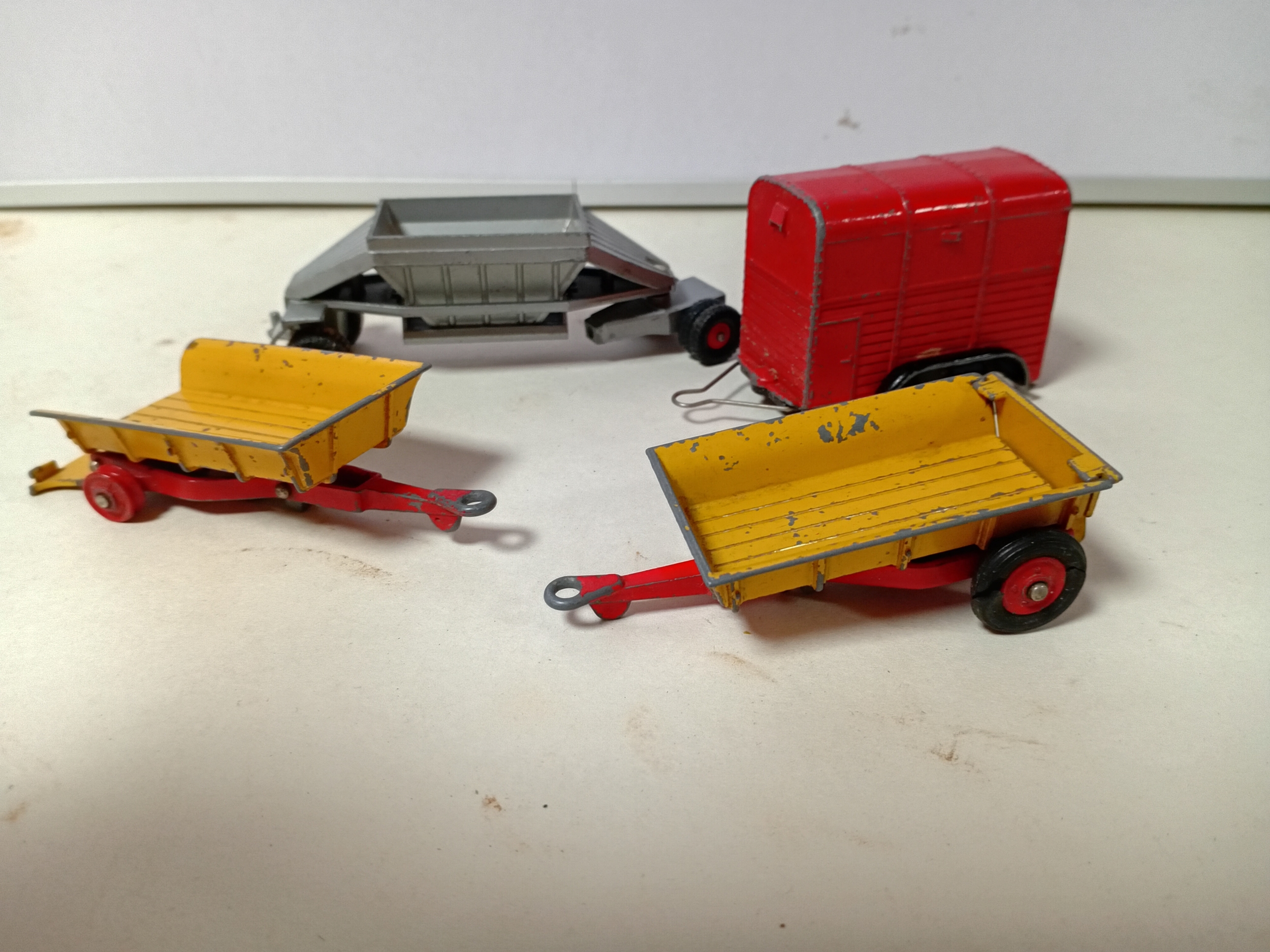 A collection of vintage die cast Corgi toys farm trailers