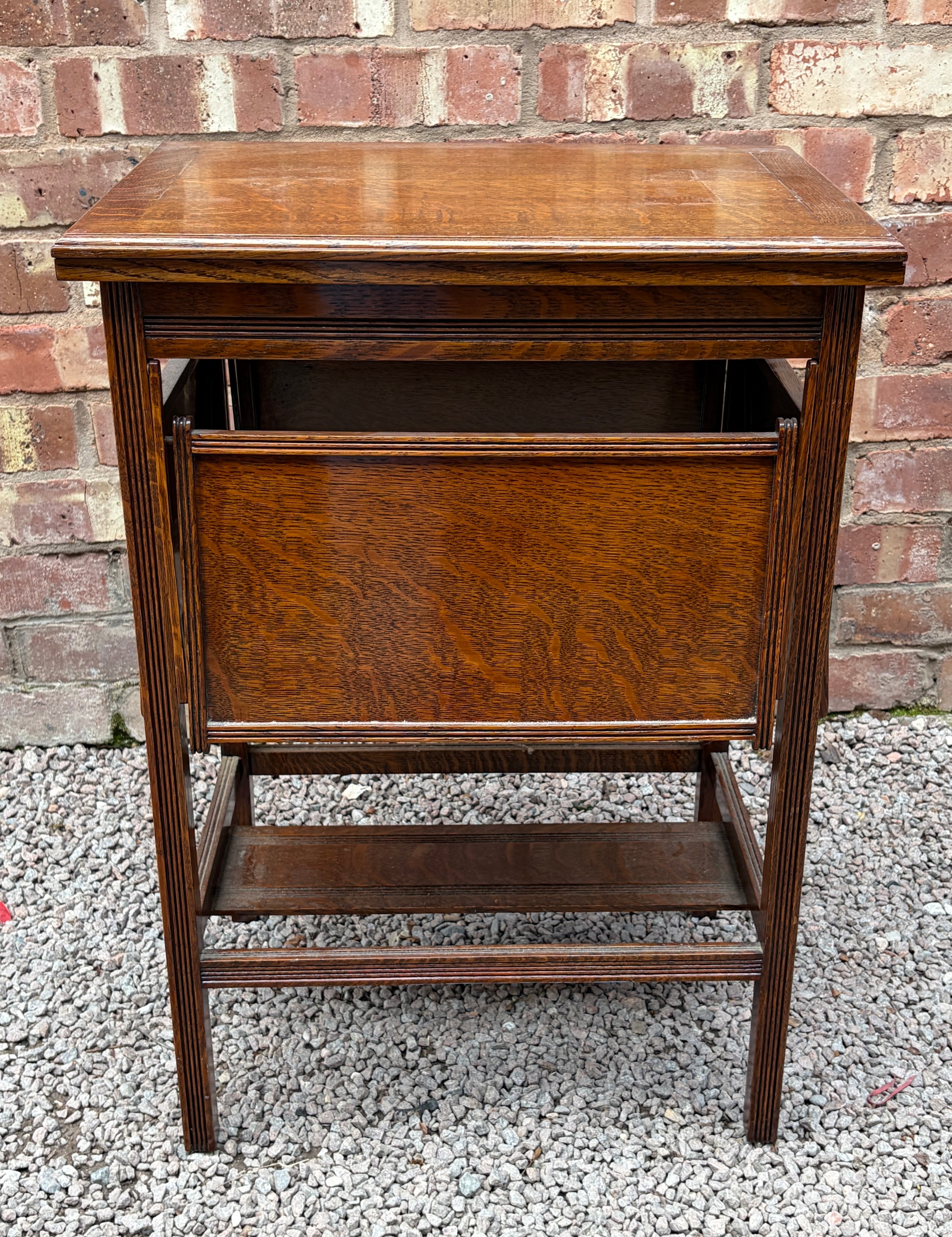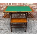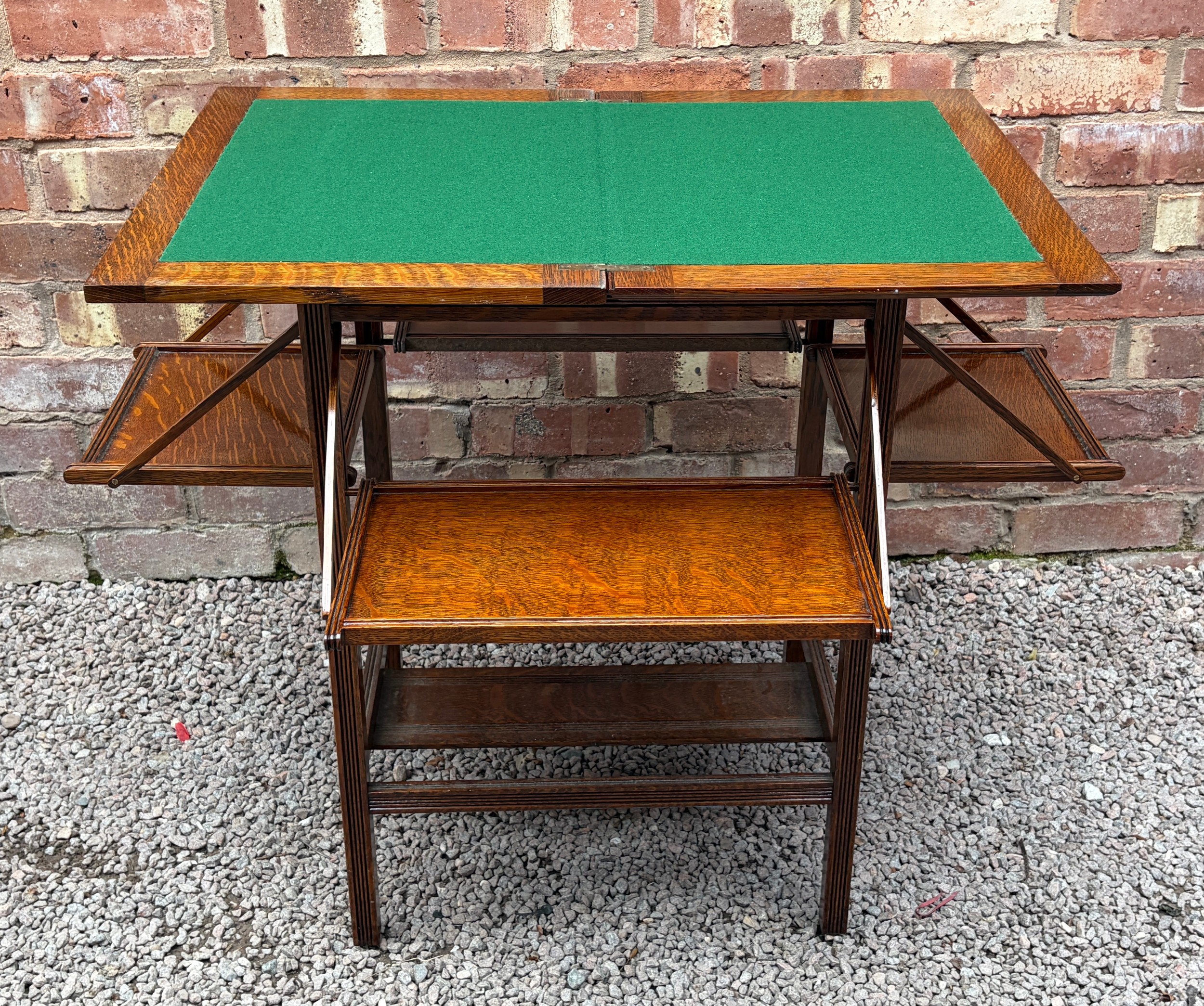 OAK BAIZE COVERED FOLD OVER SWIVEL TOP TABLE WITH PULL OUT TRAYS