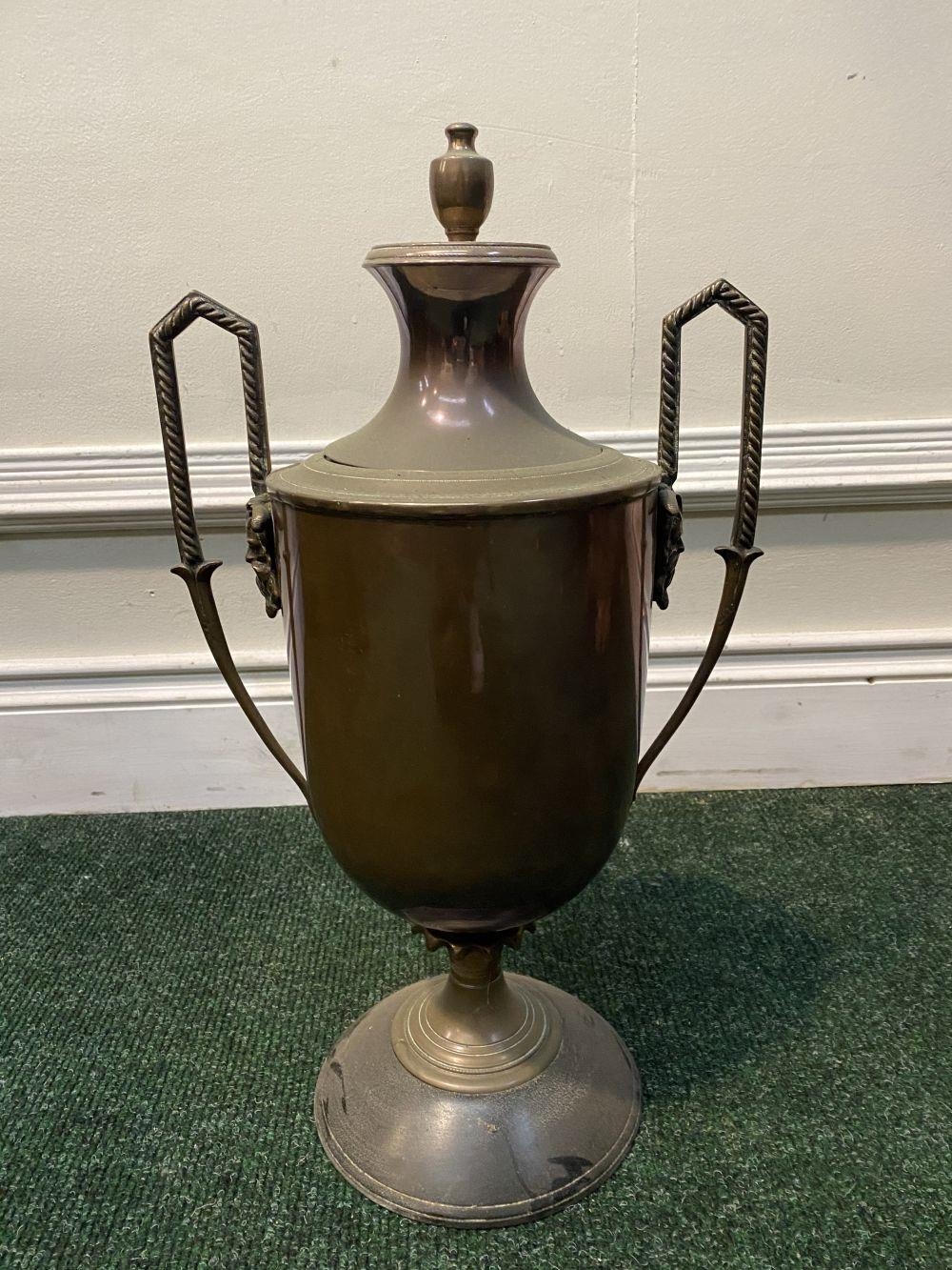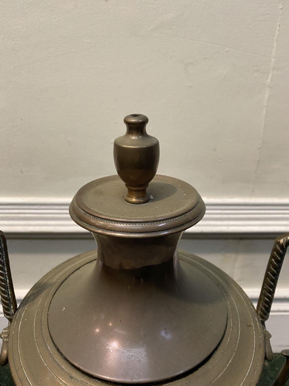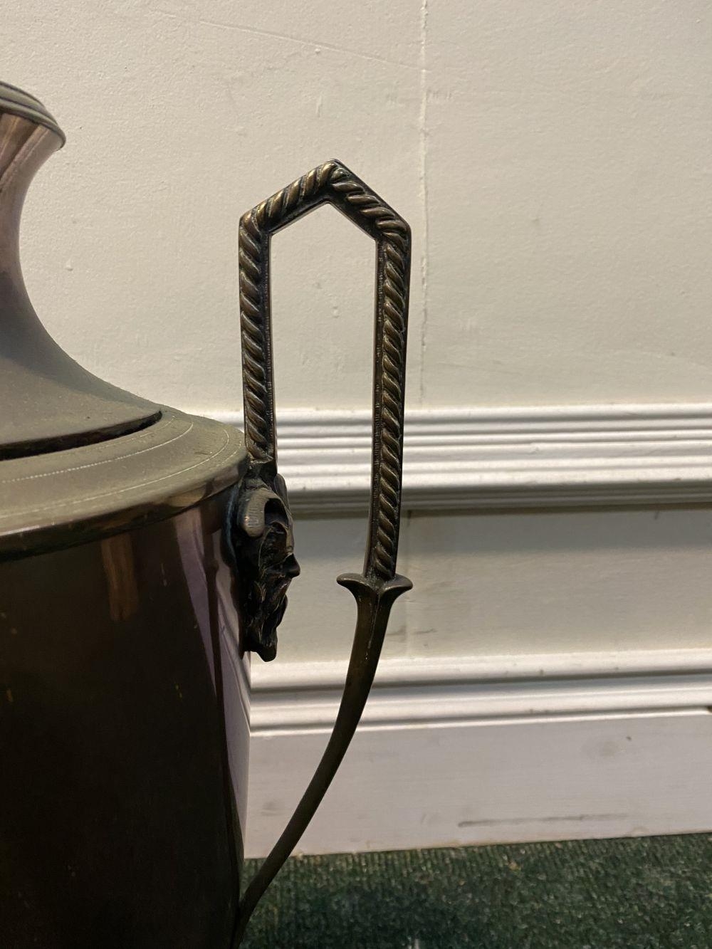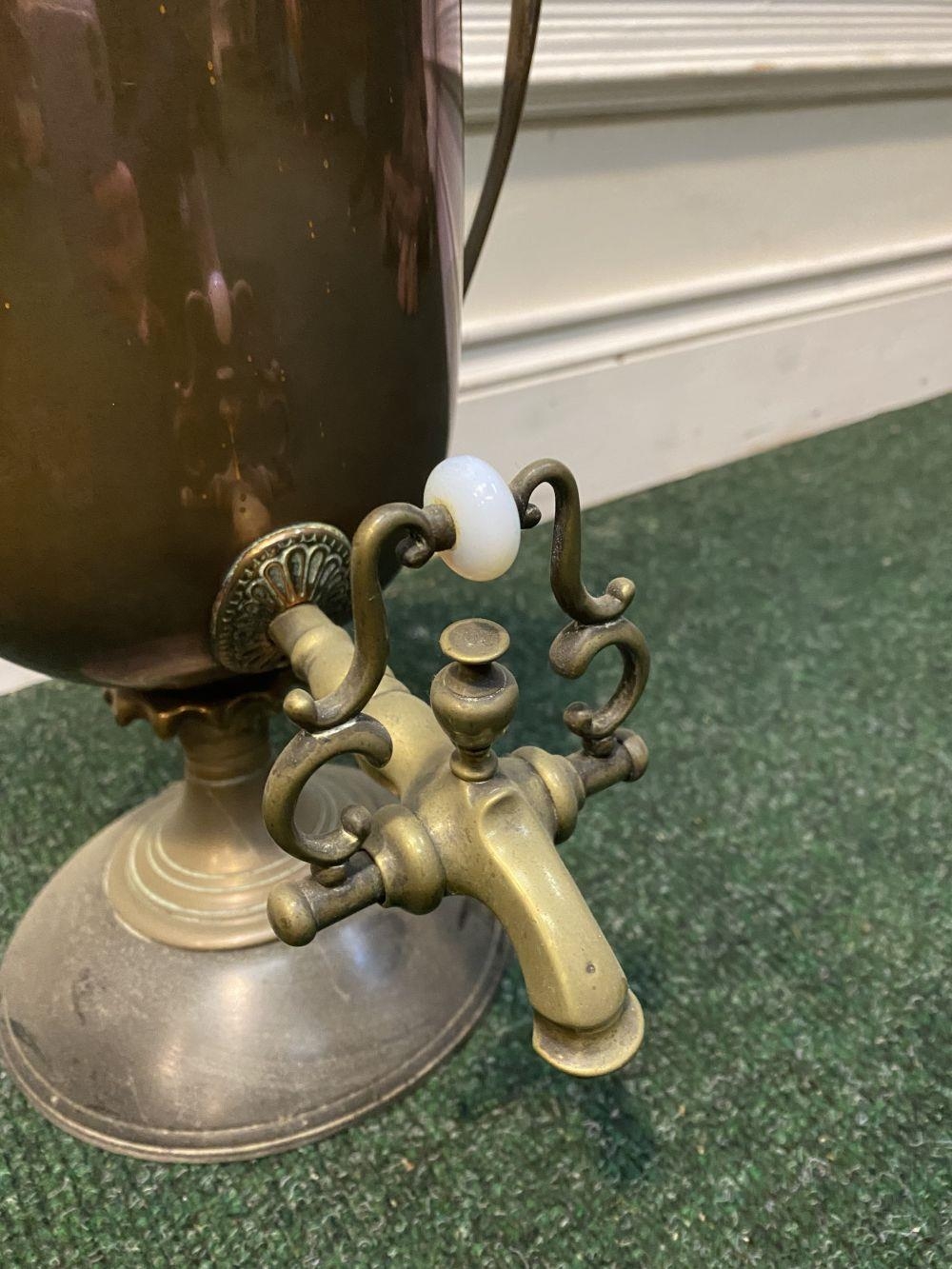 AN ANTIQUE WILLIAM C. BURTON COPPER SAMOVAR, urn form with shaped engraved handles, decorative tap, raised on circular base. Marked 'William S. Burton, 29 Oxford Street, London'. Dimensions: 53cm high x 32cm wide approx