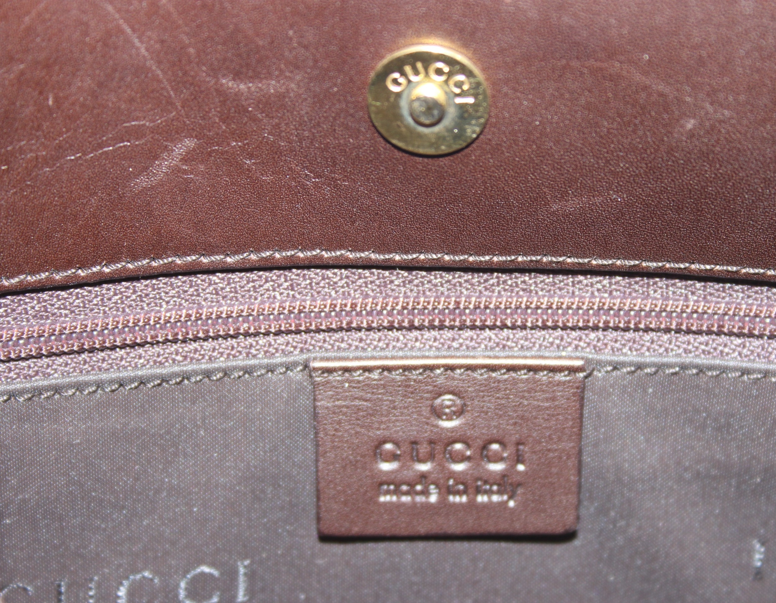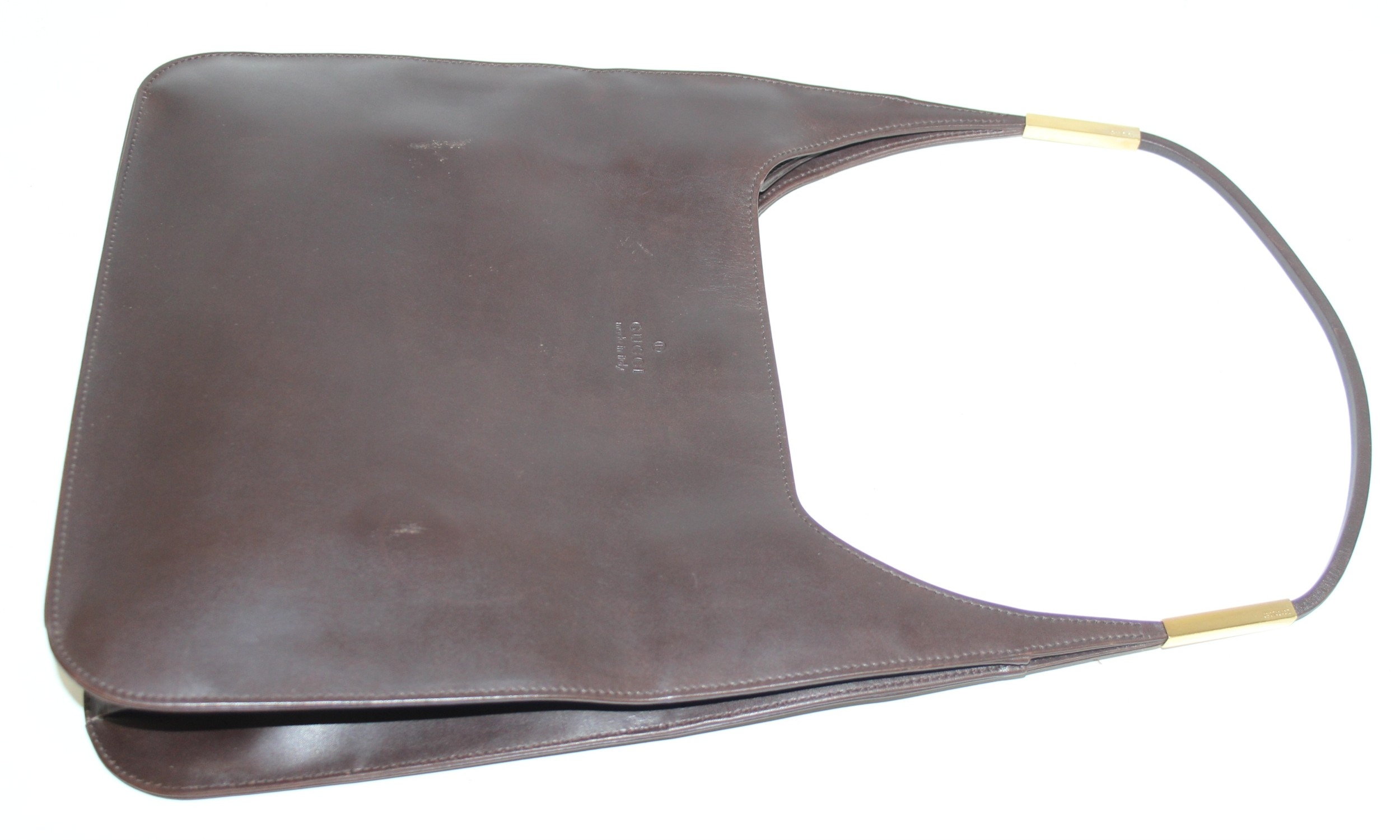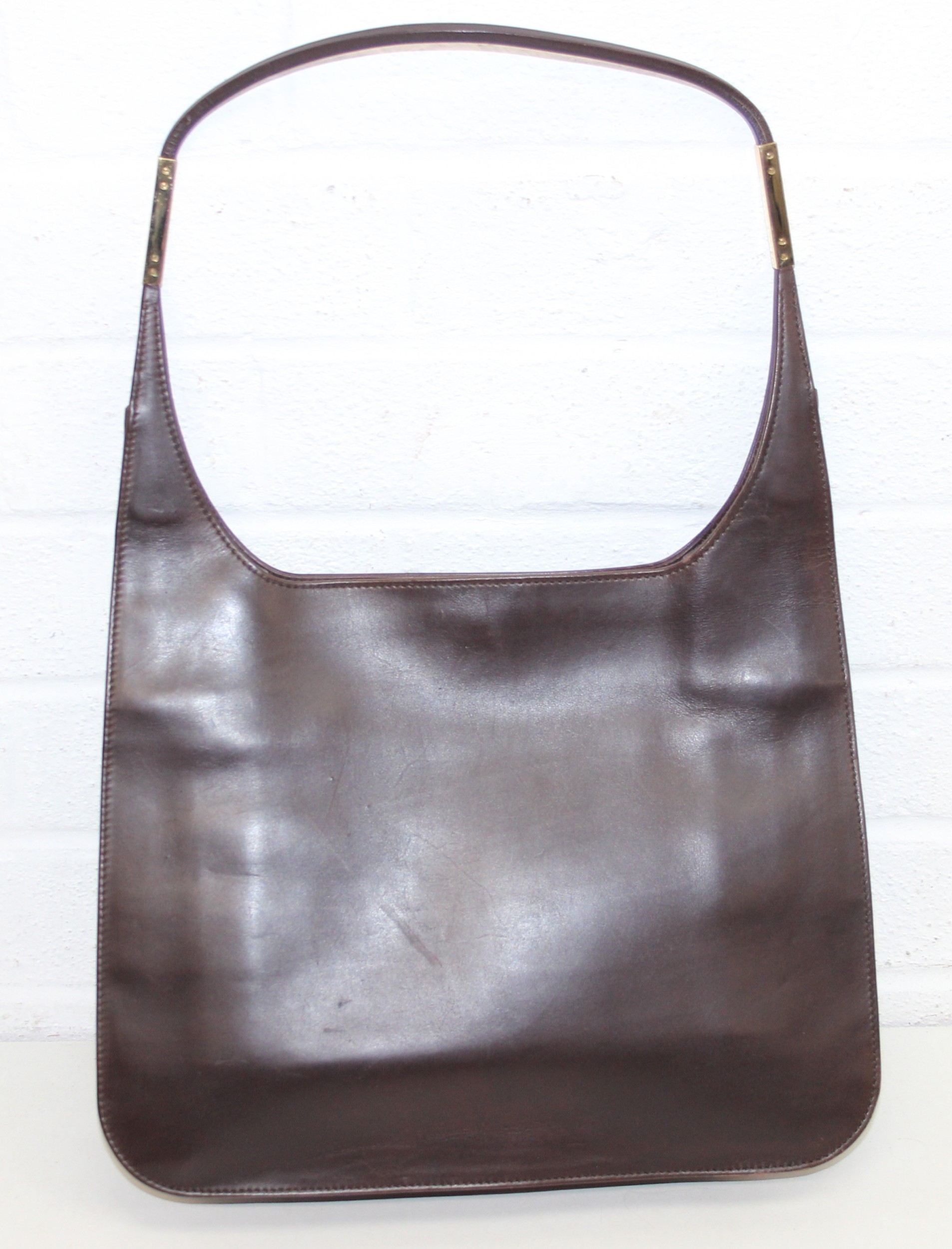 Vintage brown-leather Gucci shoulder/handbag, 32cm W x 47cm H incl handle