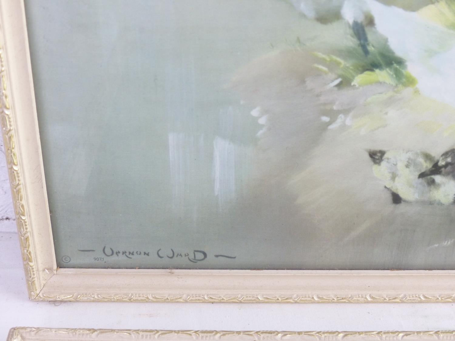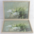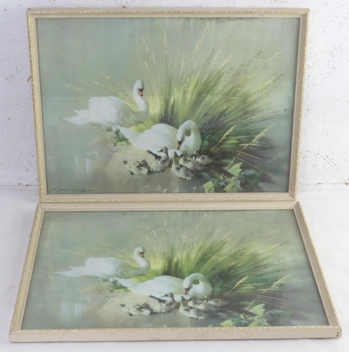 A pair of vintage Vernon Ward prints of swans. 41x31cm.