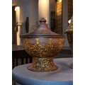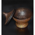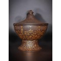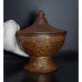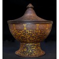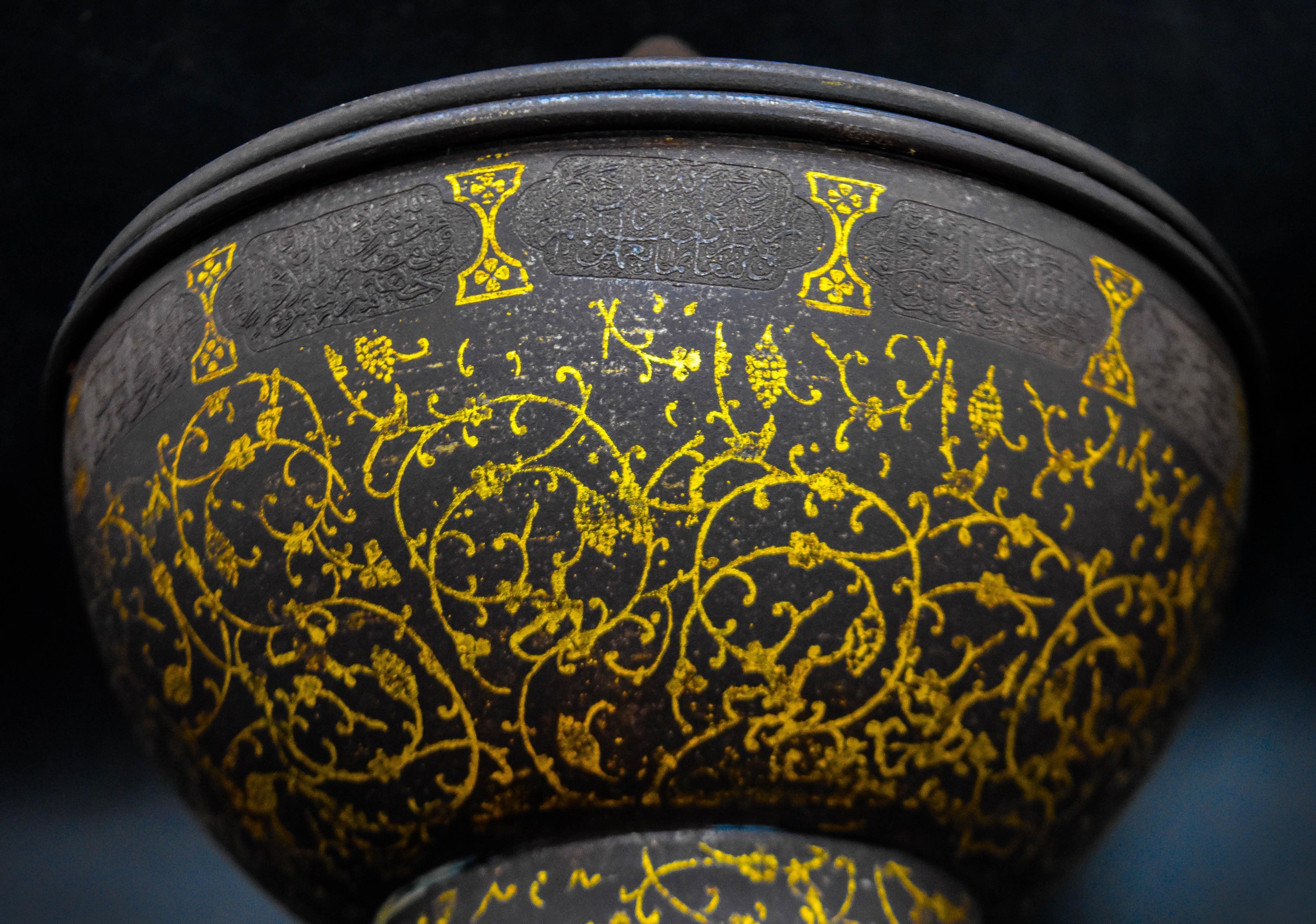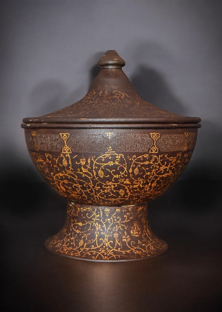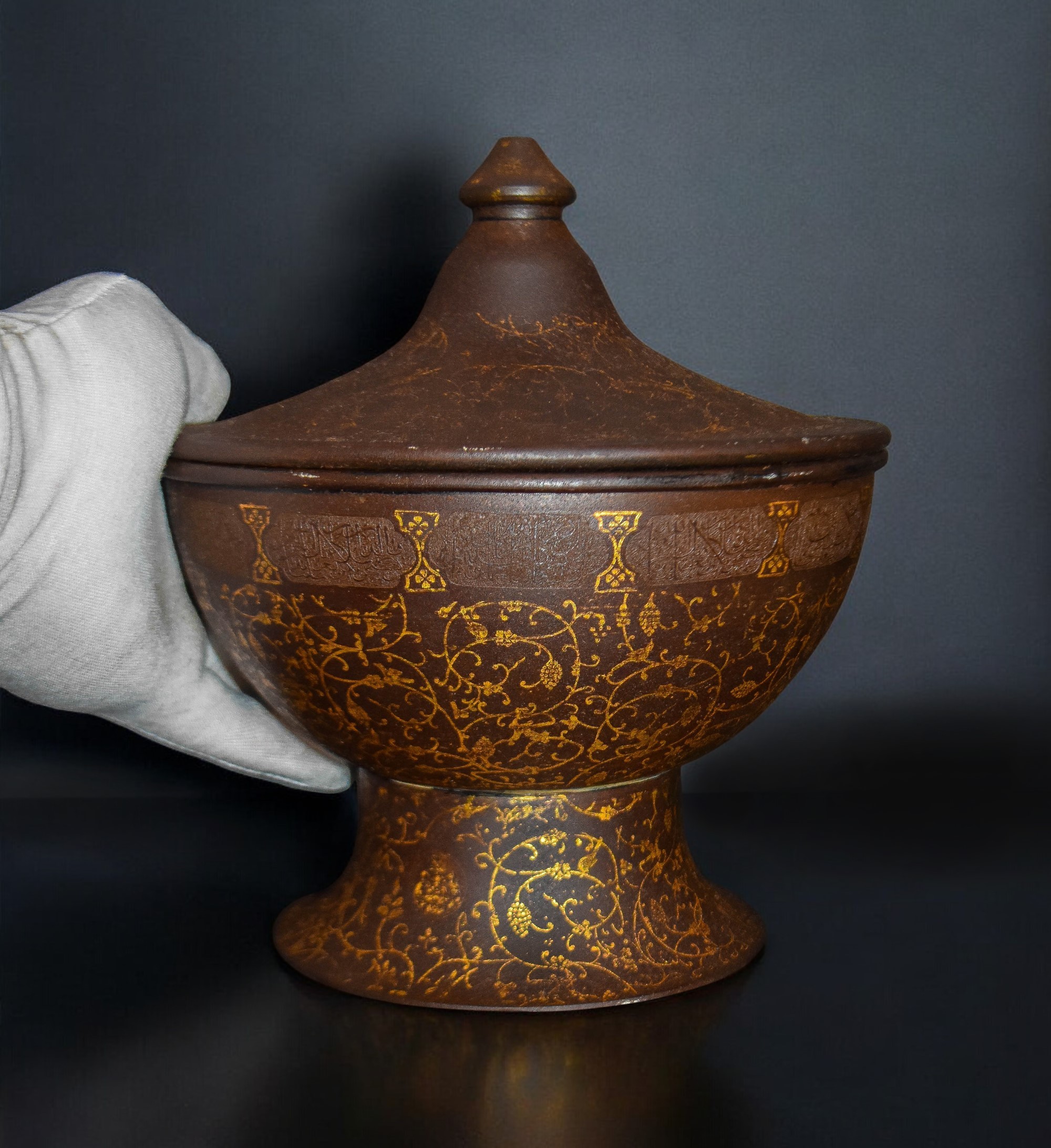 Islamic Qajar/Mughal Lidded Bowl with Gold Kuftgari Inlay and Islamic Calligraphic Ornamentation, Islamic Eastern