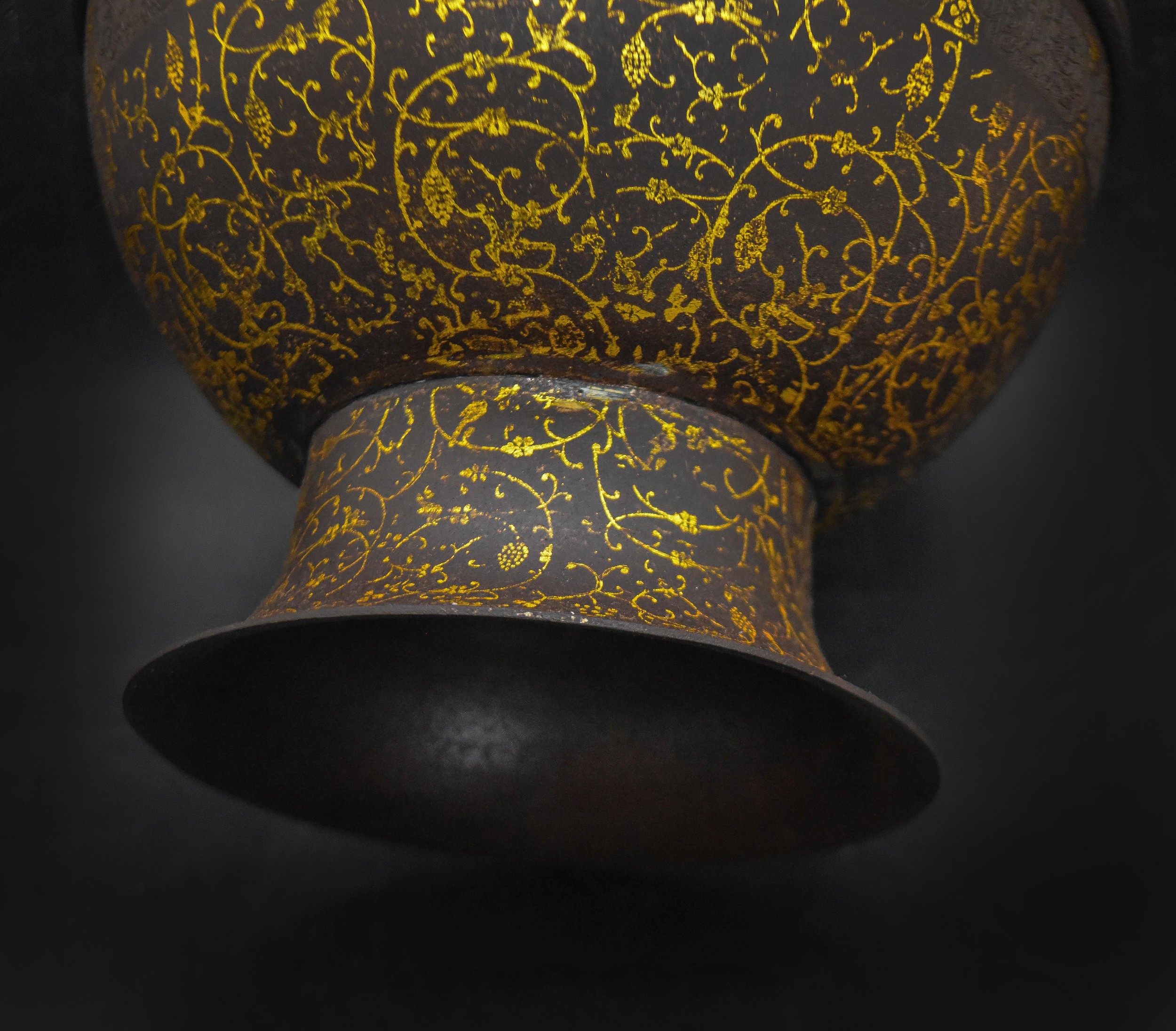 The harmonious blend of Persian and Mughal artistic influences reflects the opulence and refinement of courtly craftsmanship of the period, making it not only a functional vessel but also a symbol of spiritual and aesthetic devotion.