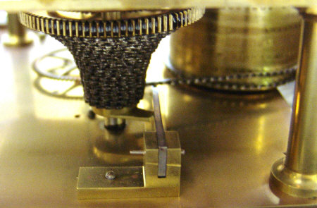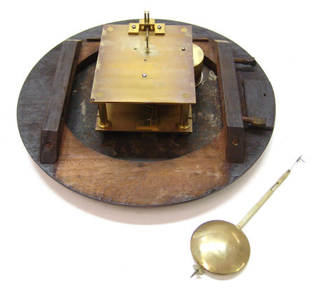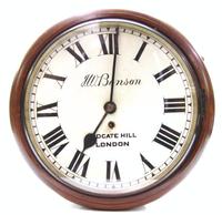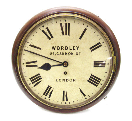 Mahogany cased single fusée wall clock, the circular dial painted with black Roman numerals and signed Wordley, London, 37cm diameter