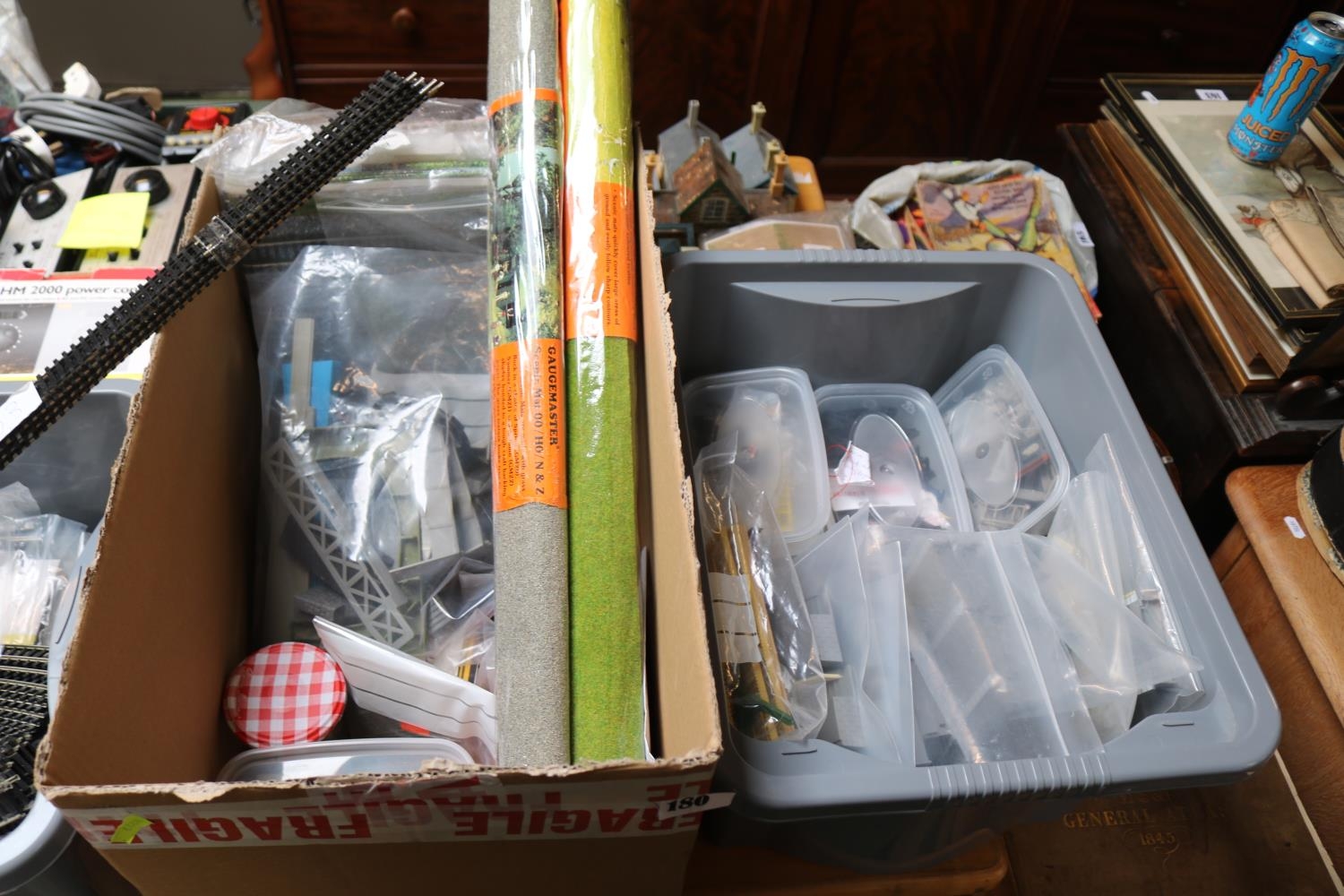 2 Boxes of assorted Train building materials to include Scenic Mat, Signals etc