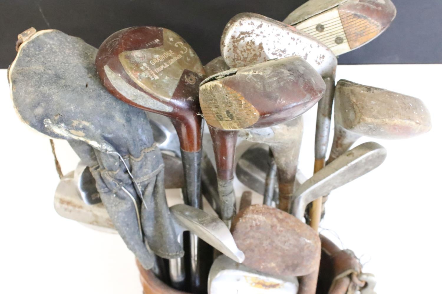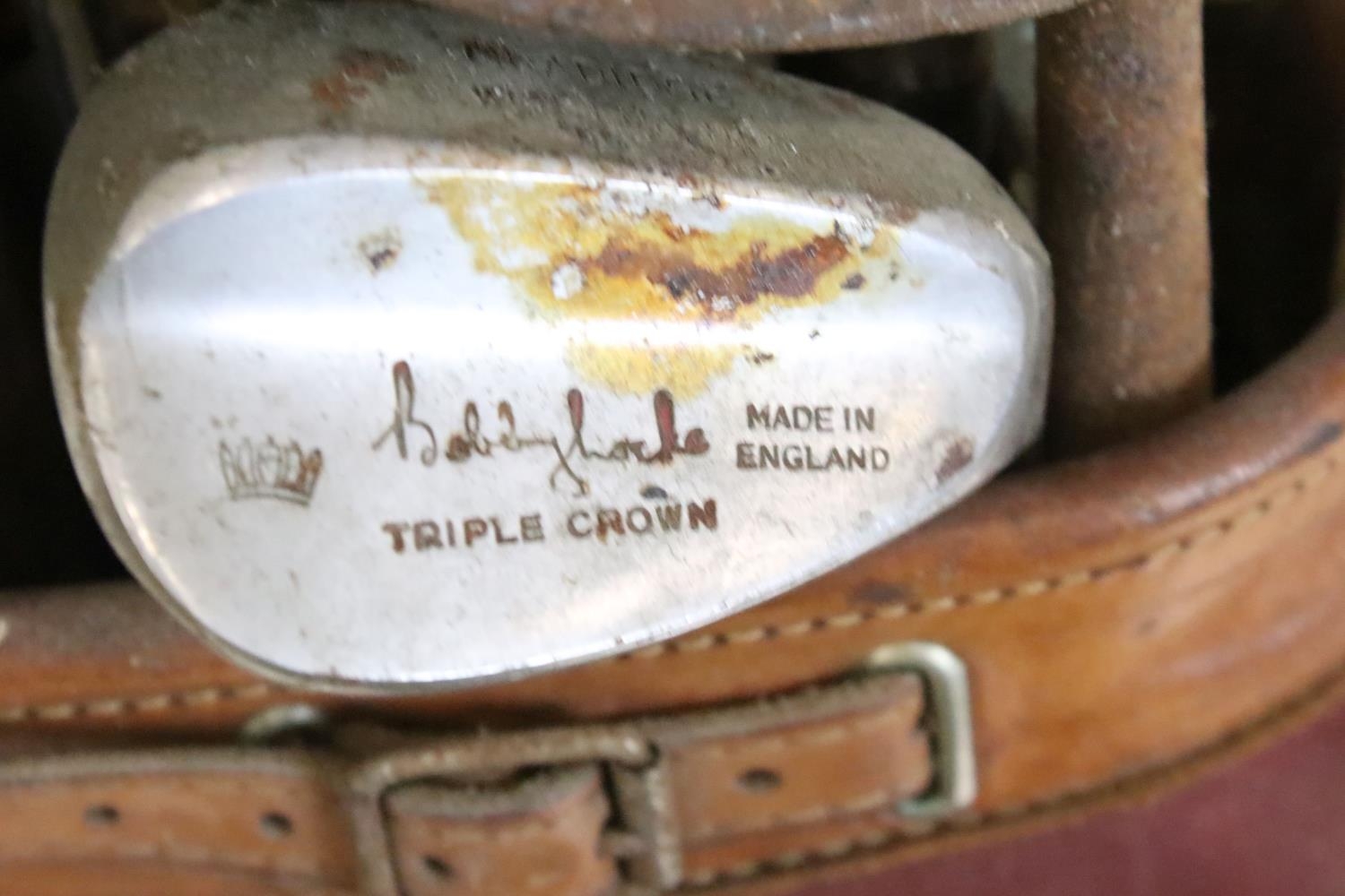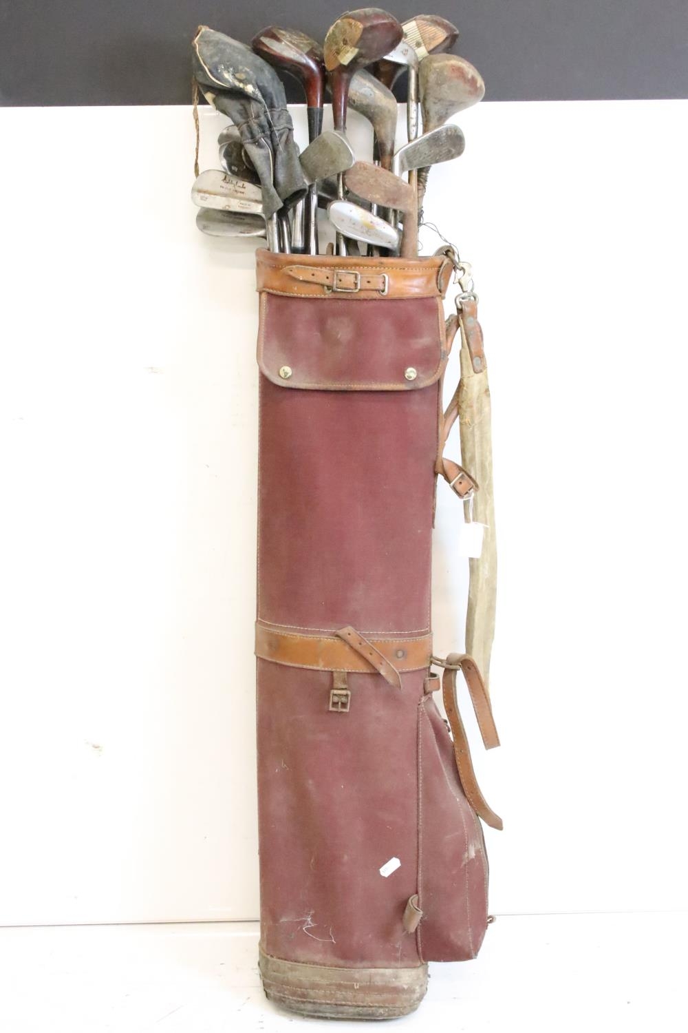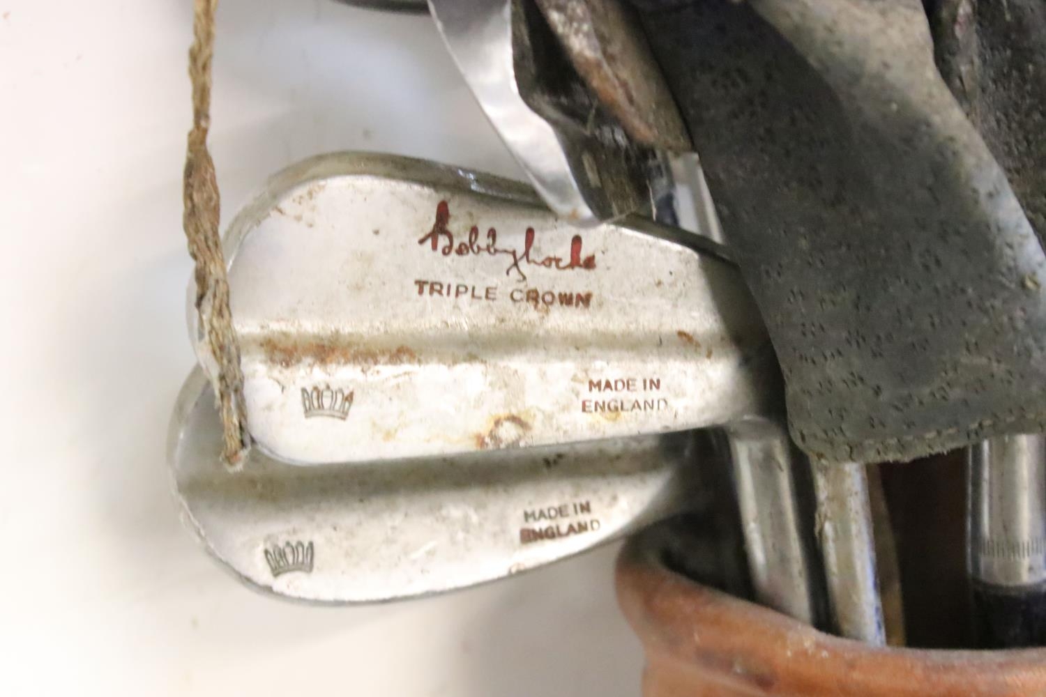Collection of golf clubs, within a canvas and leather bag, to include many Bobby Locke Triple Crown examples