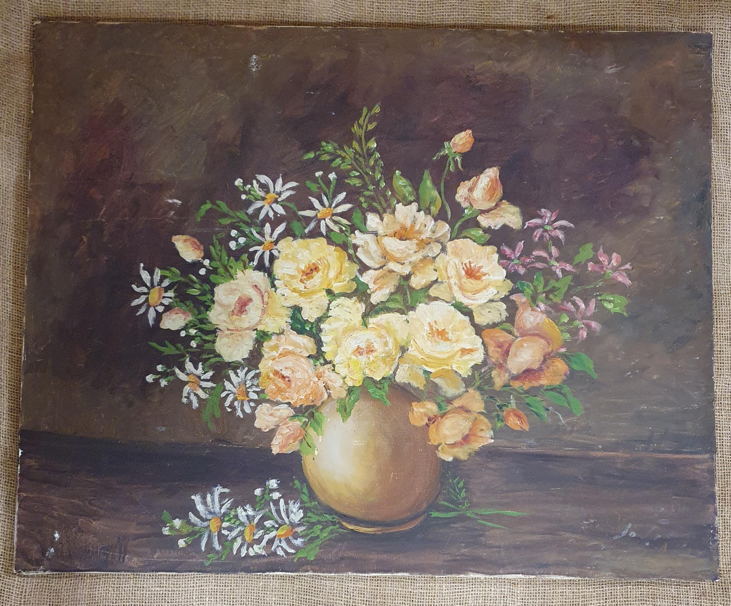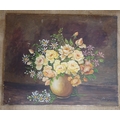 A 20th Century Oil on Canvas still life of roses in a vase. No apparent signature. 65 x 81 cm approx.