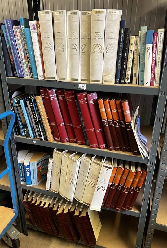 BOOKS TO INCLUDE PURNELLS NEW ENGLISH ENCYCLOPEDIA , WORLD OF WILDLIFE, ANIMAL LIFE ETC OVER ONE SHELVING UNIT
