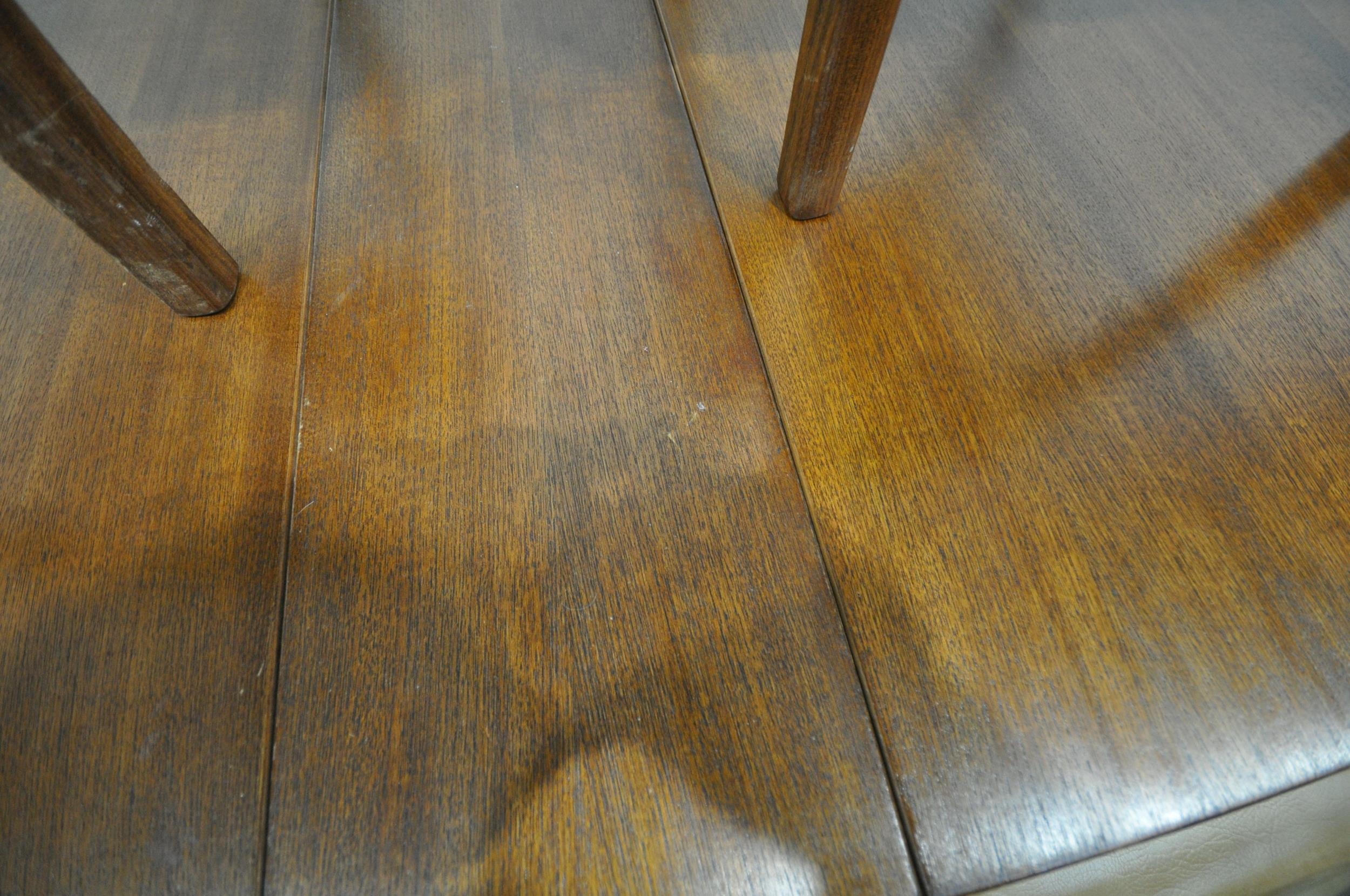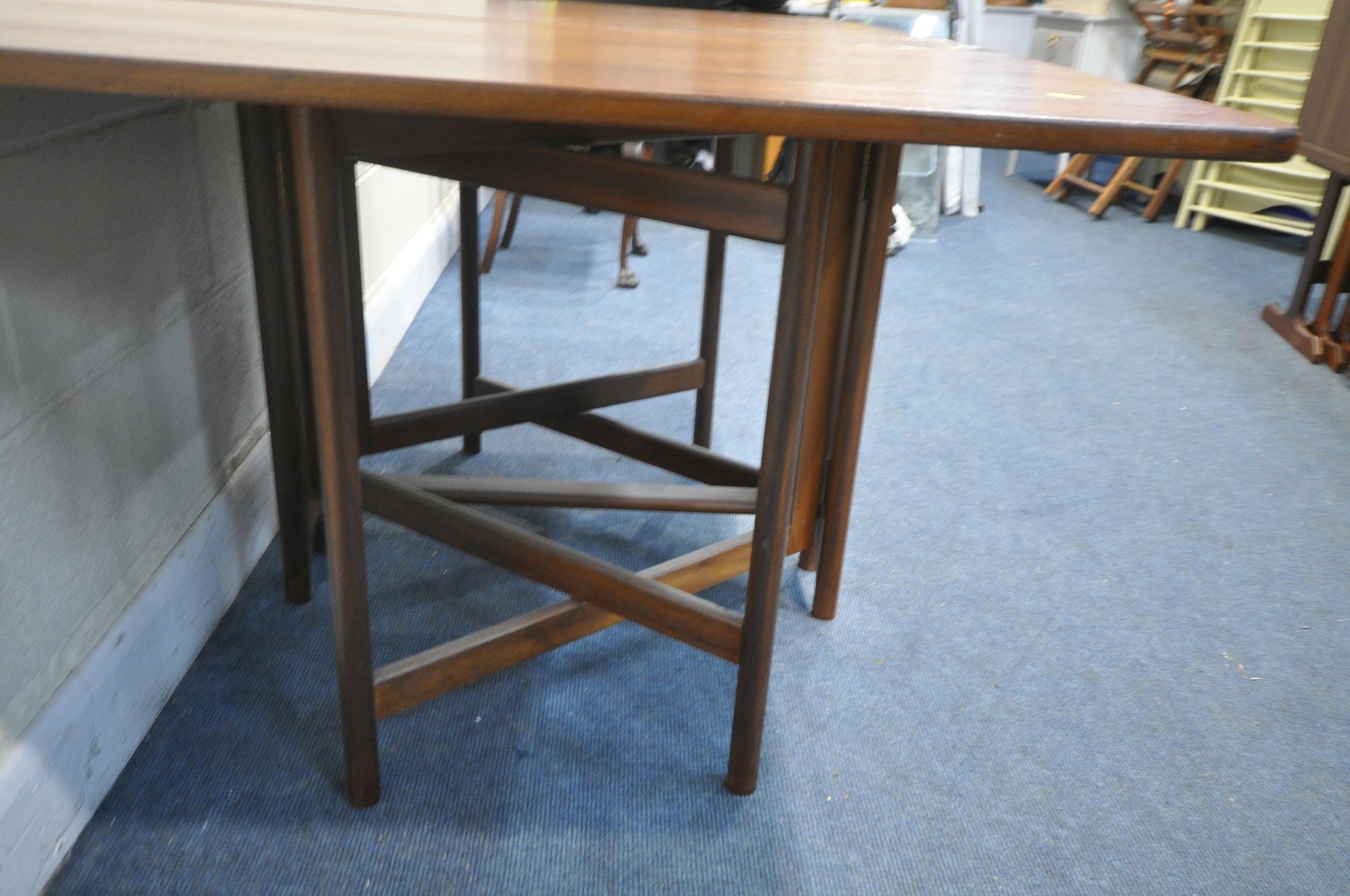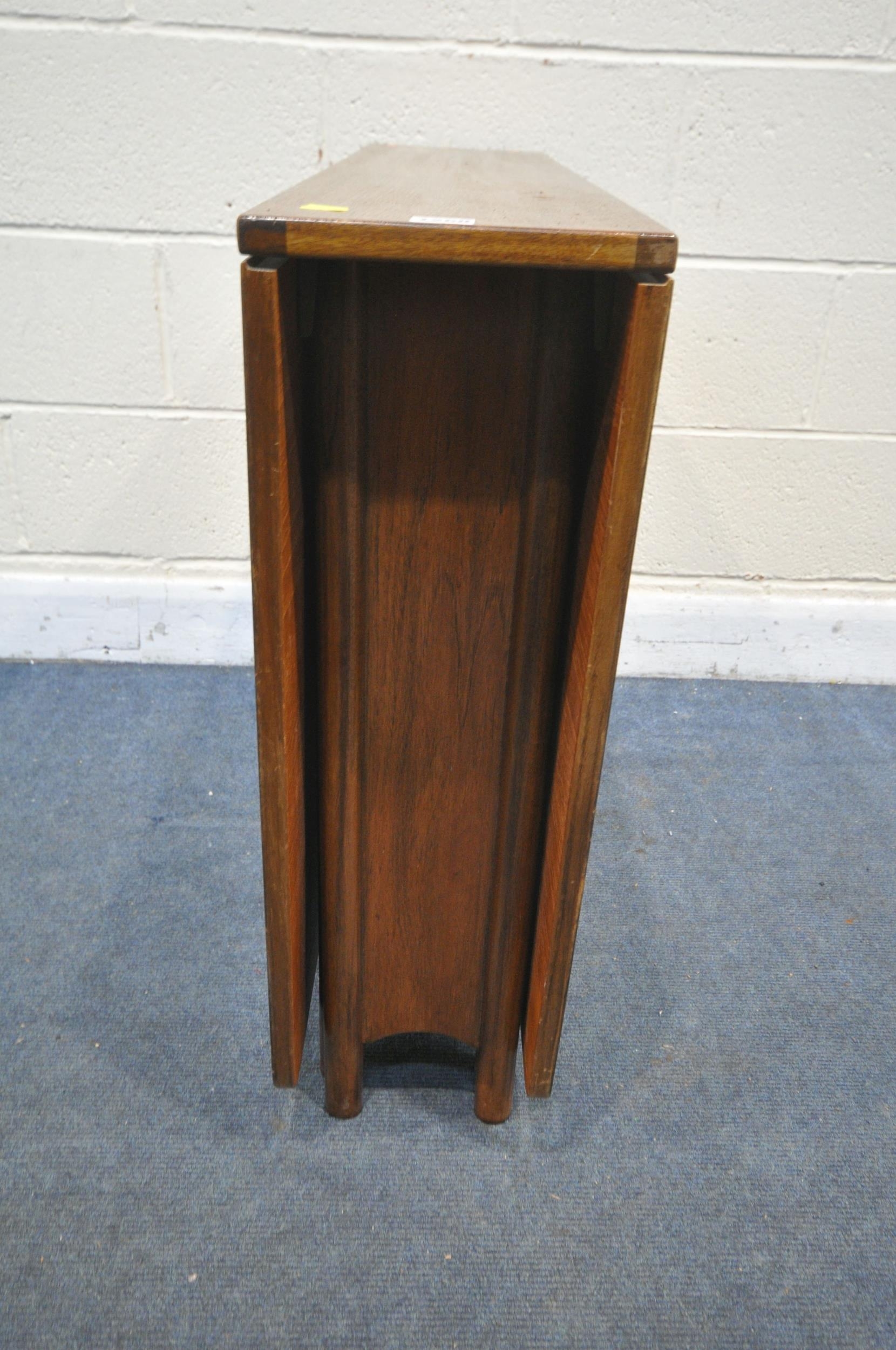 A MID CENTURY G PLAN TEAK RECTANGULAR DROP LEAF DINING TABLE, open length 149cm, closed length 22cm x depth 92cm x height 74cm, along with a set of six G plan dining chairs (condition - signs of usage to table and seat pads, and chair legs) (7)