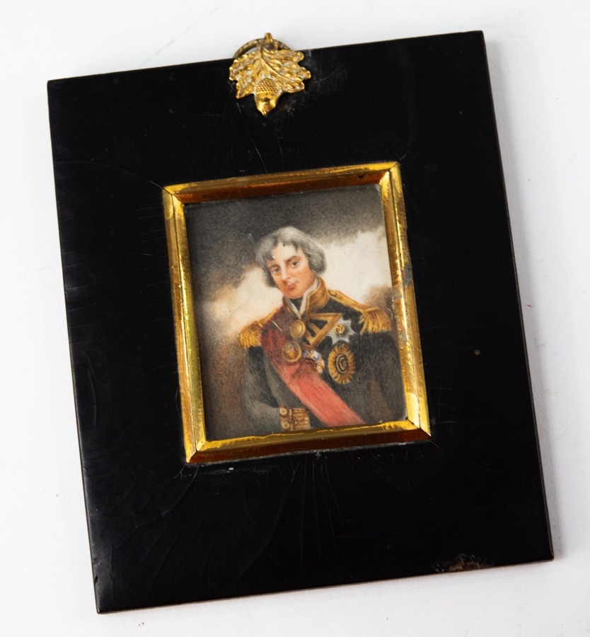 UNATTRIBUTED, PORTRAIT MINIATURE OF LORD NELSON, 2 ¼” X 1 ¾” (5.7cm x 4.4cm), in a gilt mounted rectangular papier mache frame