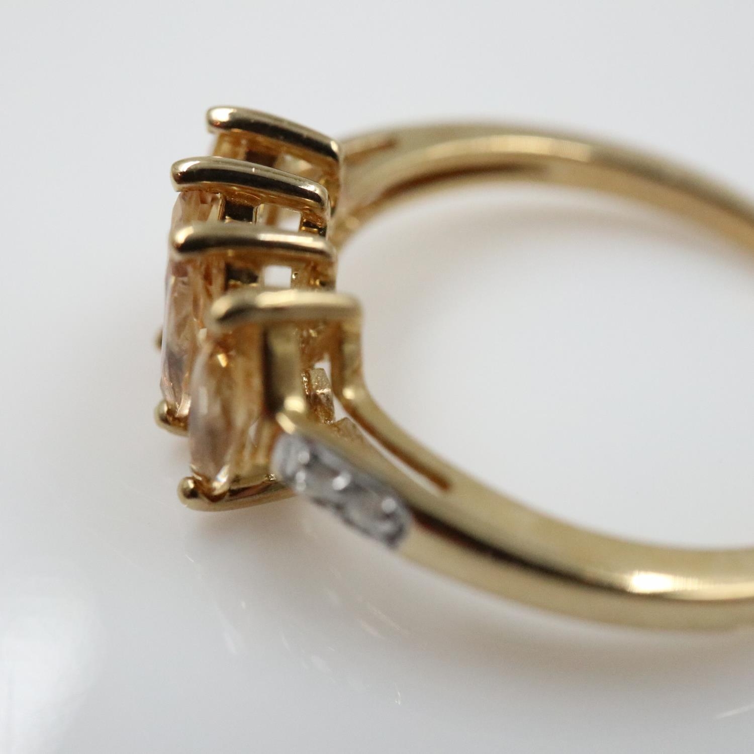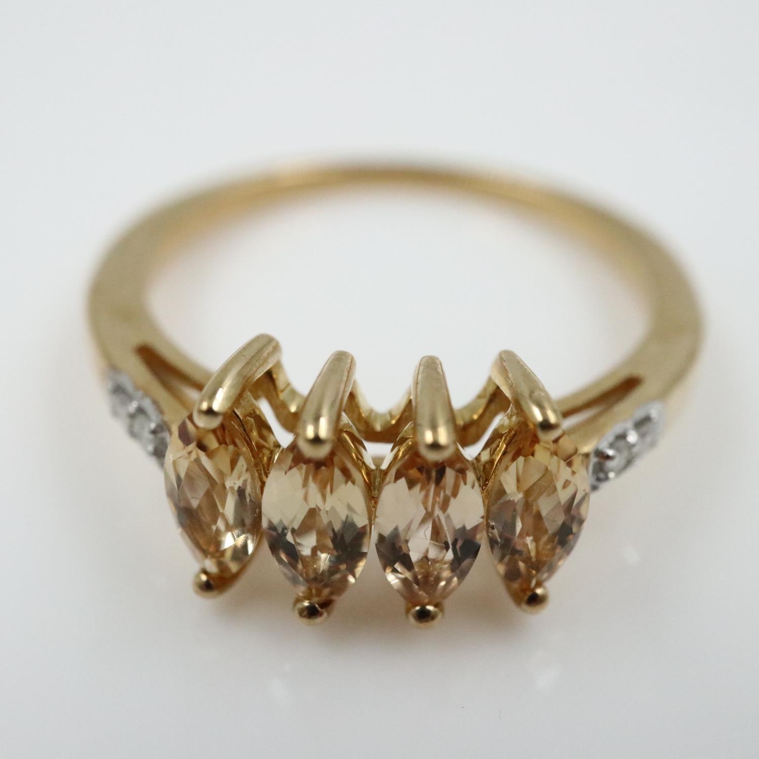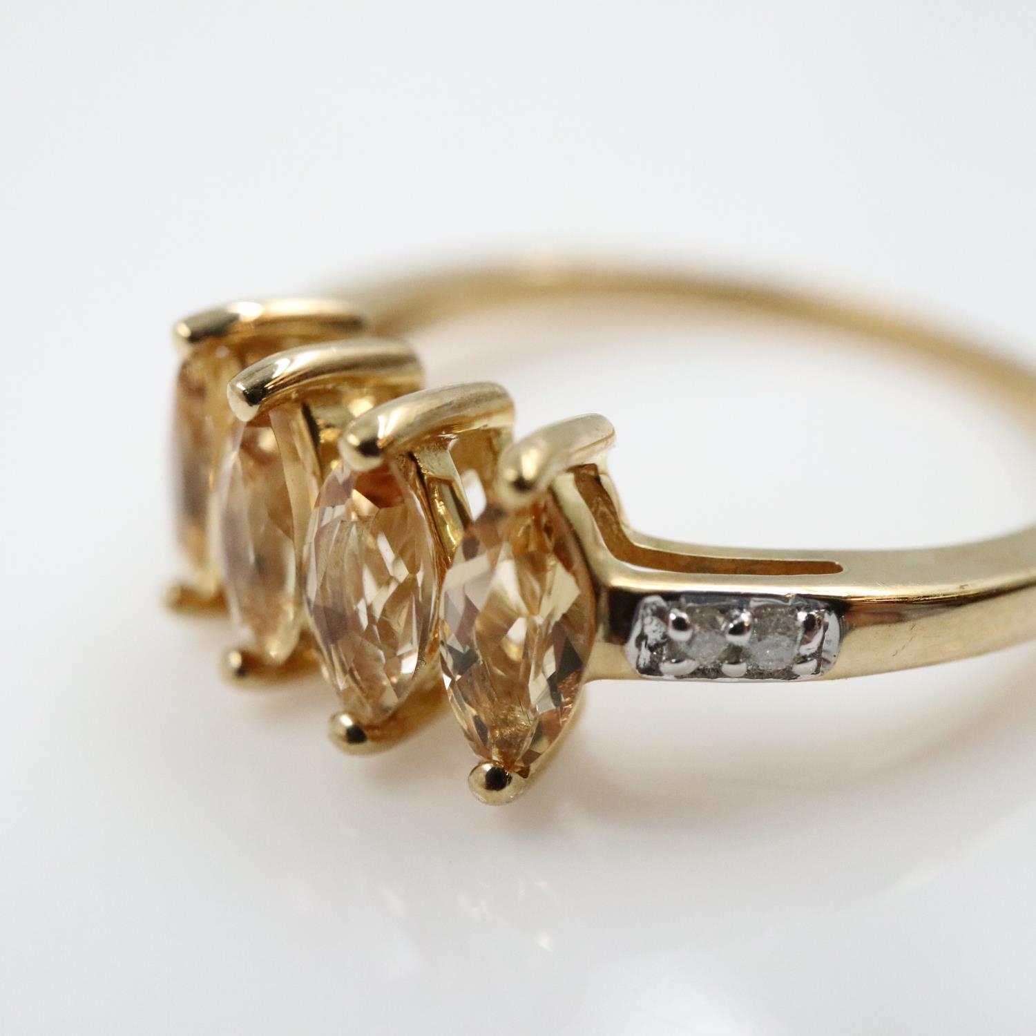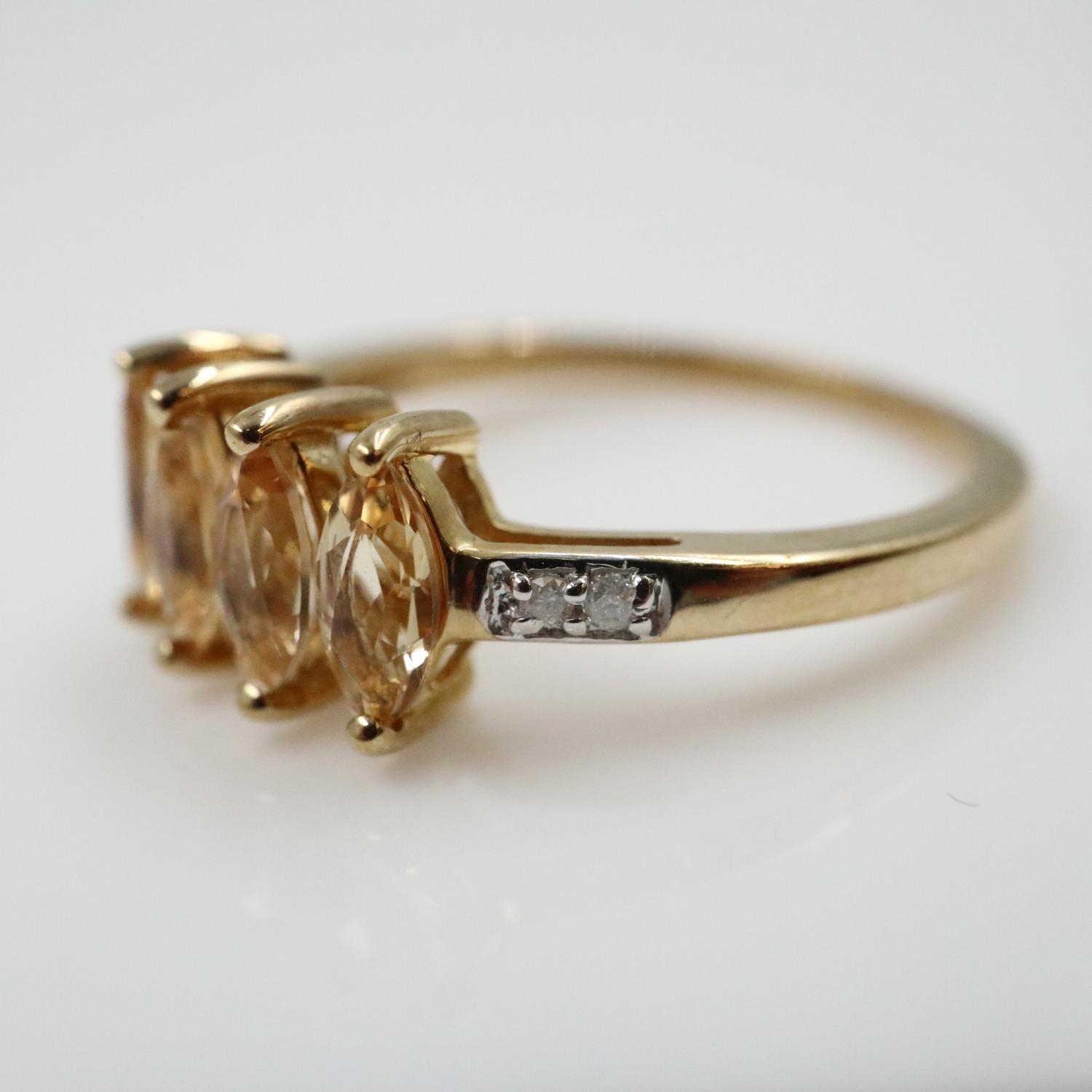 9ct gold ring set with marquise cut Citrine and diamond, size N/O, 2.5g. UK P&P Group 0 (£7+VAT for the first lot and £1+VAT for subsequent lots)