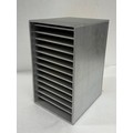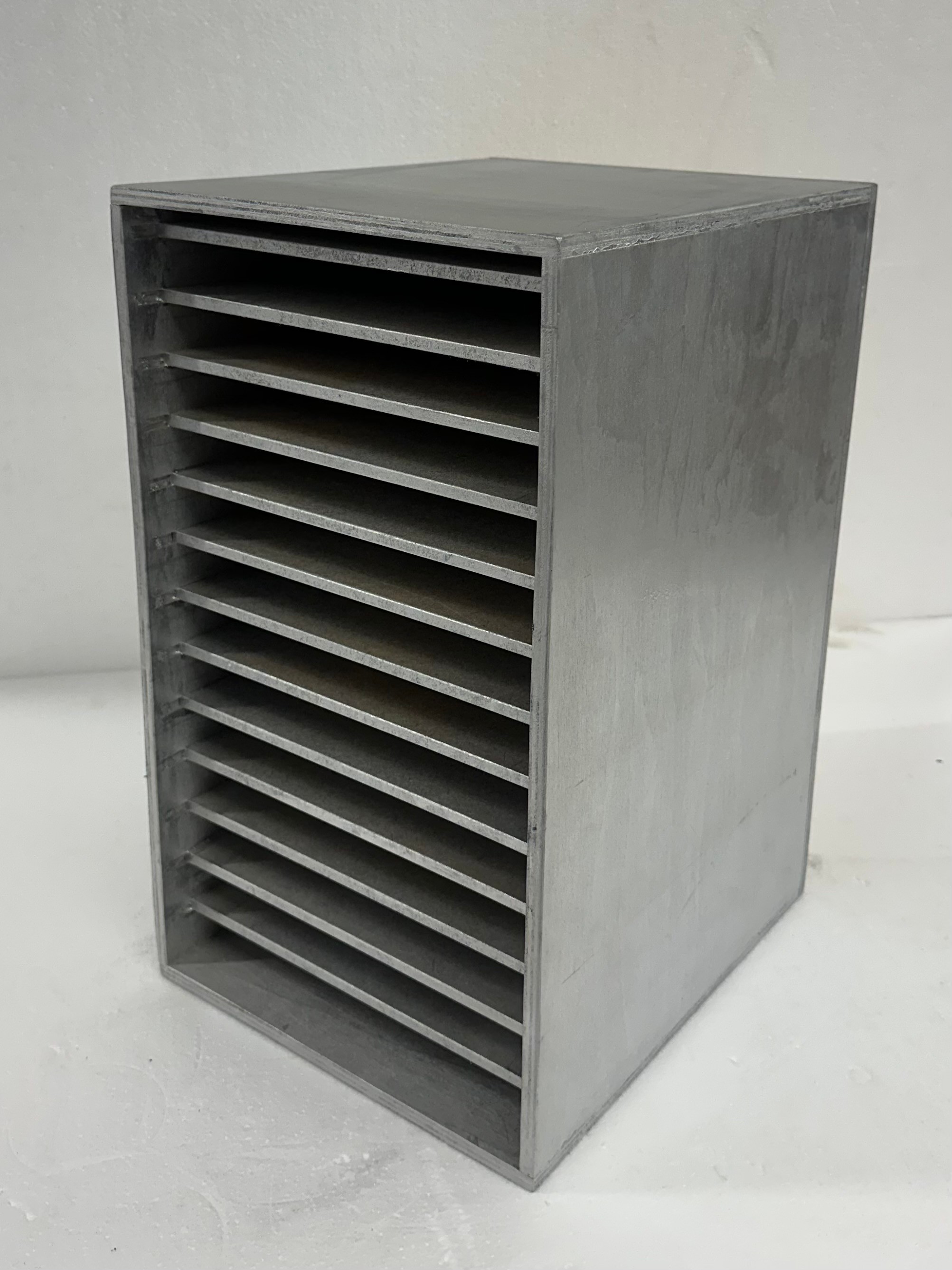 Lap storage box with fourteen shelves
