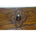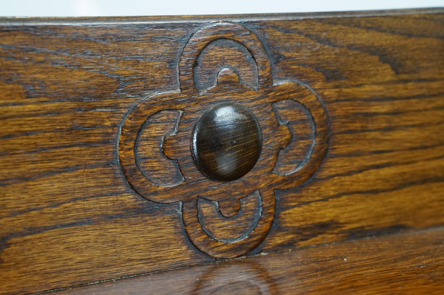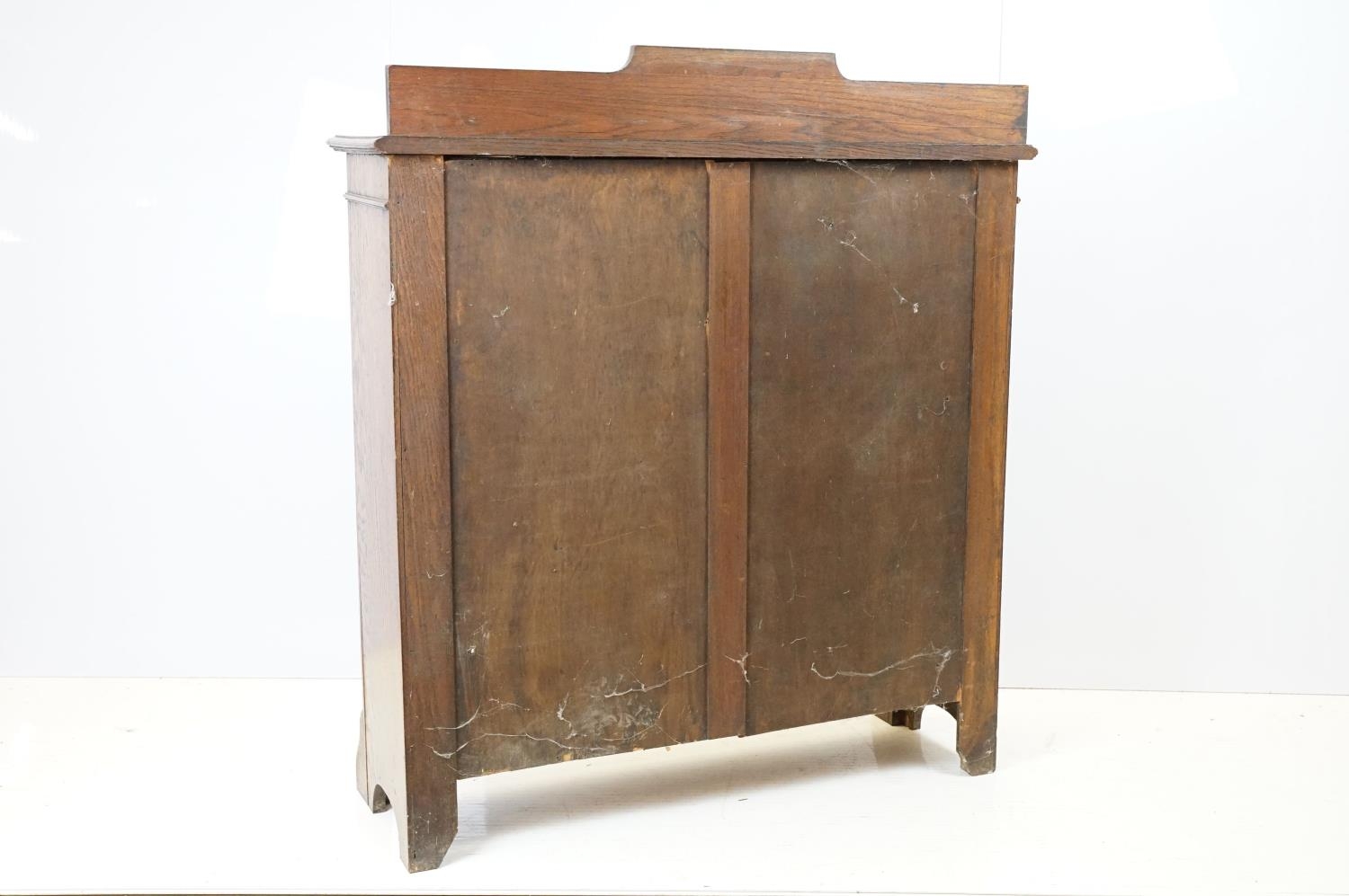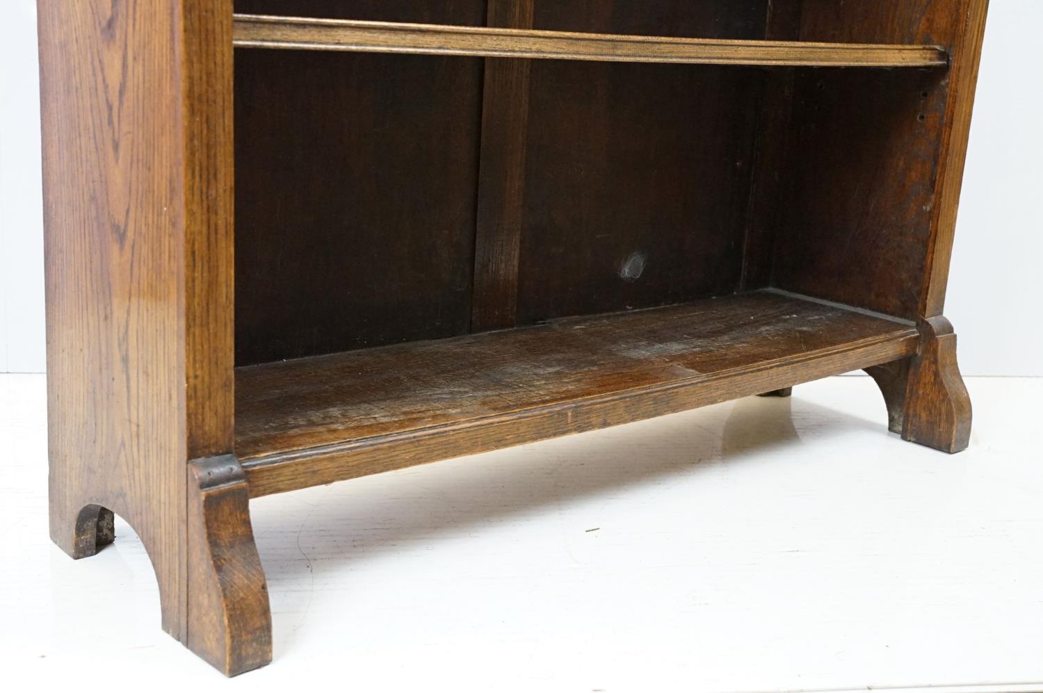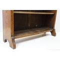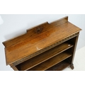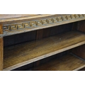 Oak three shelf bookcase with Greek key frieze design, 102cm high x 92cm wide x 26cm deep