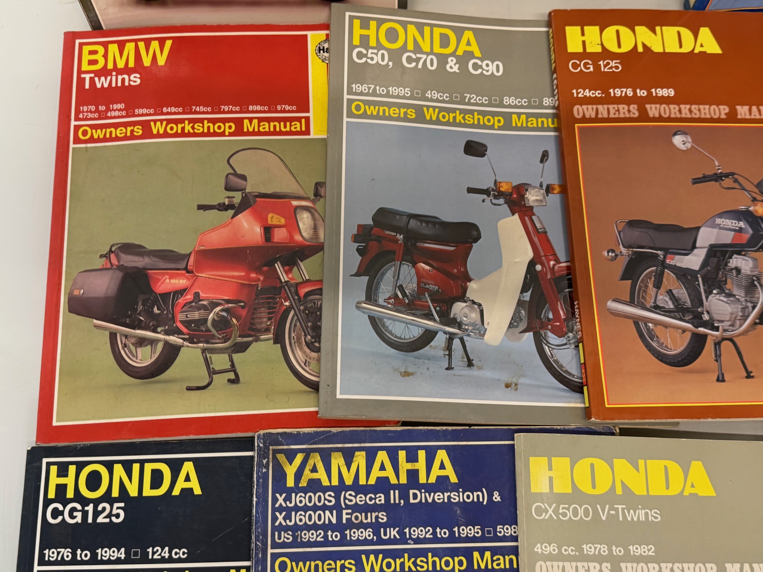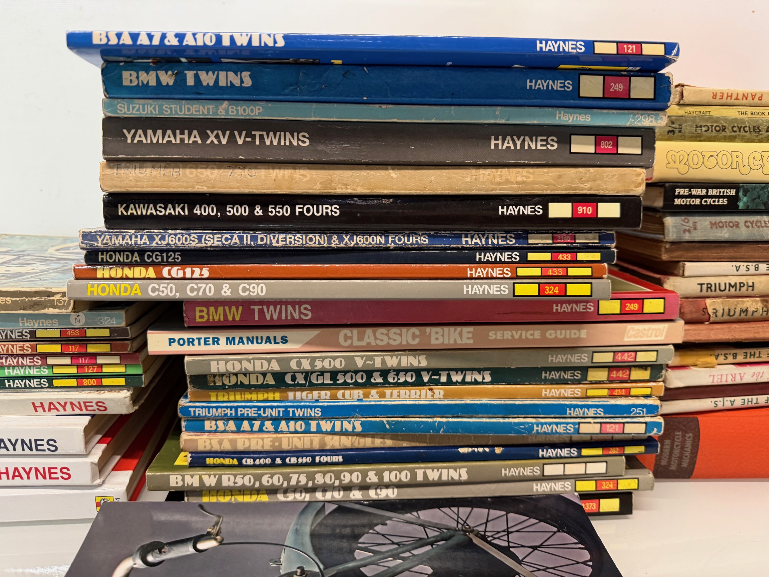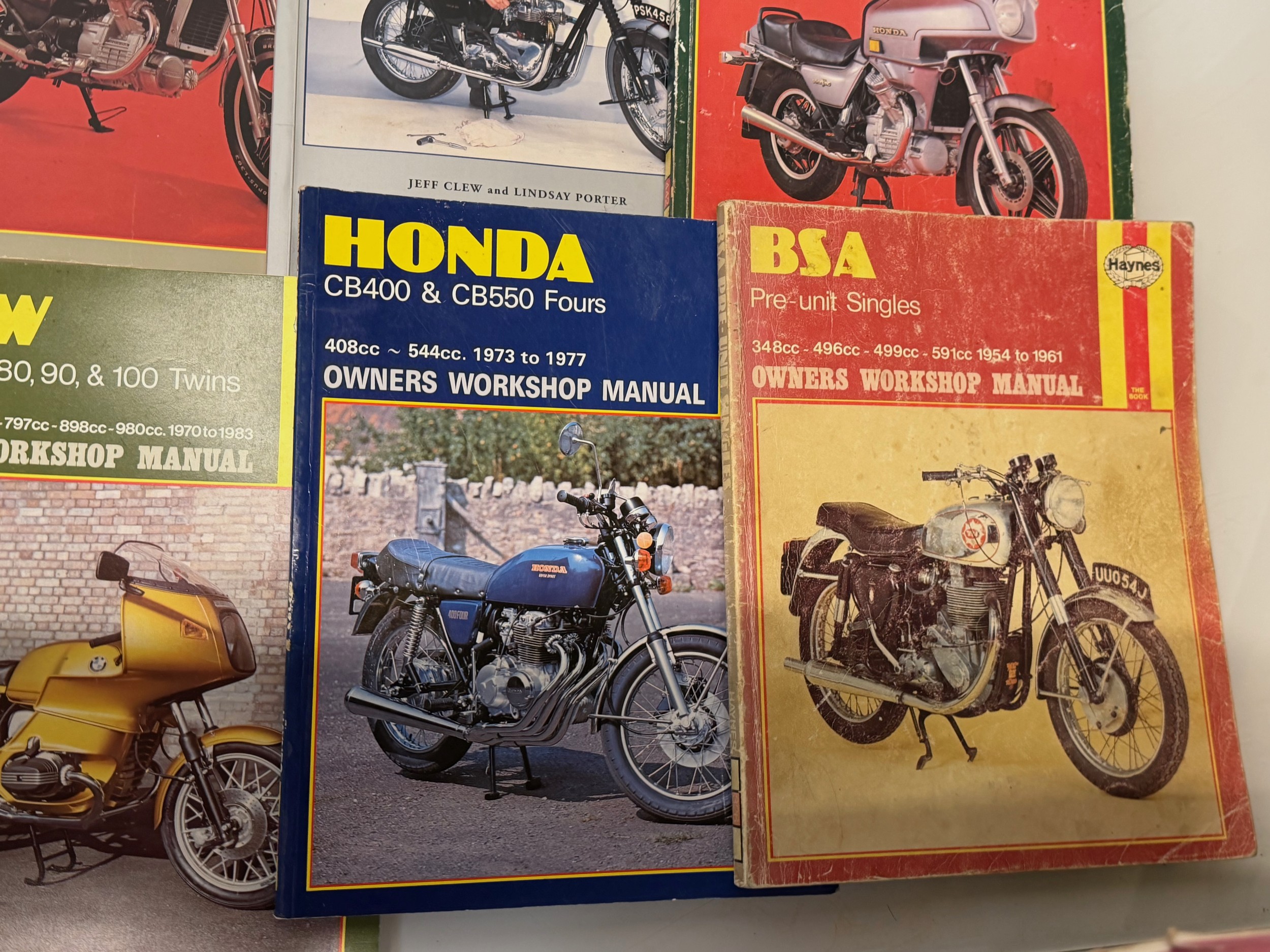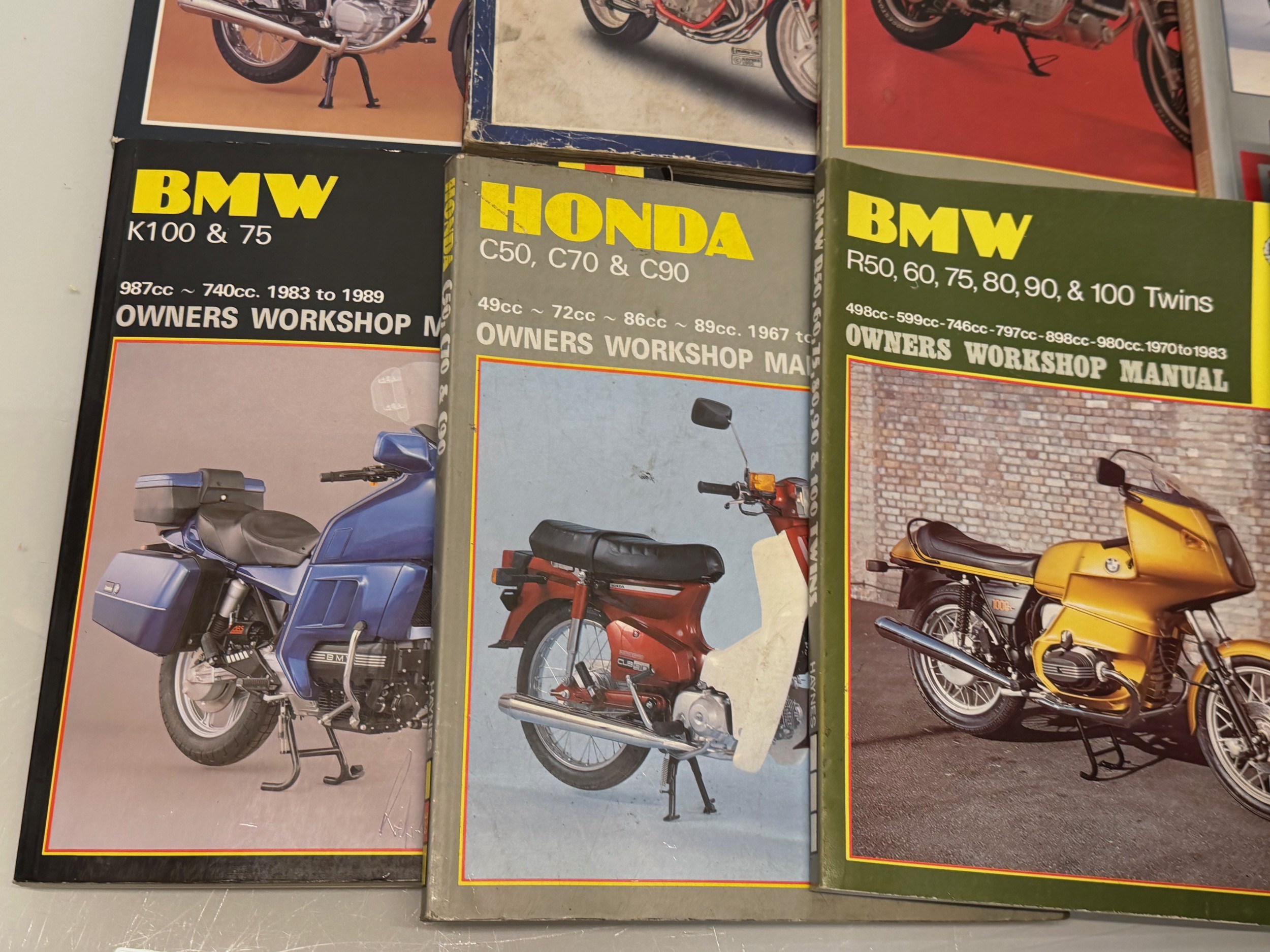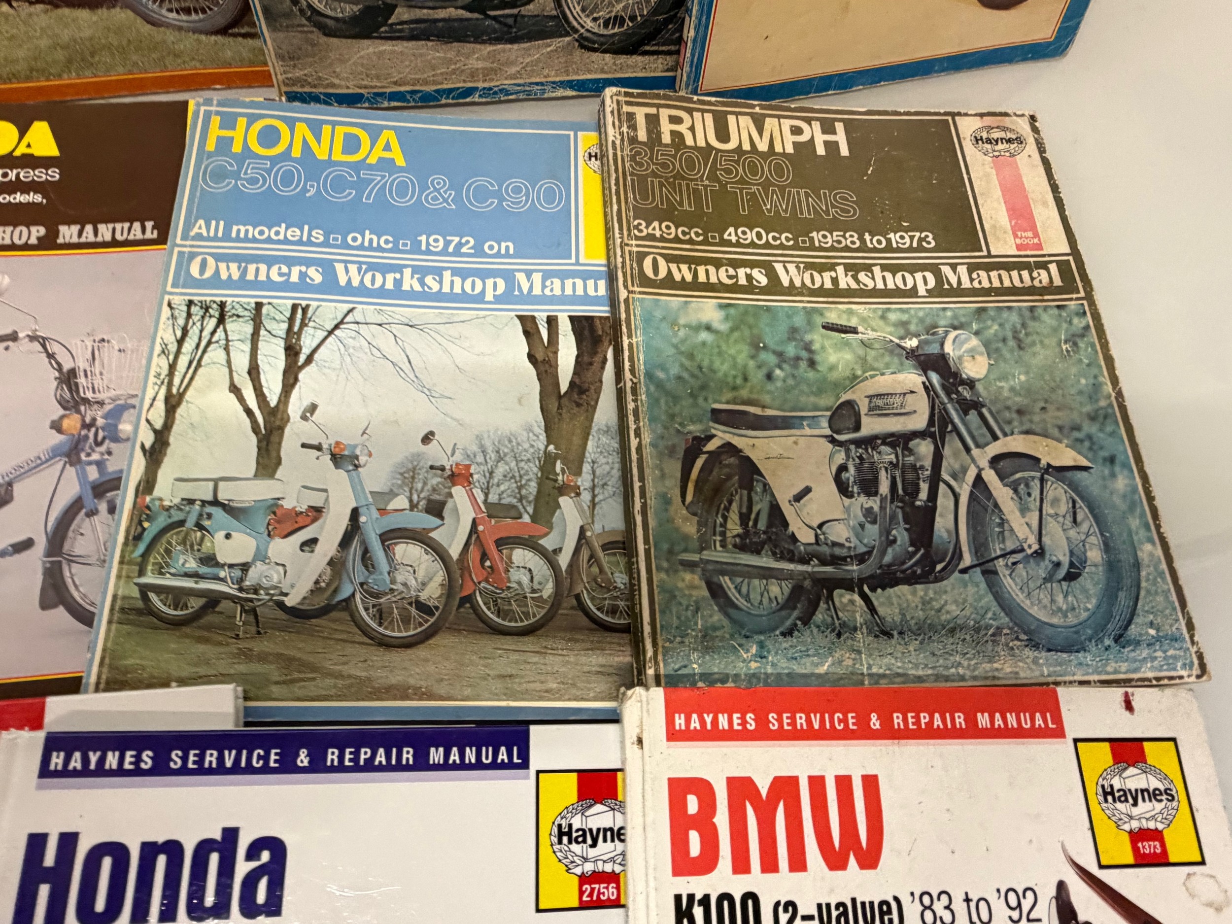 Automobilia, workshop equipment, a collection of motorcycle repair manuals, Haynes etc, 47 in all.