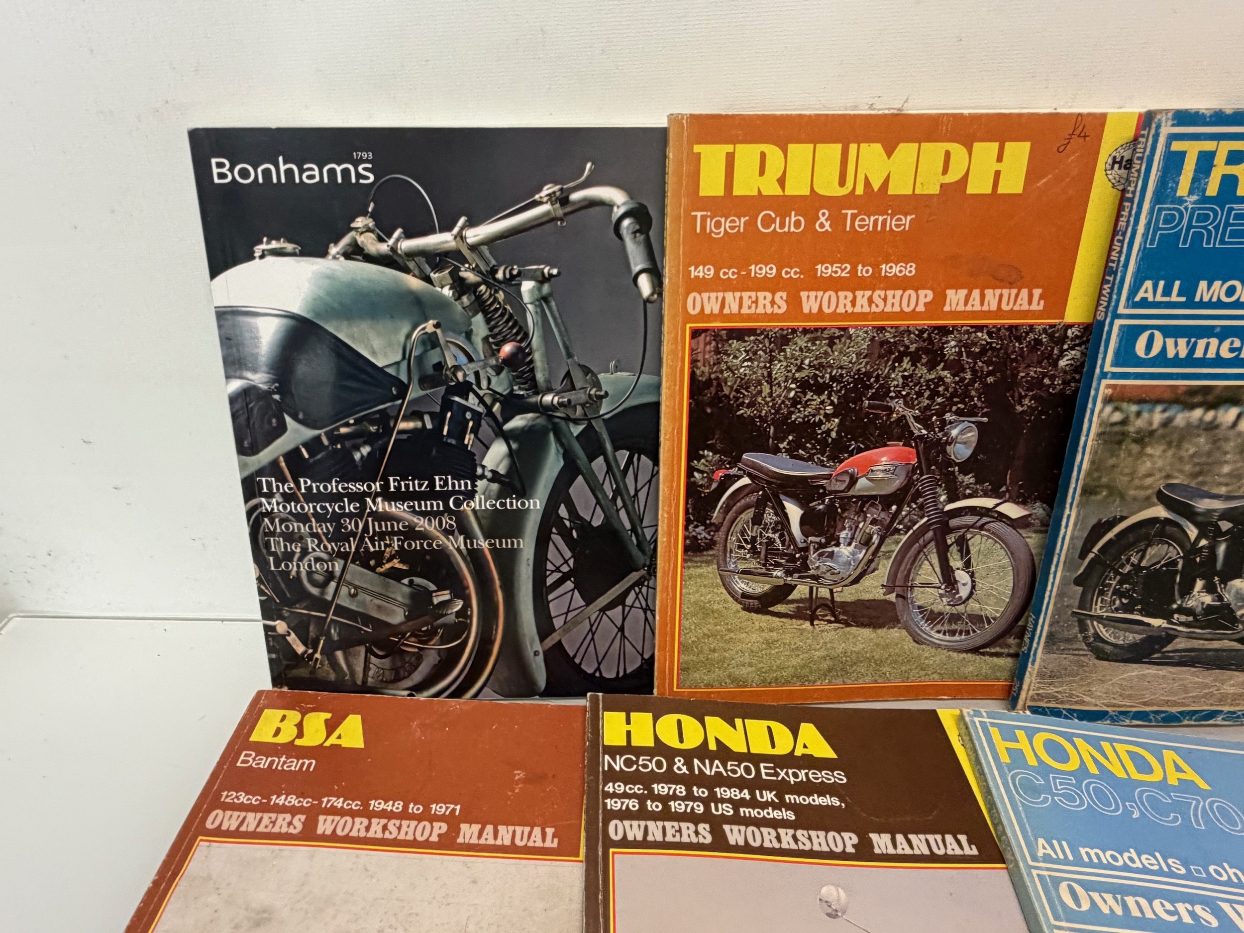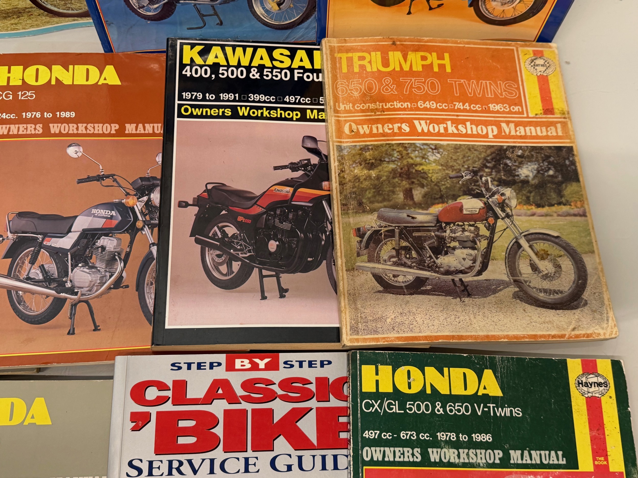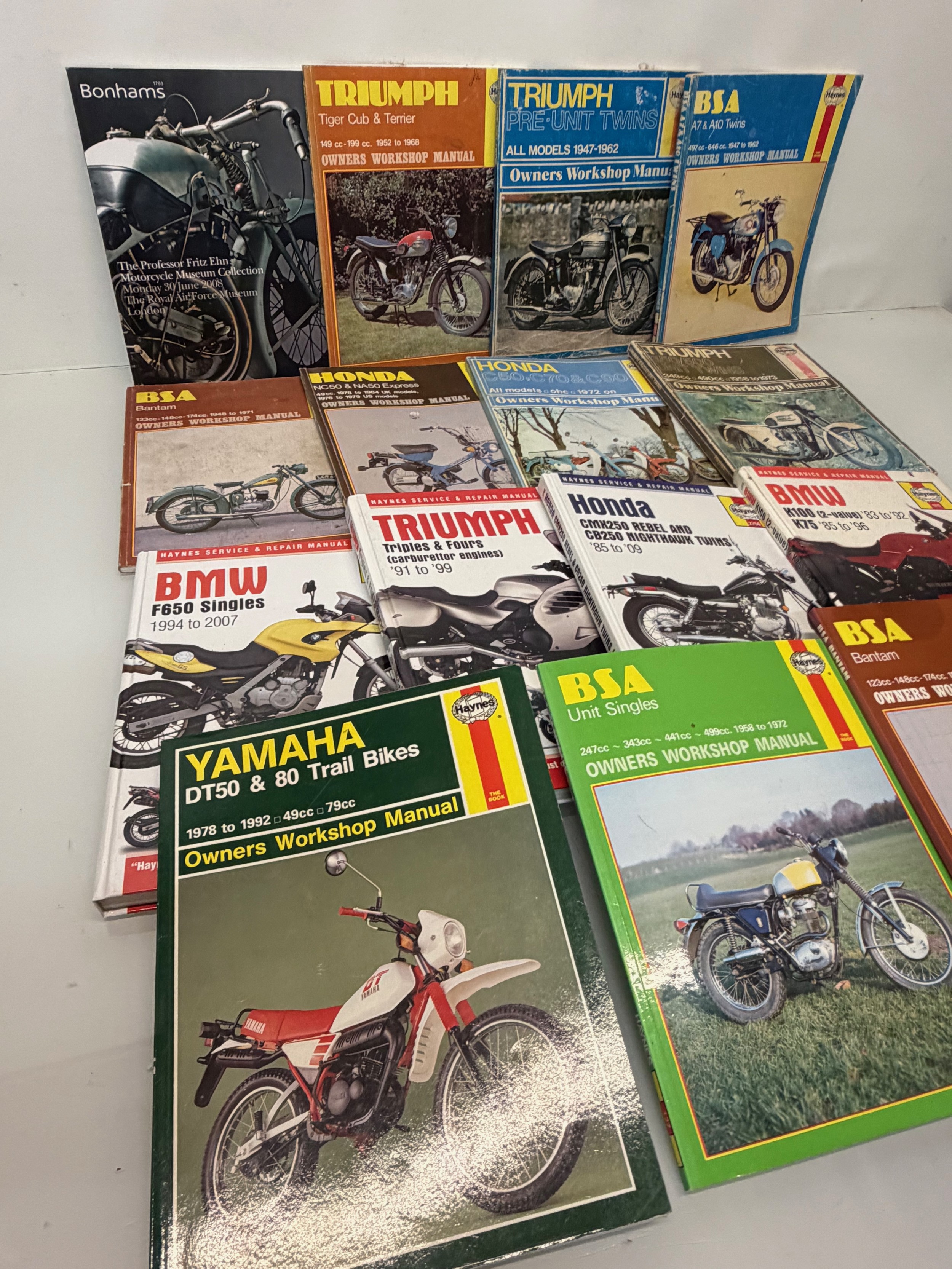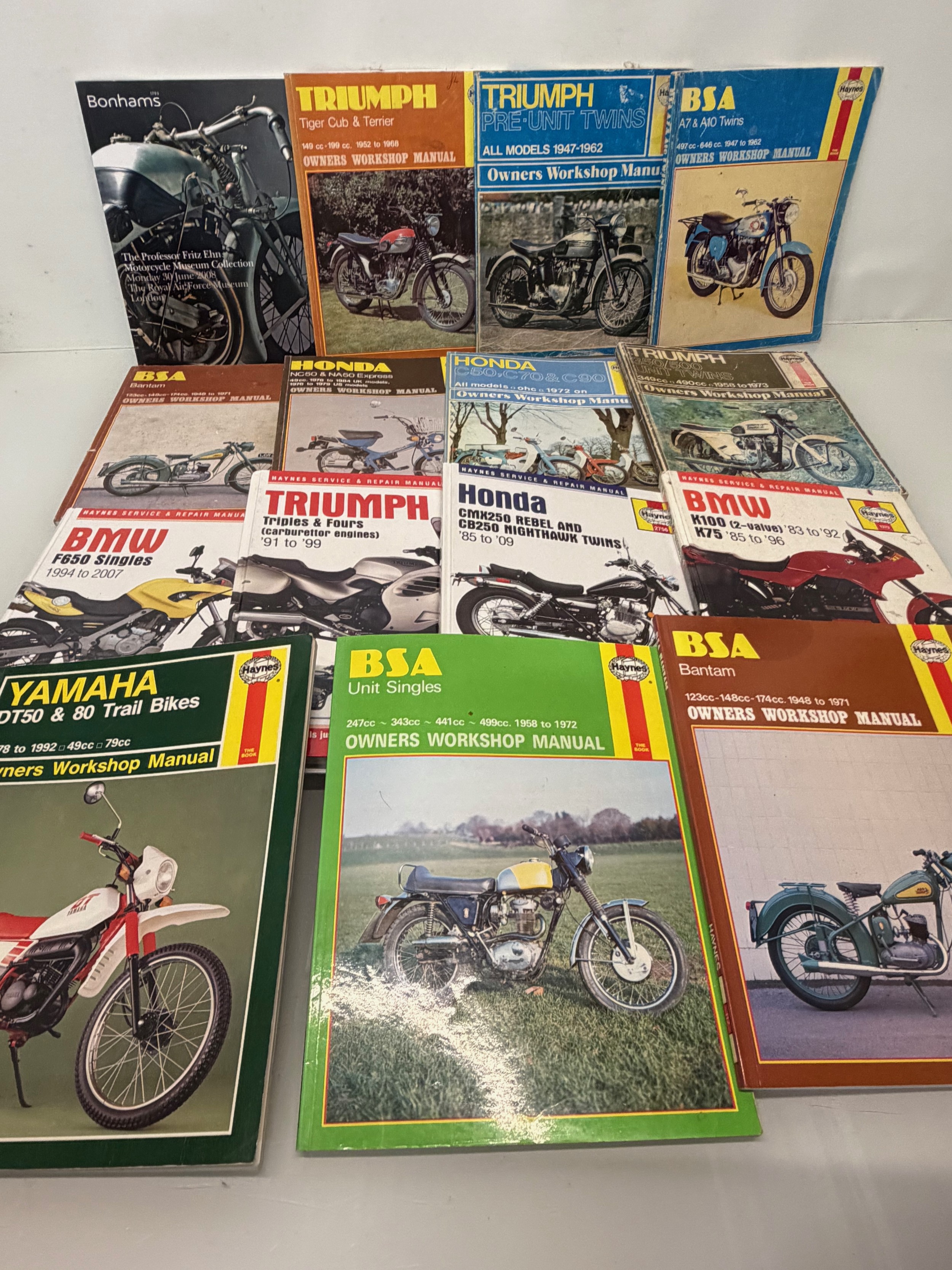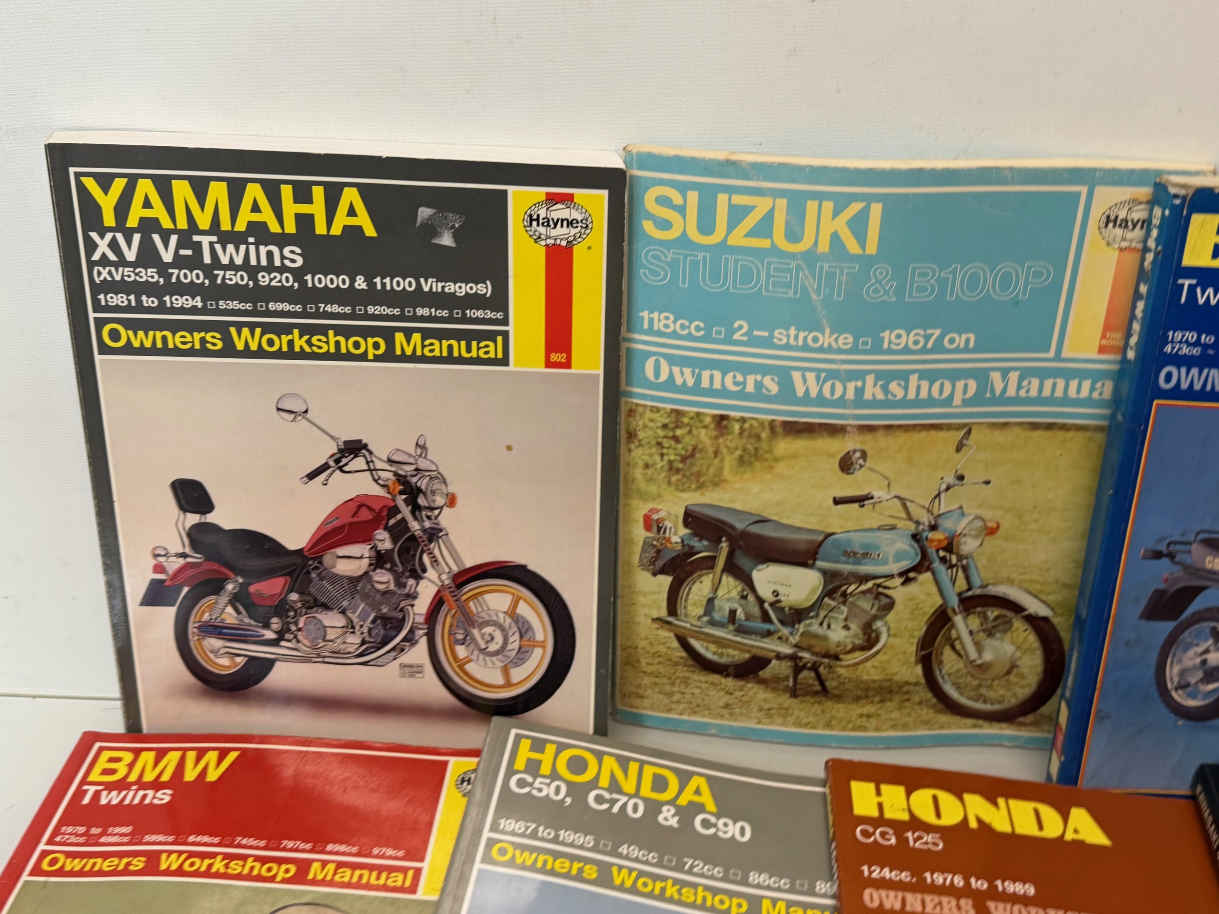 Automobilia, workshop equipment, a collection of motorcycle repair manuals, Haynes etc, 47 in all.
