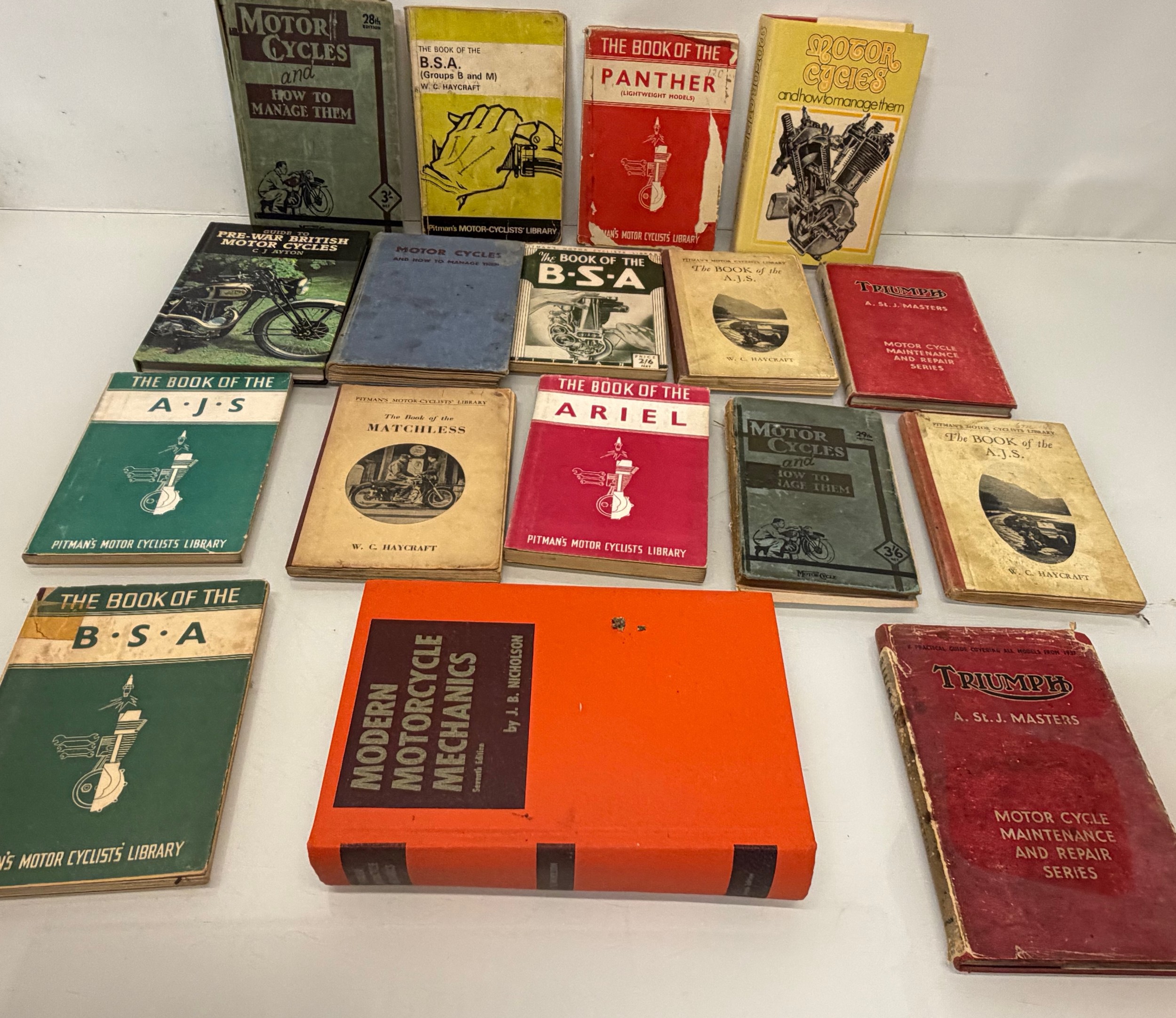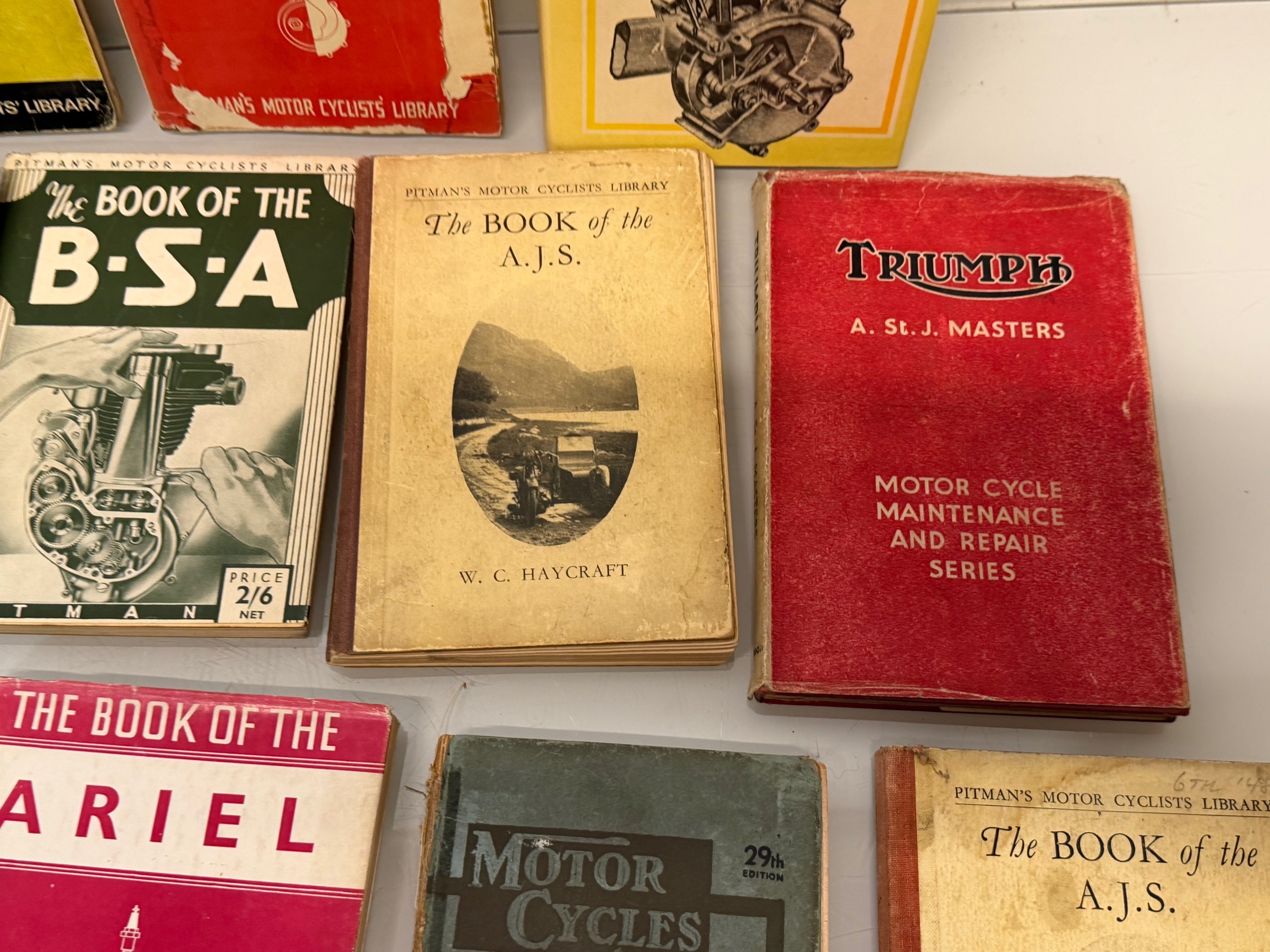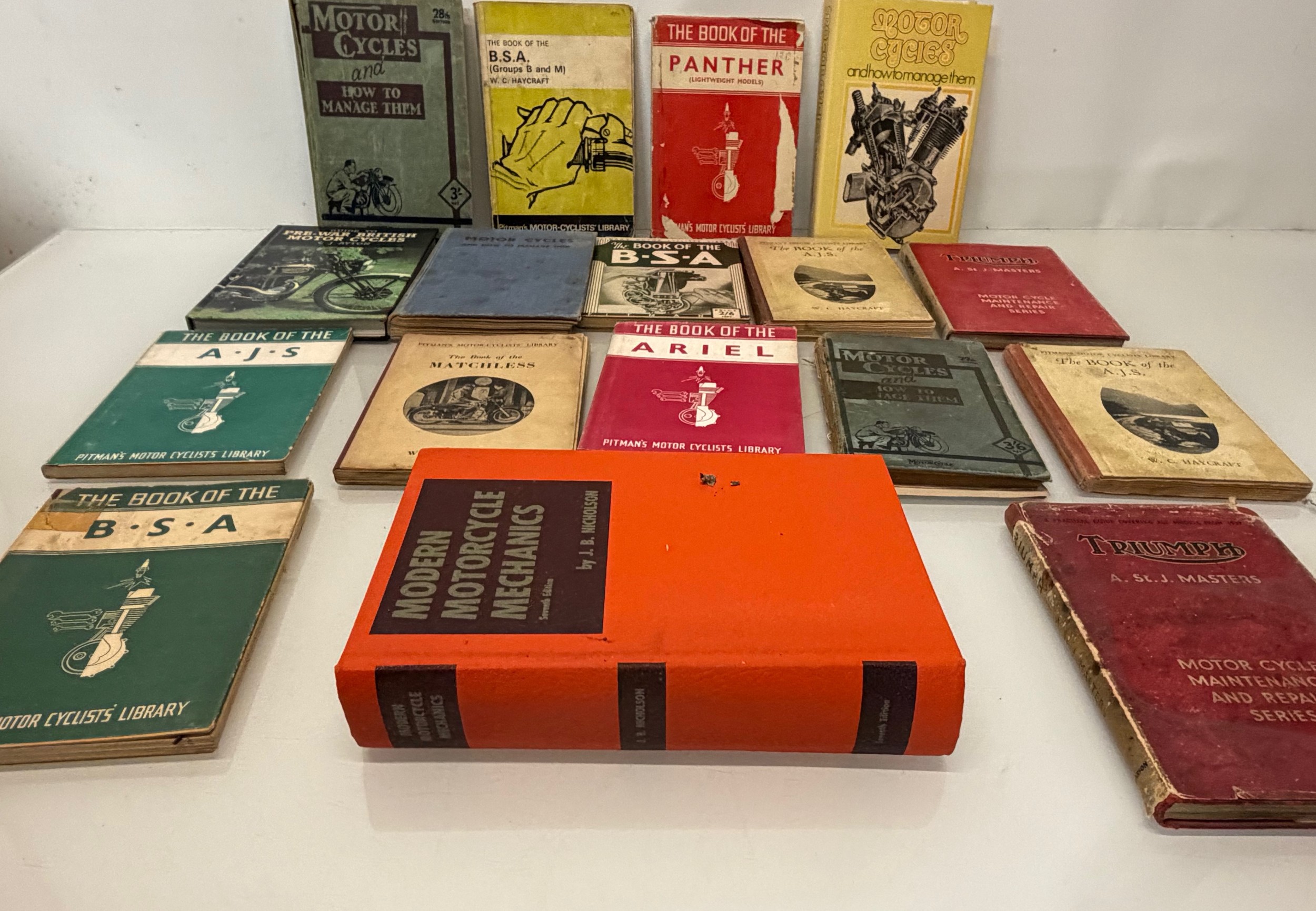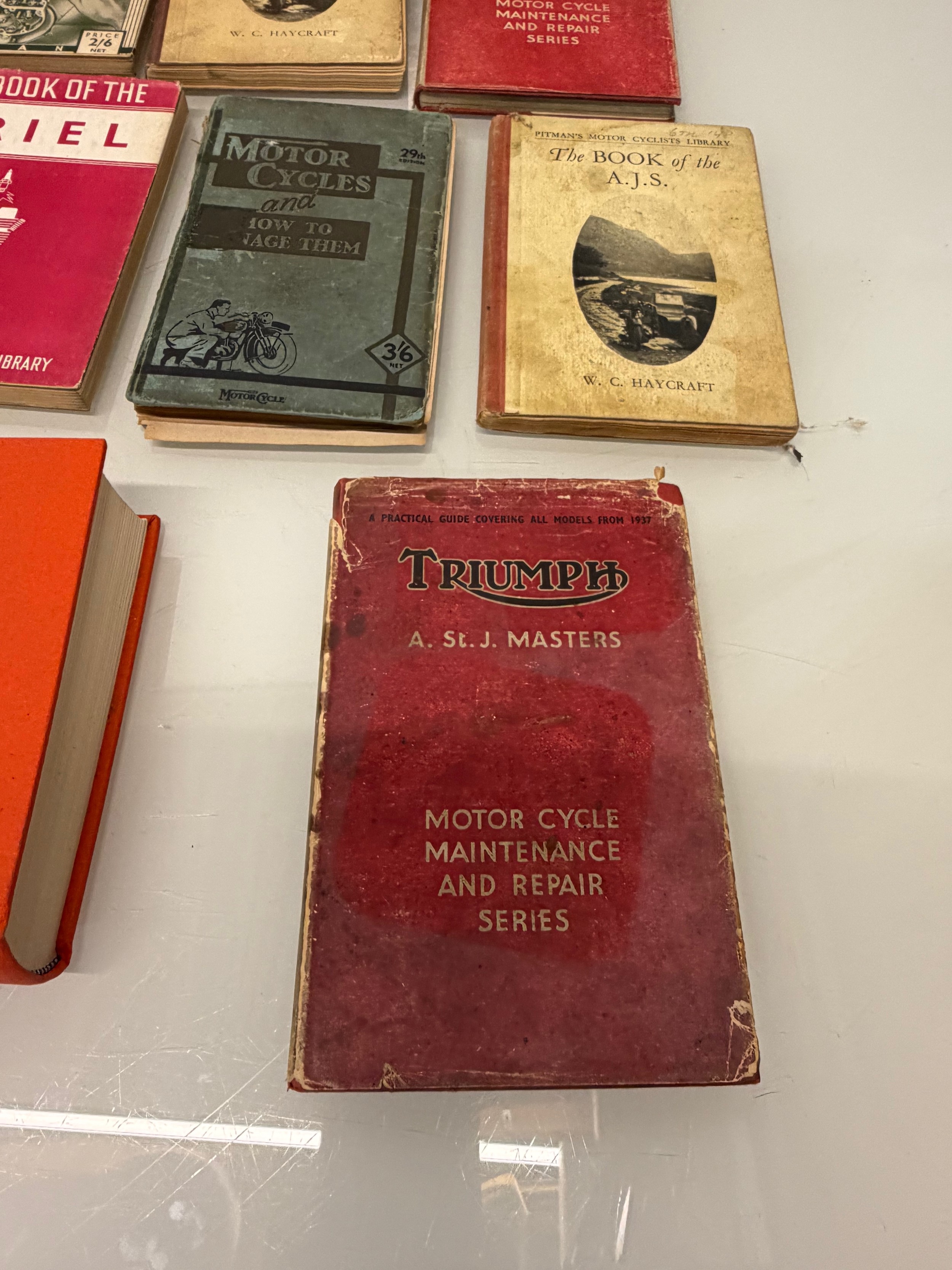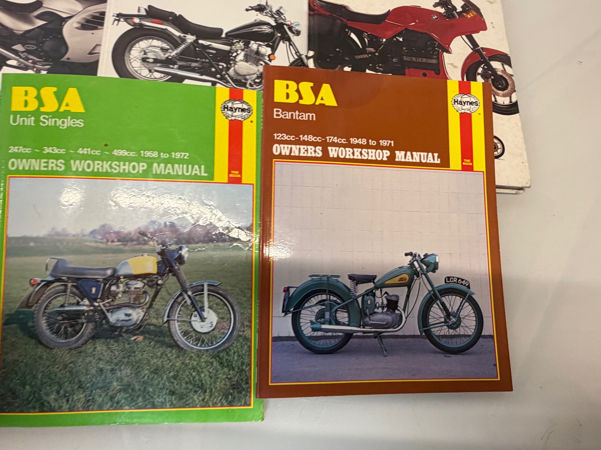 Automobilia, workshop equipment, a collection of motorcycle repair manuals, Haynes etc, 47 in all.