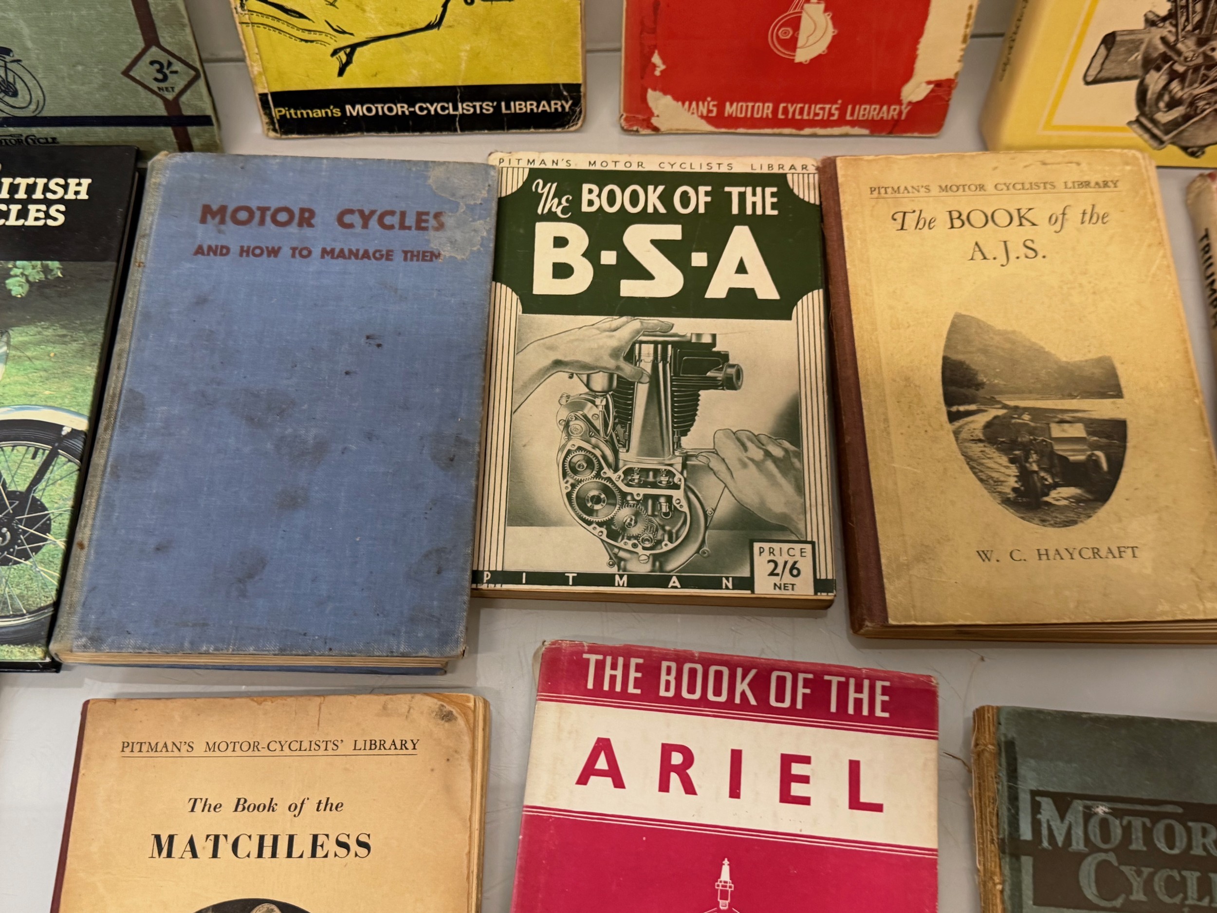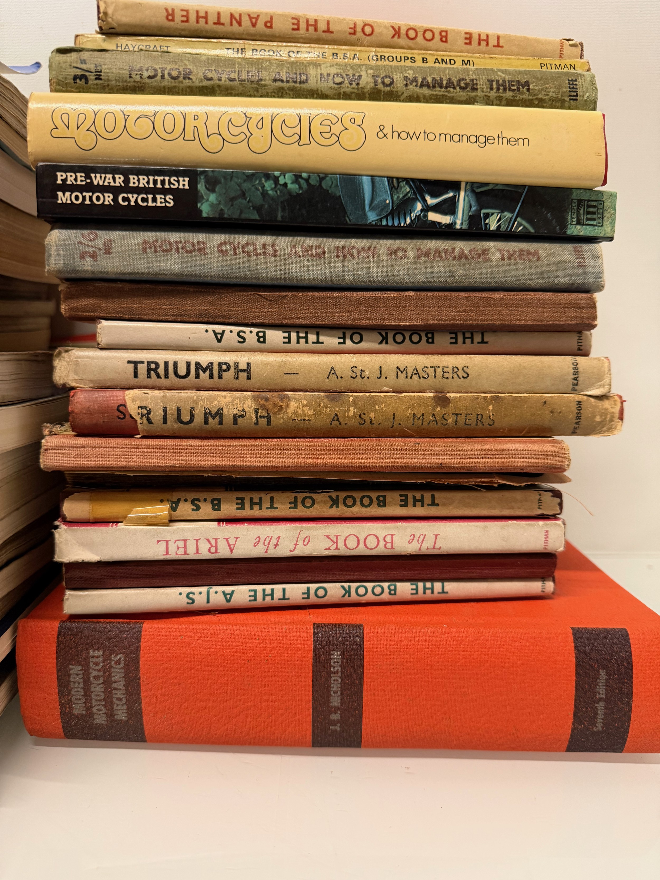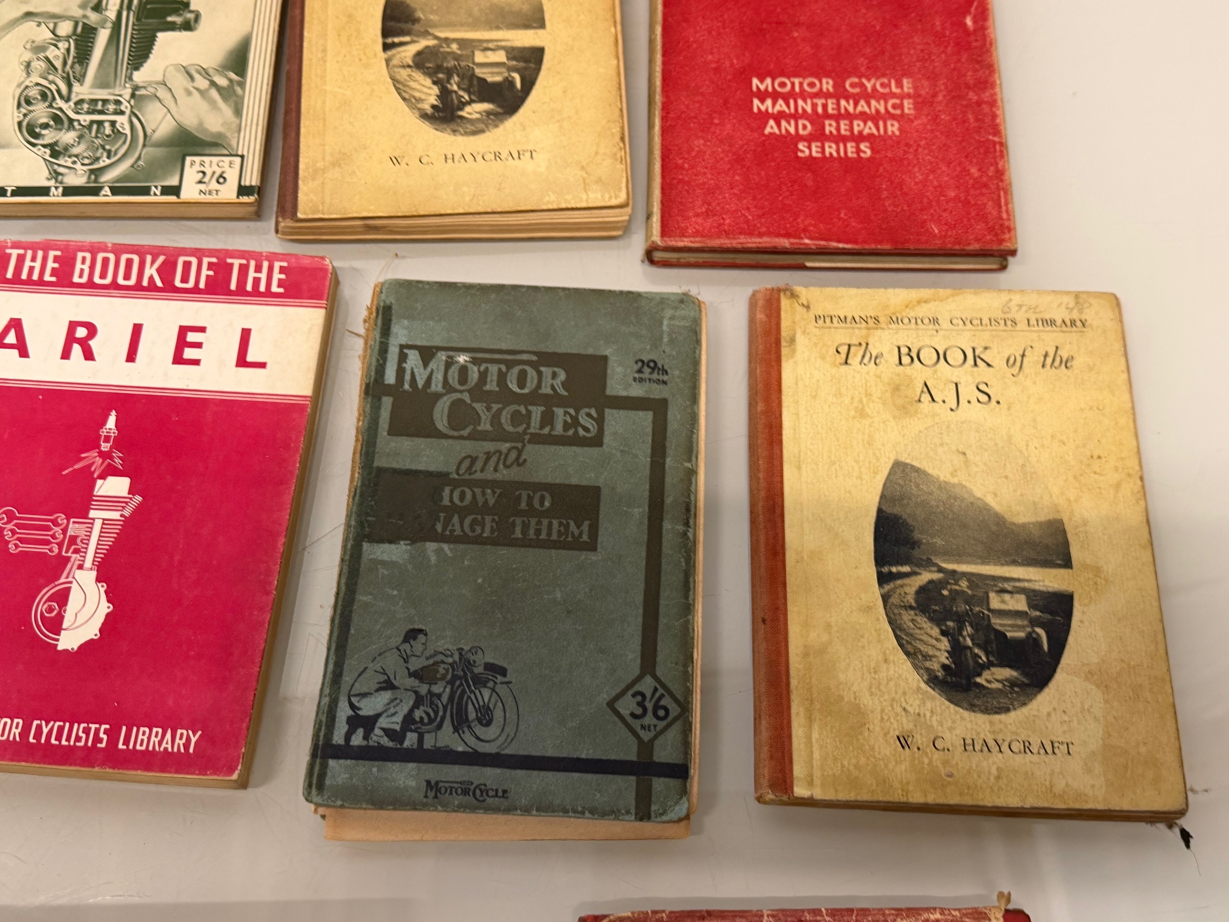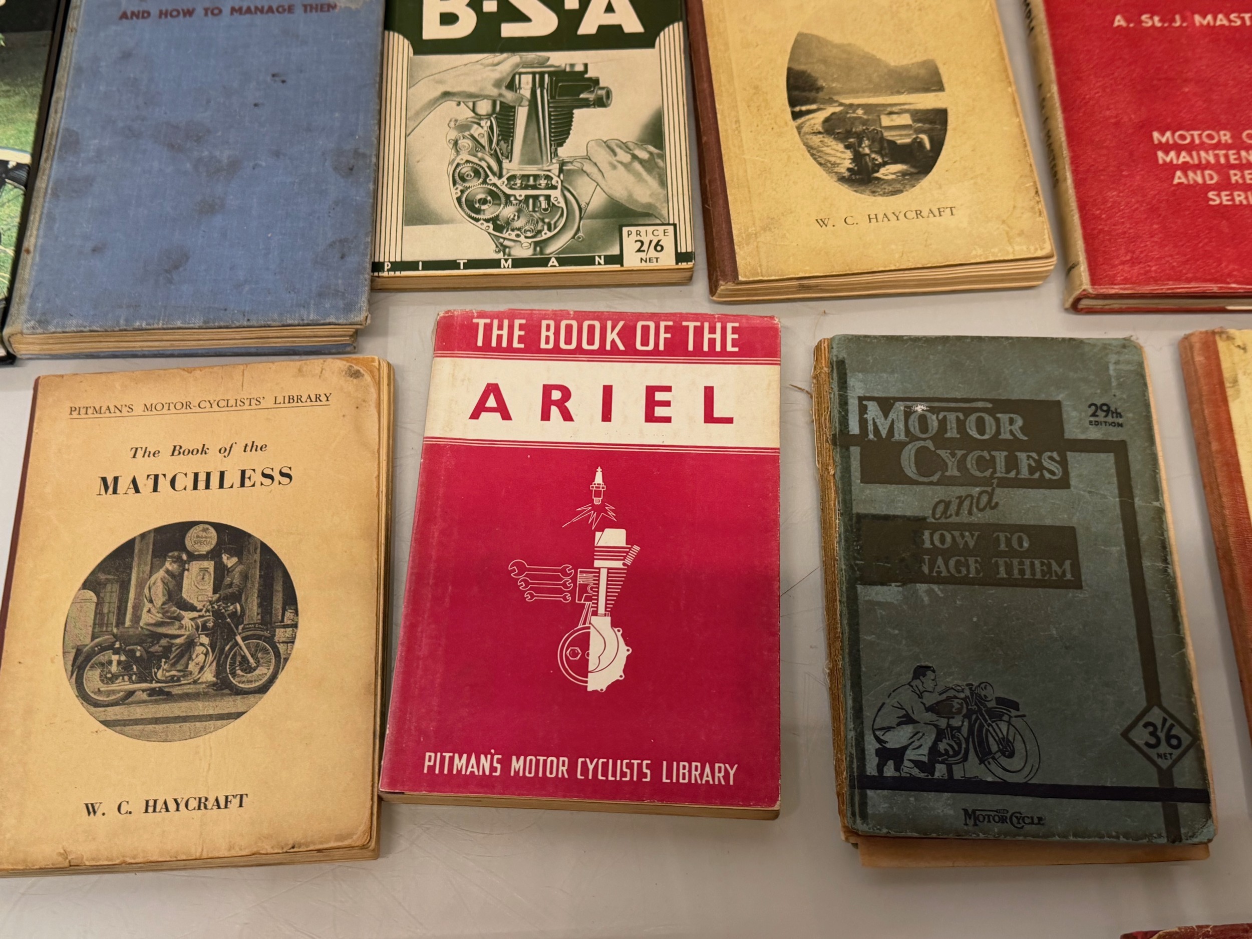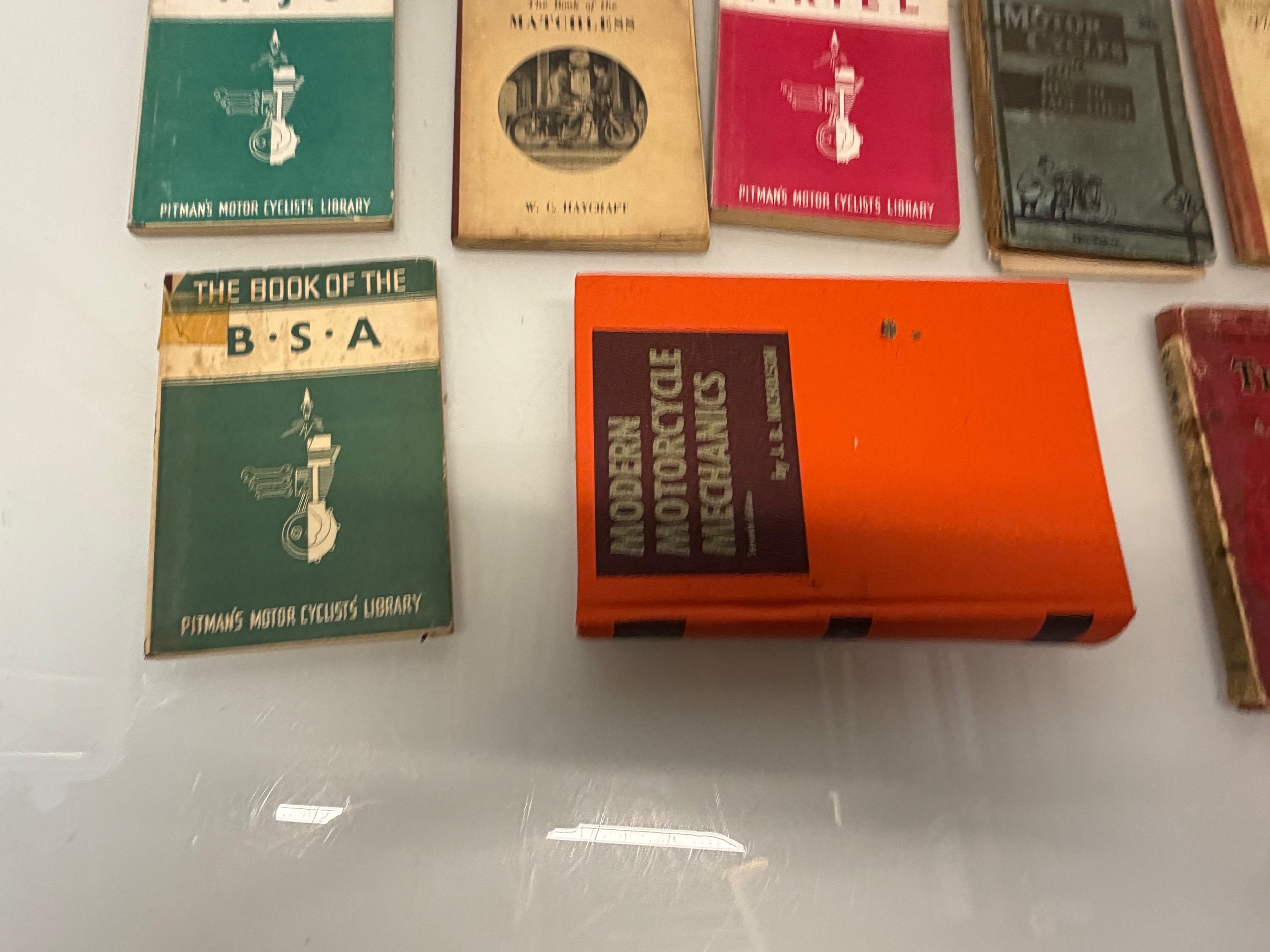 Automobilia, workshop equipment, a collection of motorcycle repair manuals, Haynes etc, 47 in all.