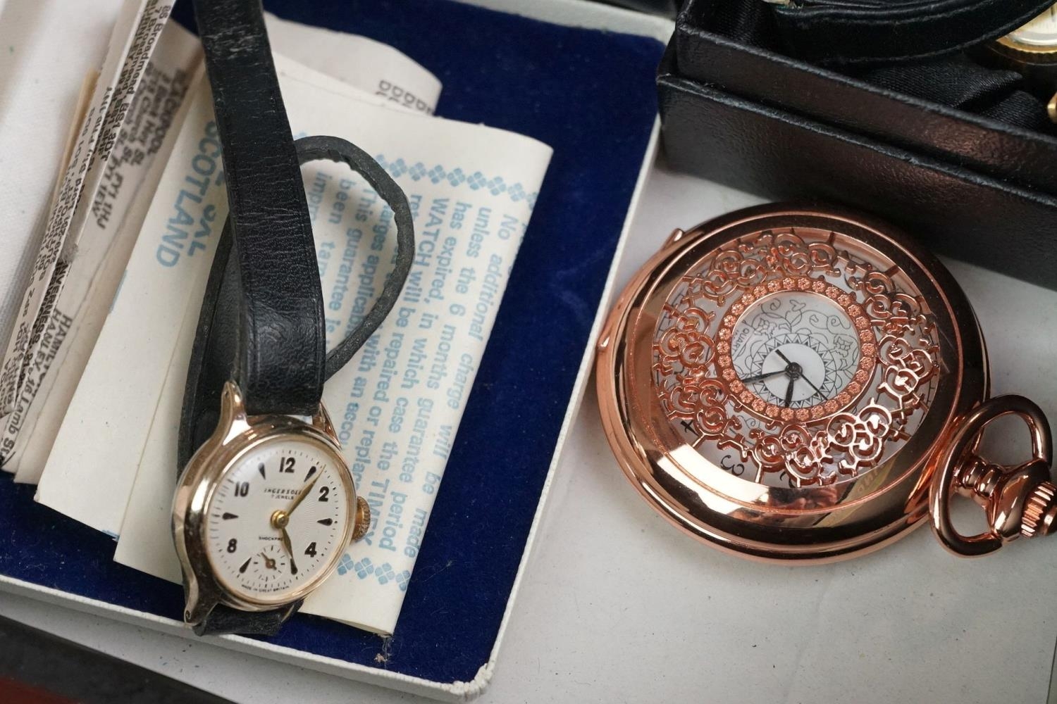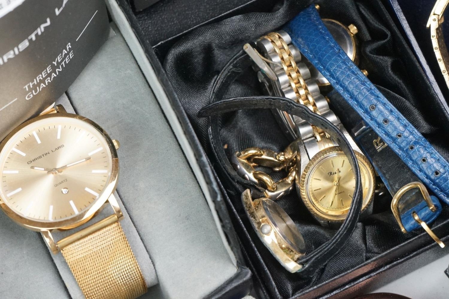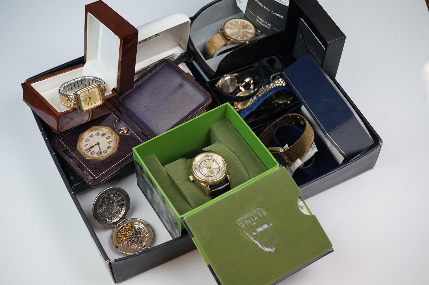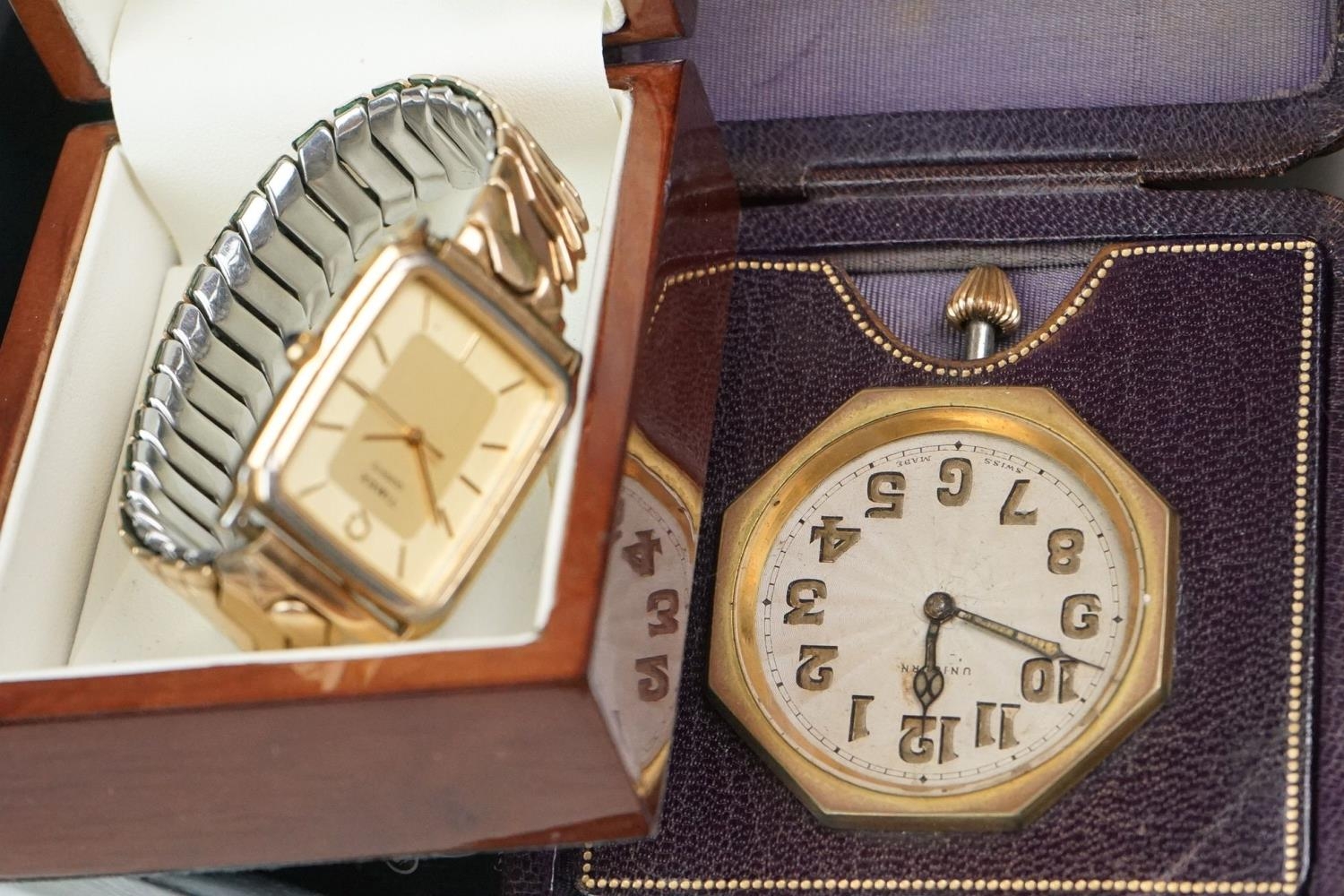 A collection of watches to include Rotary and Timex examples together with a travel clock