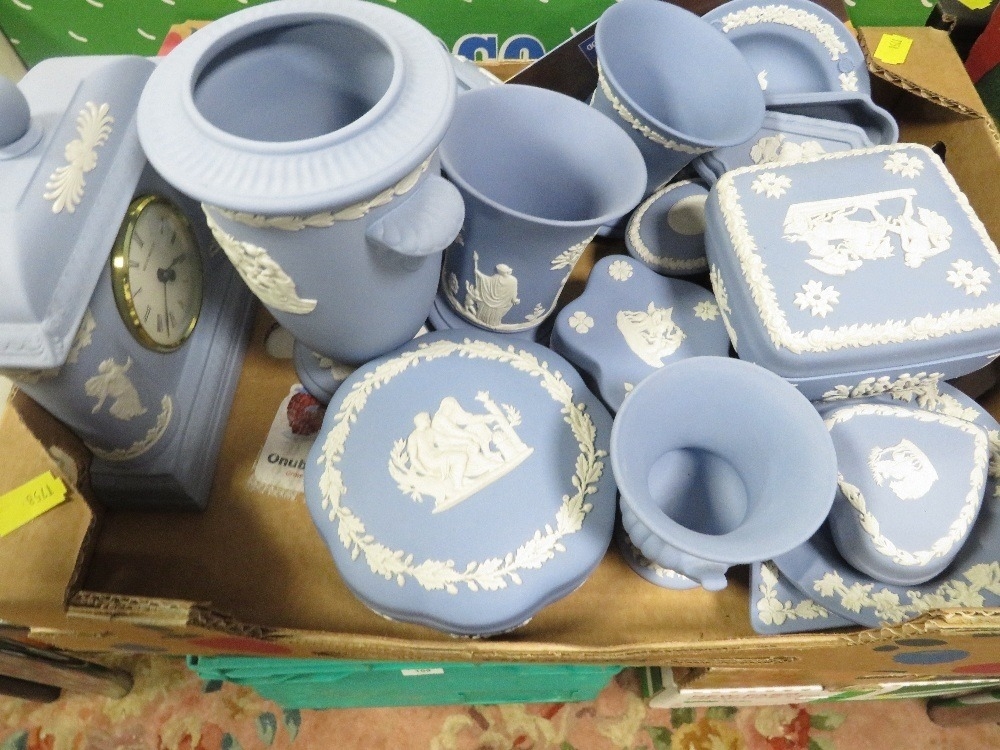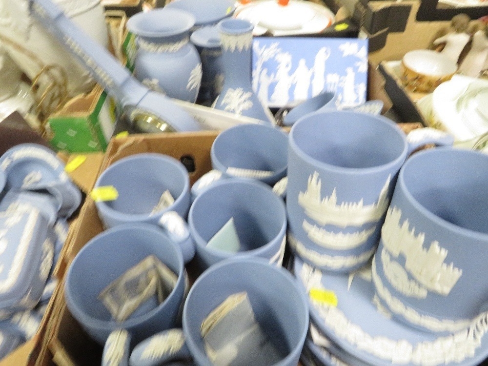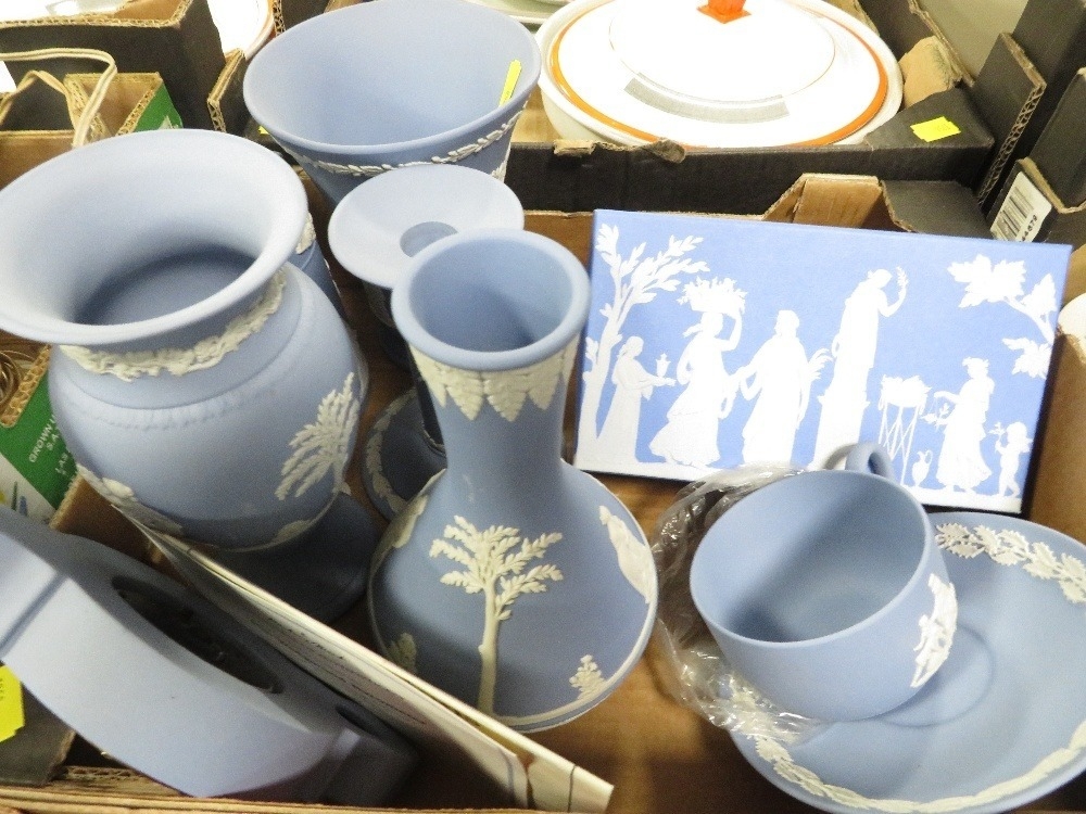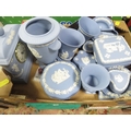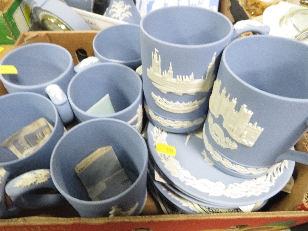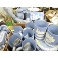 Three small trays of assorted Wedgwood Jasperware to include Christmas tankards