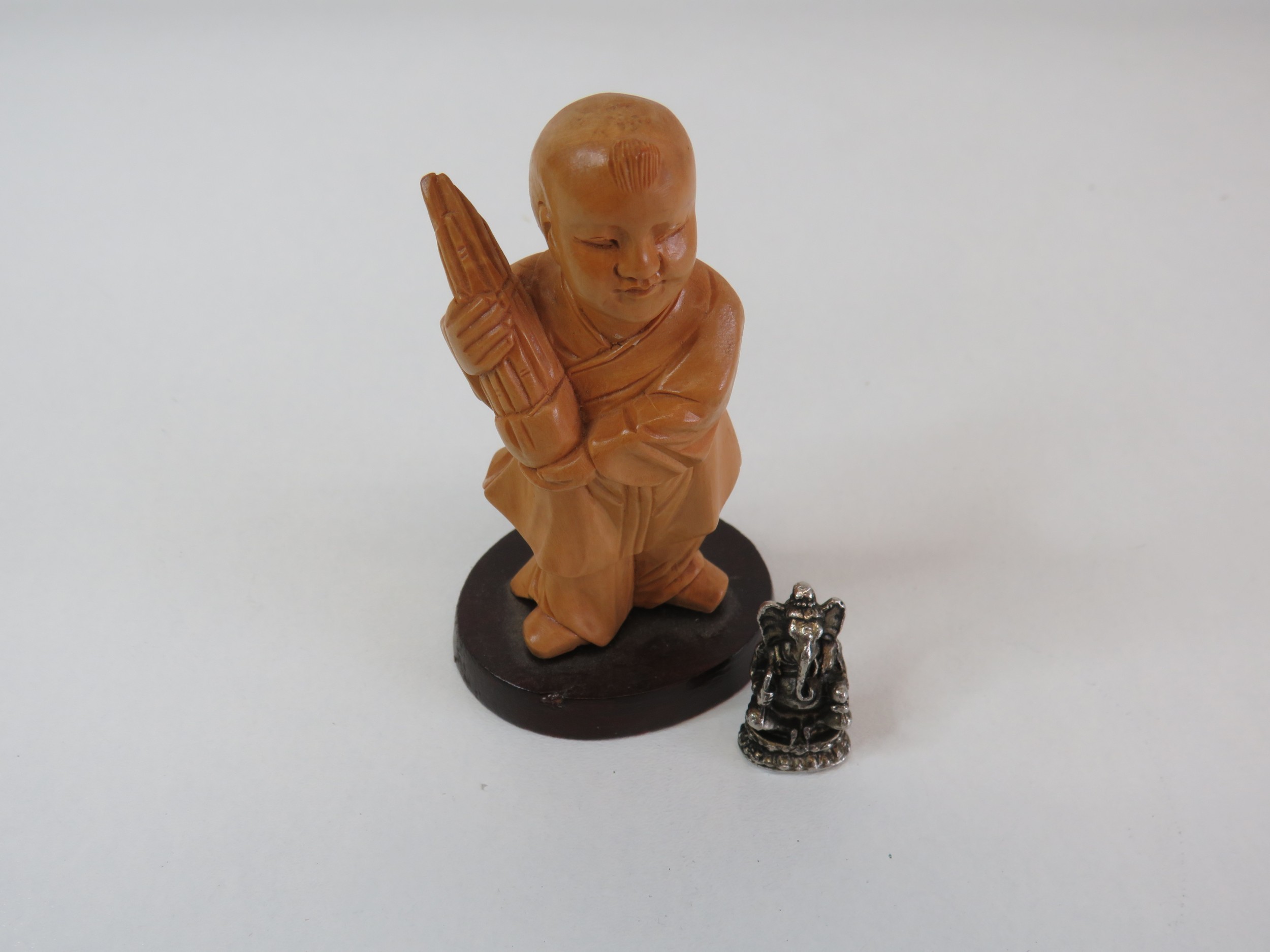 Indian silvered Ganesha statue and a wood chinese carving