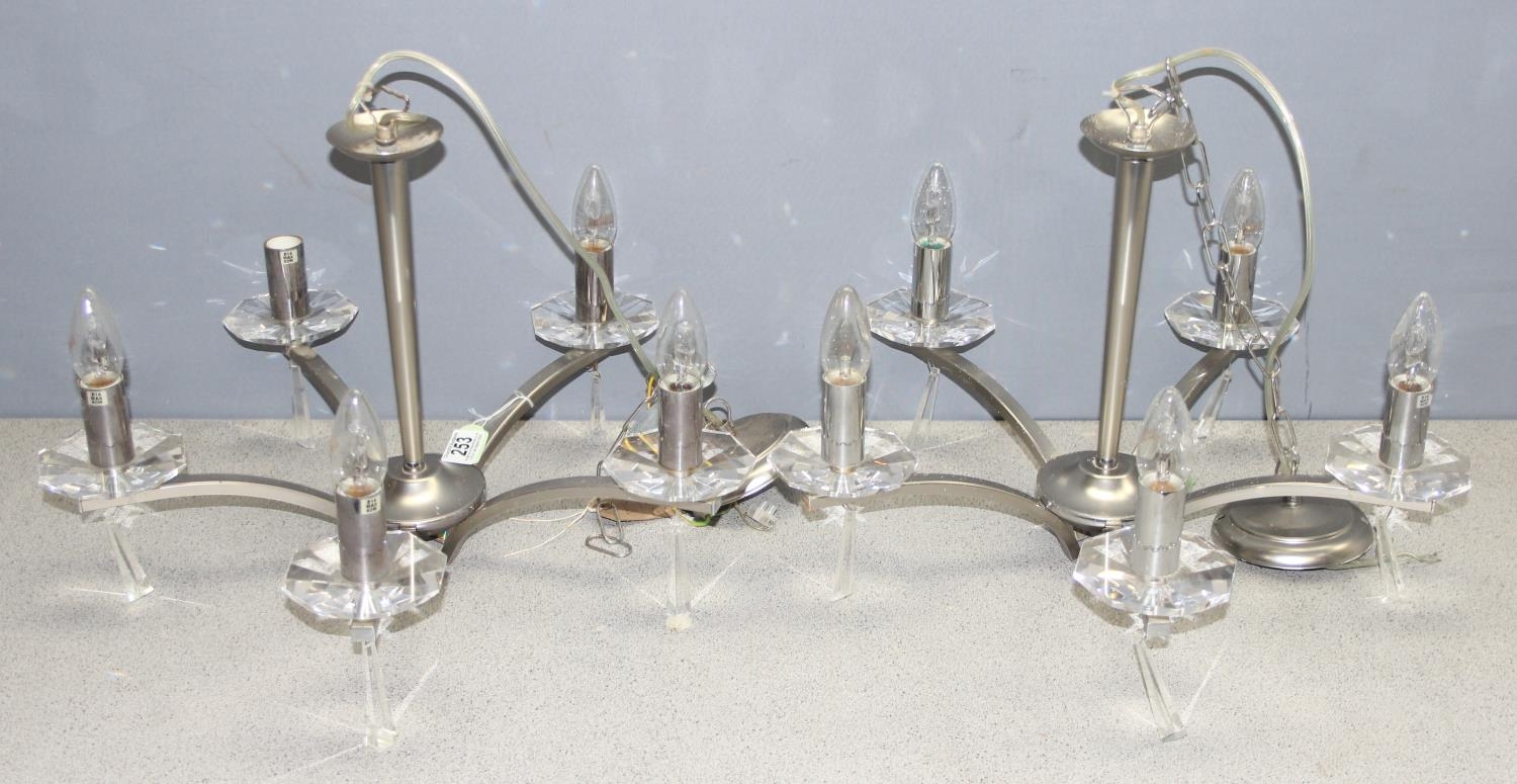 2 x contemporary chandeliers, approx 85cm with fitting, 33cm without