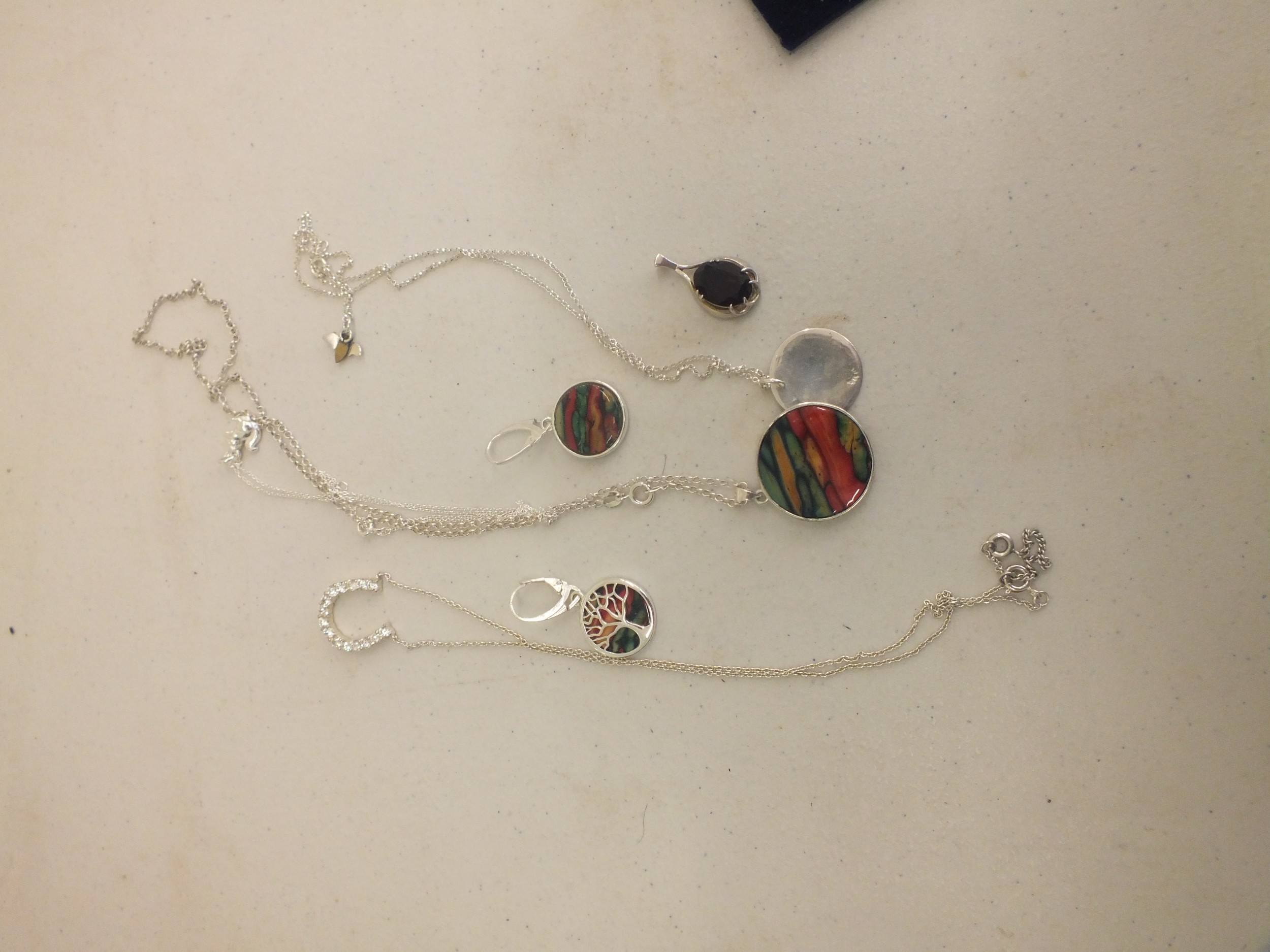 Silver Gem Pendant Necklace, Matching Earrings and Silver Pendants, etc