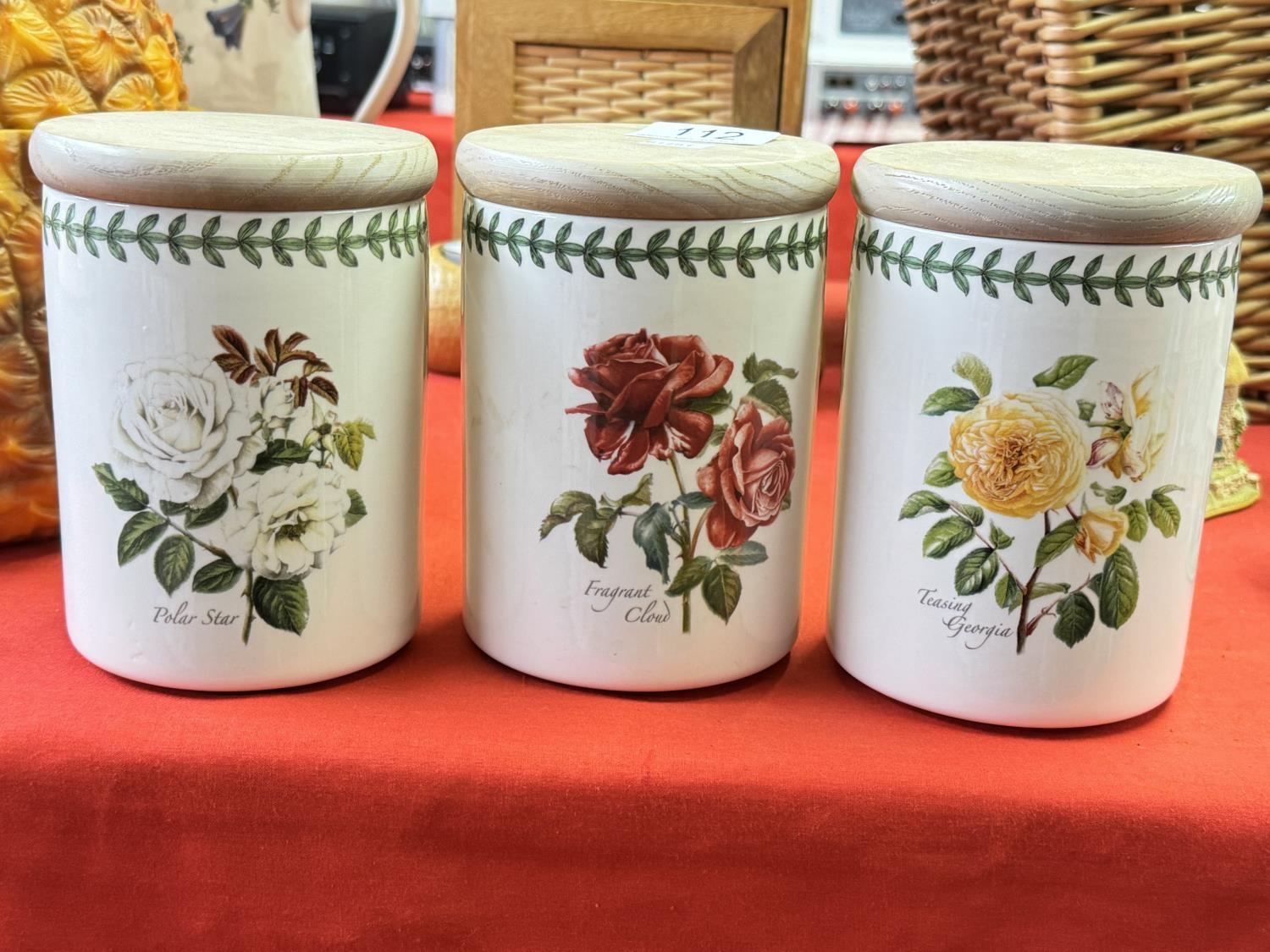 3 PORTMEIRION BOTANICAL GARDENS 'ROSE' STORAGE JARS