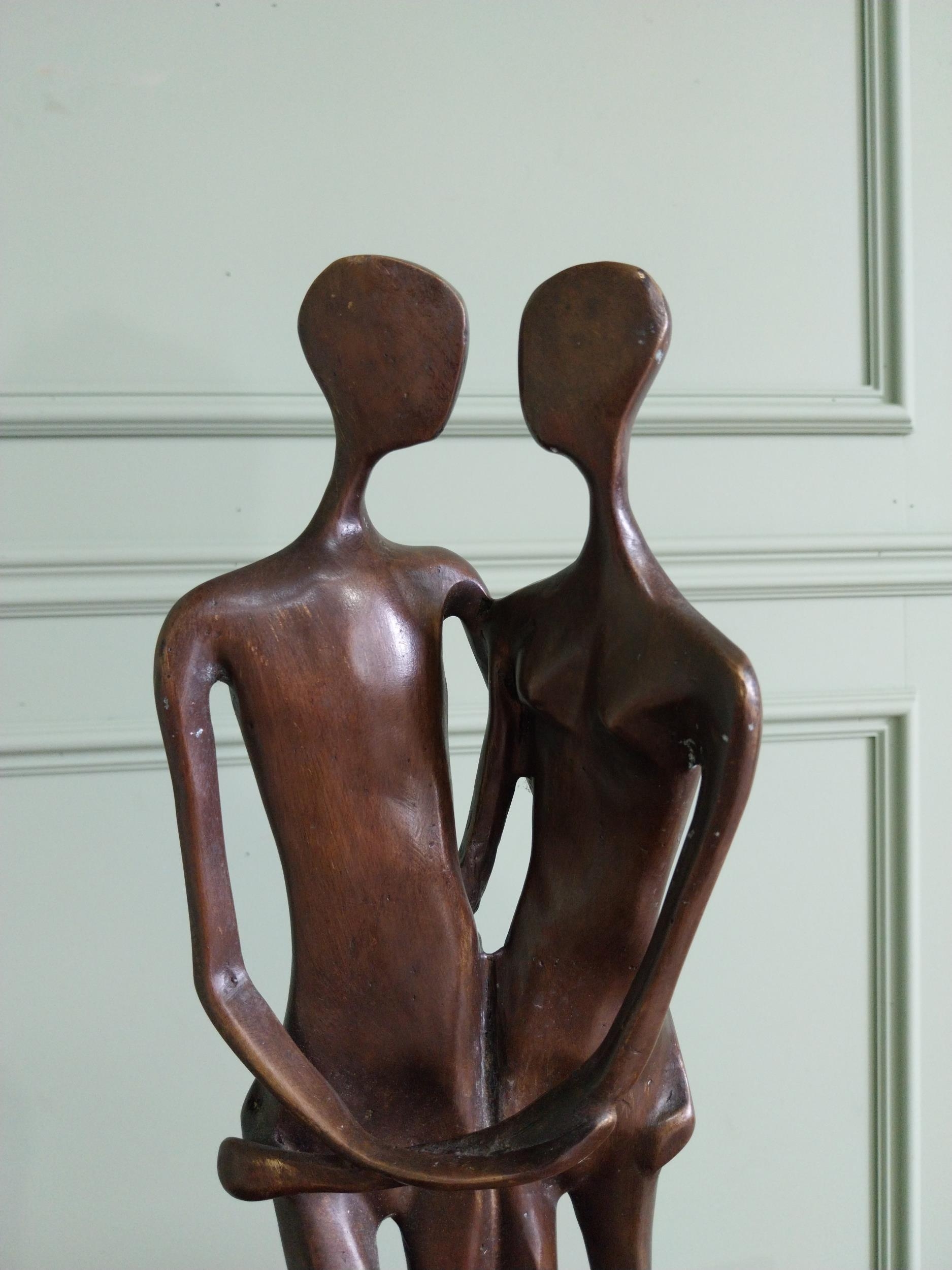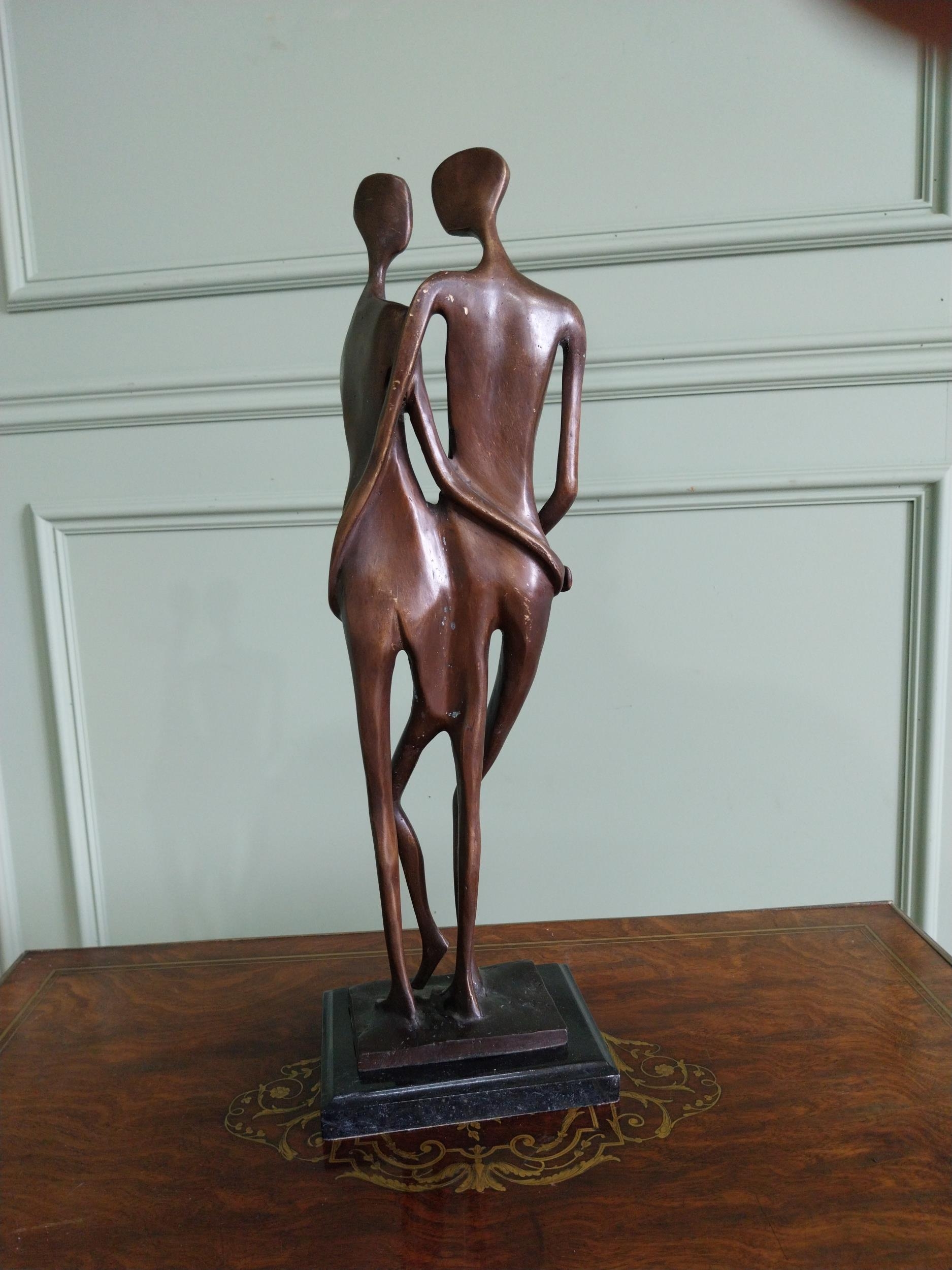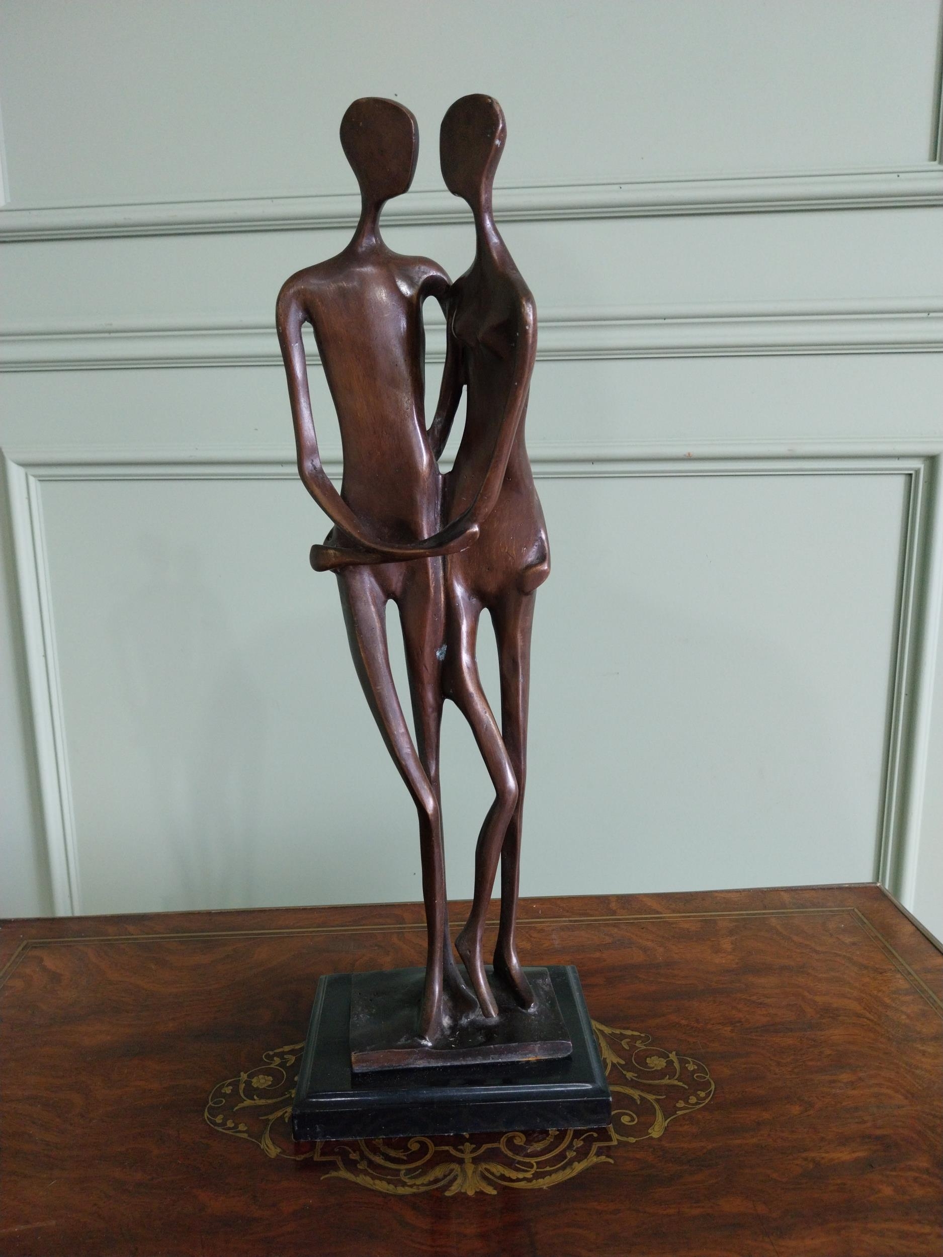Exceptional quality contemporary bronze sculpture ' The Lovers' mounted on marble base {52 cm H x 18 cm W x 14 cm D}.