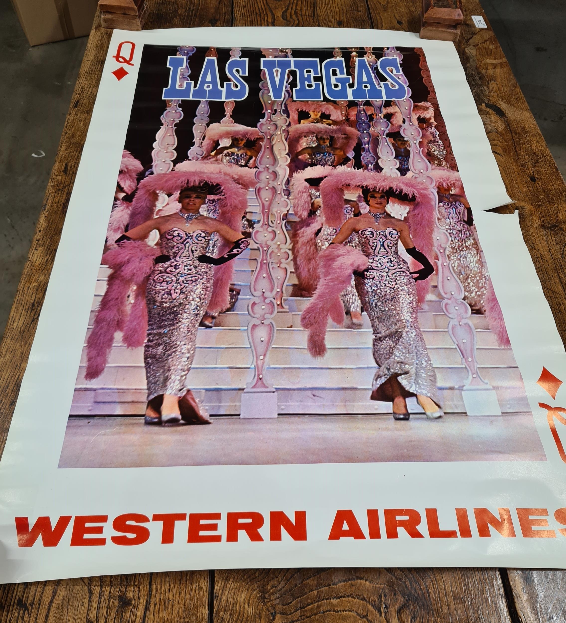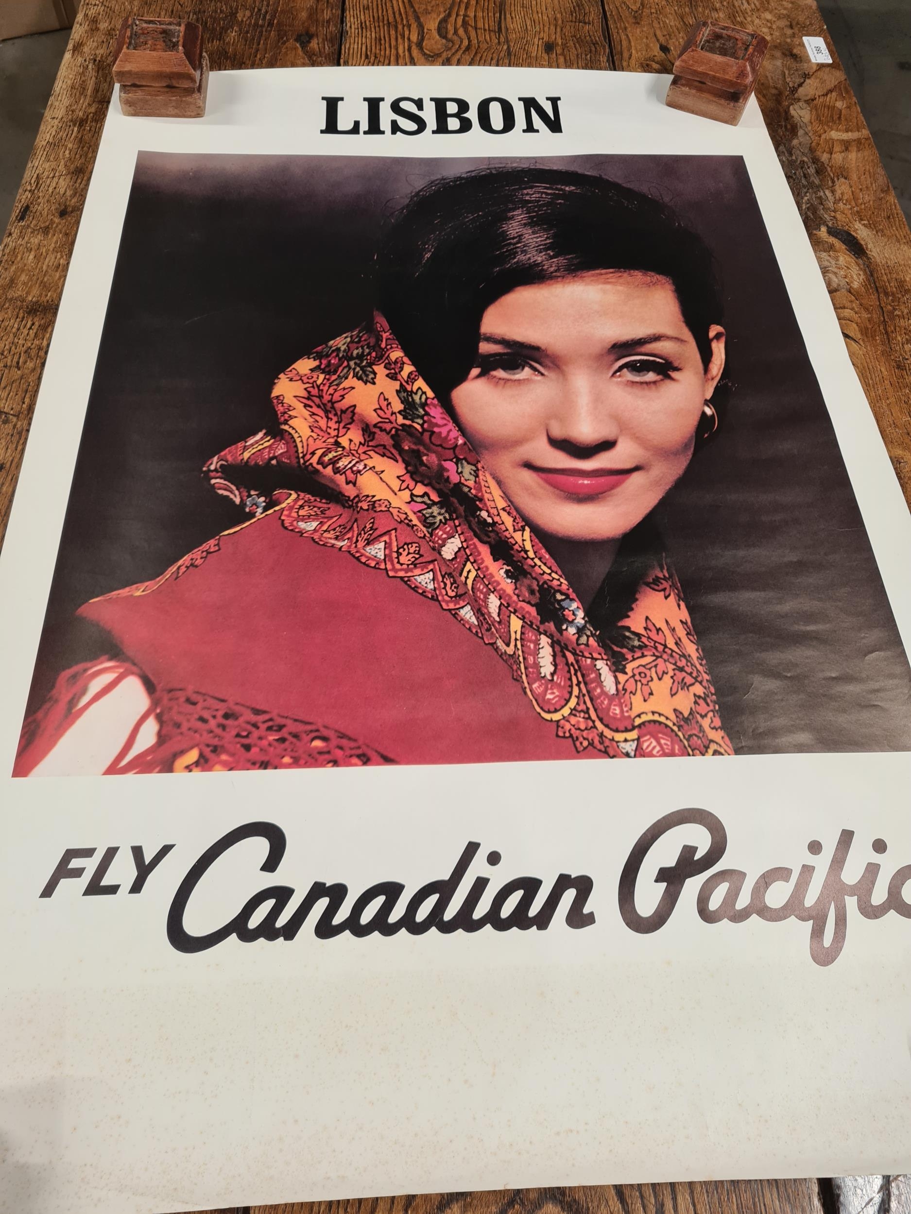 Four Travel Posters: Tahiti, Panam, 42 x 28in, Las Vegas, Western Airlines, P & O Holiday Cruises, 40 x 25in, and Lisbon, Fly Canadian Pacific, 36 x 24in